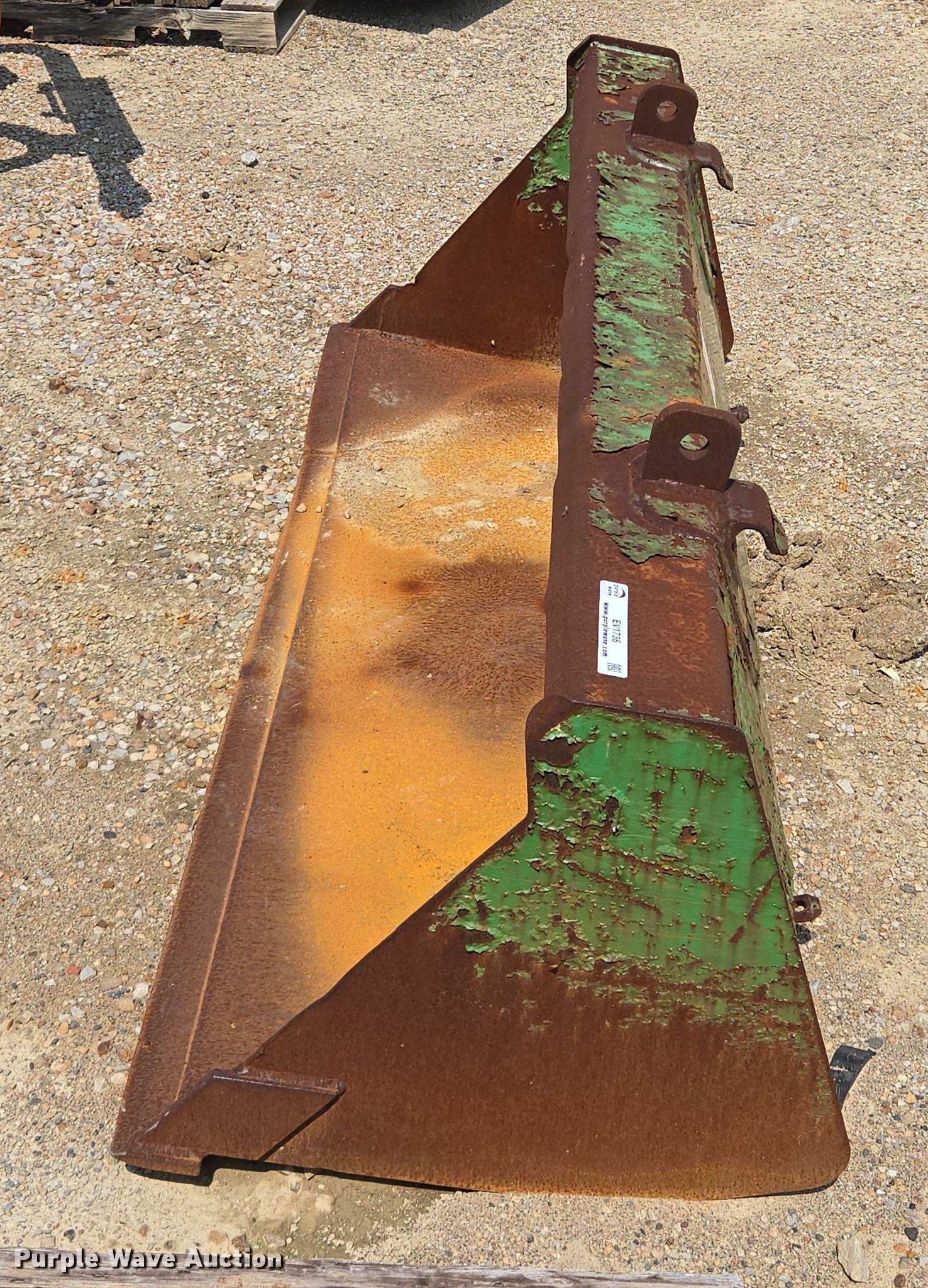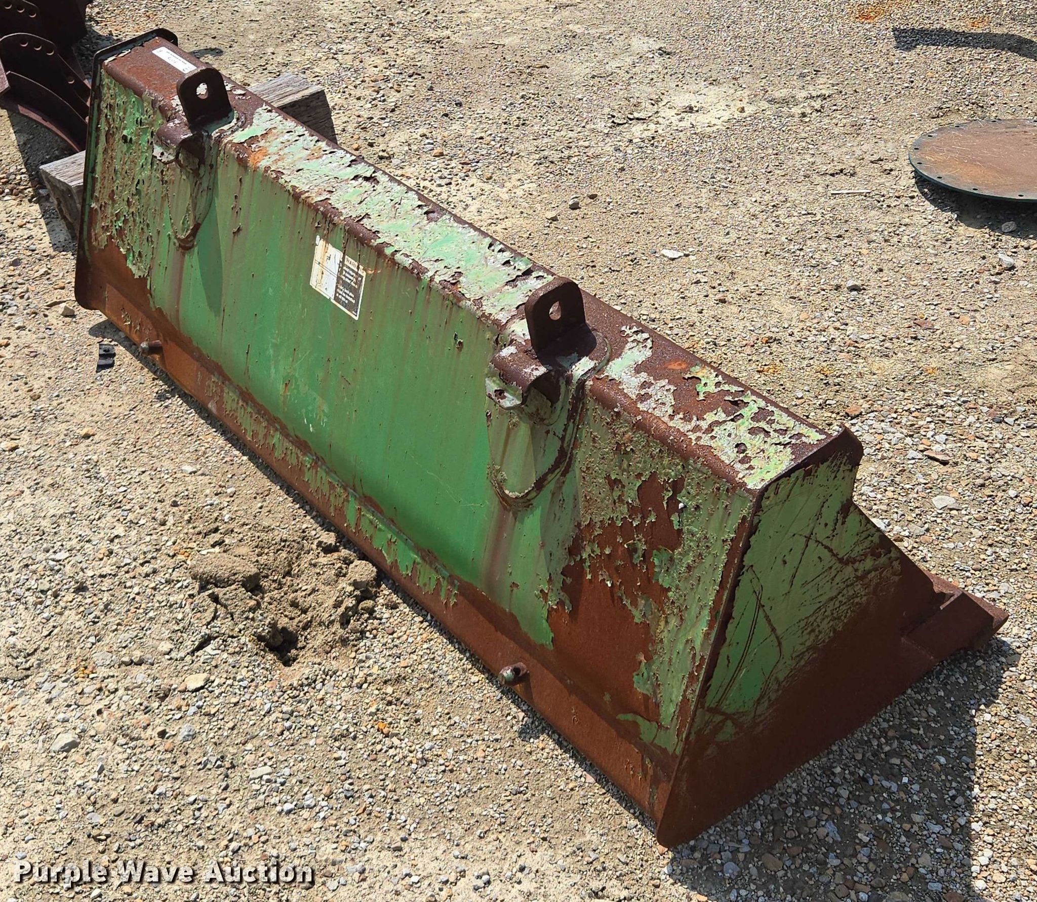 Purple Wave is selling a used Bucket or Loader Attach. in Kansas. This item is a 75" W bucket with the following: Cutting edge damaged, Removed from John Deere 5105