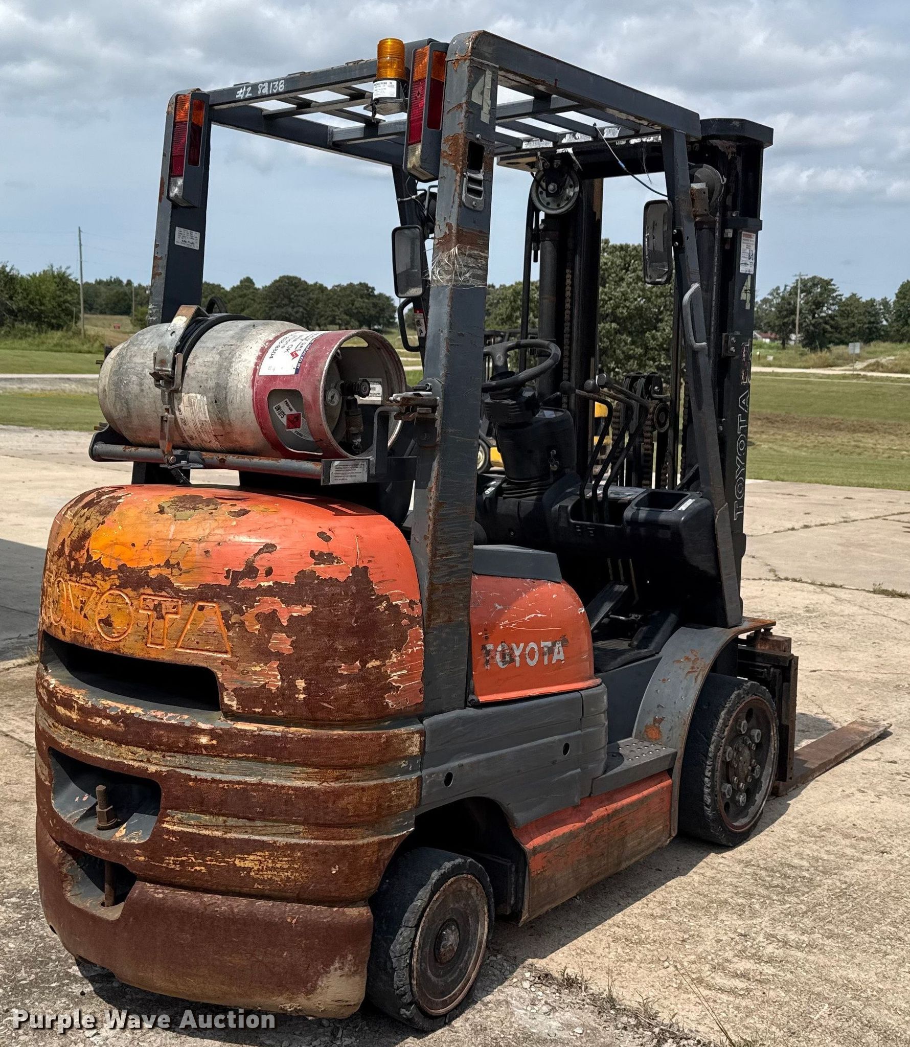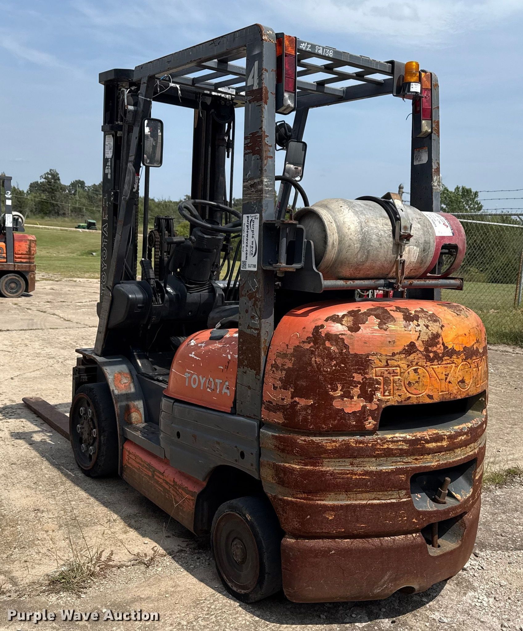 Take a look at this used 1999 Toyota 42-6FGCU25 forklift being sold on October 8th, 2025 in the SOLD! October 08 Vehicles and Equipment Auction made by Toyota. Take a look at all of the item information below or take a look at similar auctions for Warehouse Forklift.