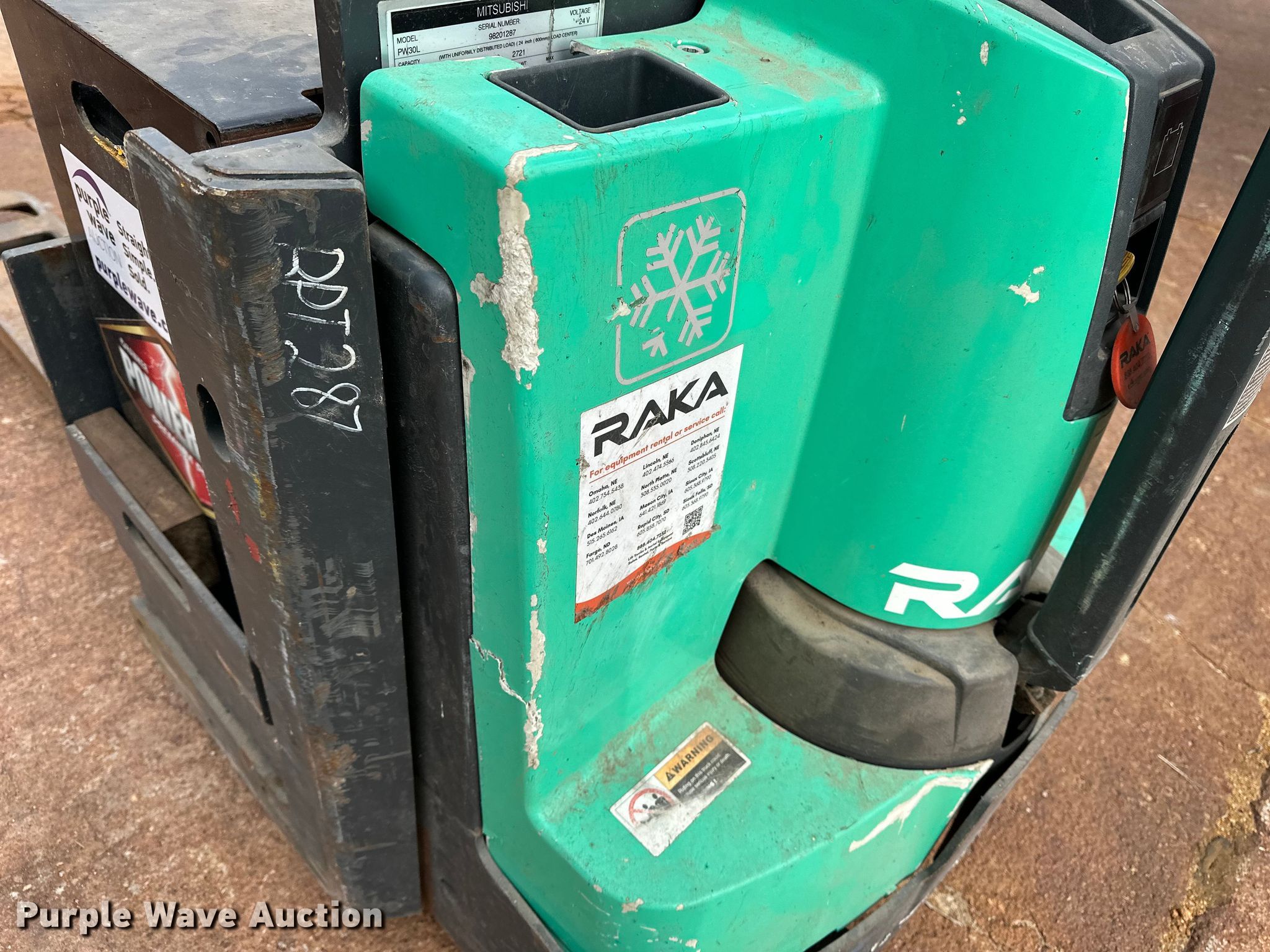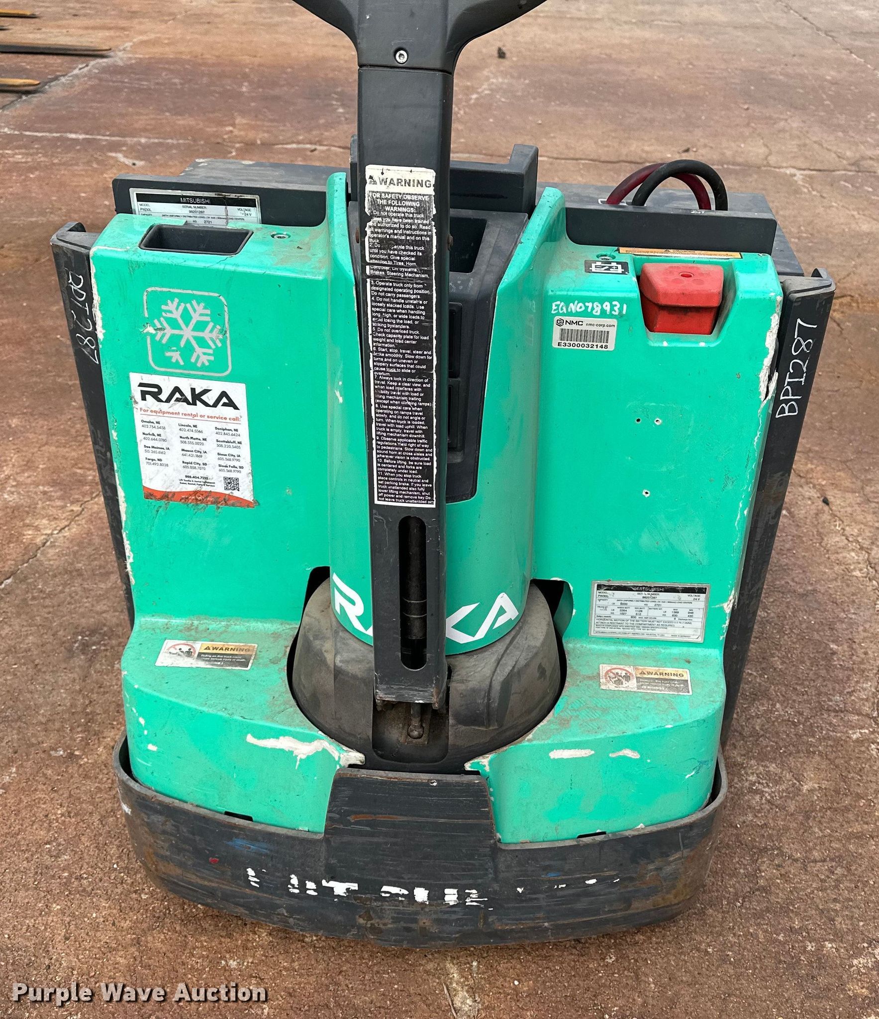 Purple Wave is selling a used Warehouse Forklift in Nebraska. This item is a 2018 Mitsubishi PW30L pallet jack with the following: Serial: 98201287, Unit #: EQN078931