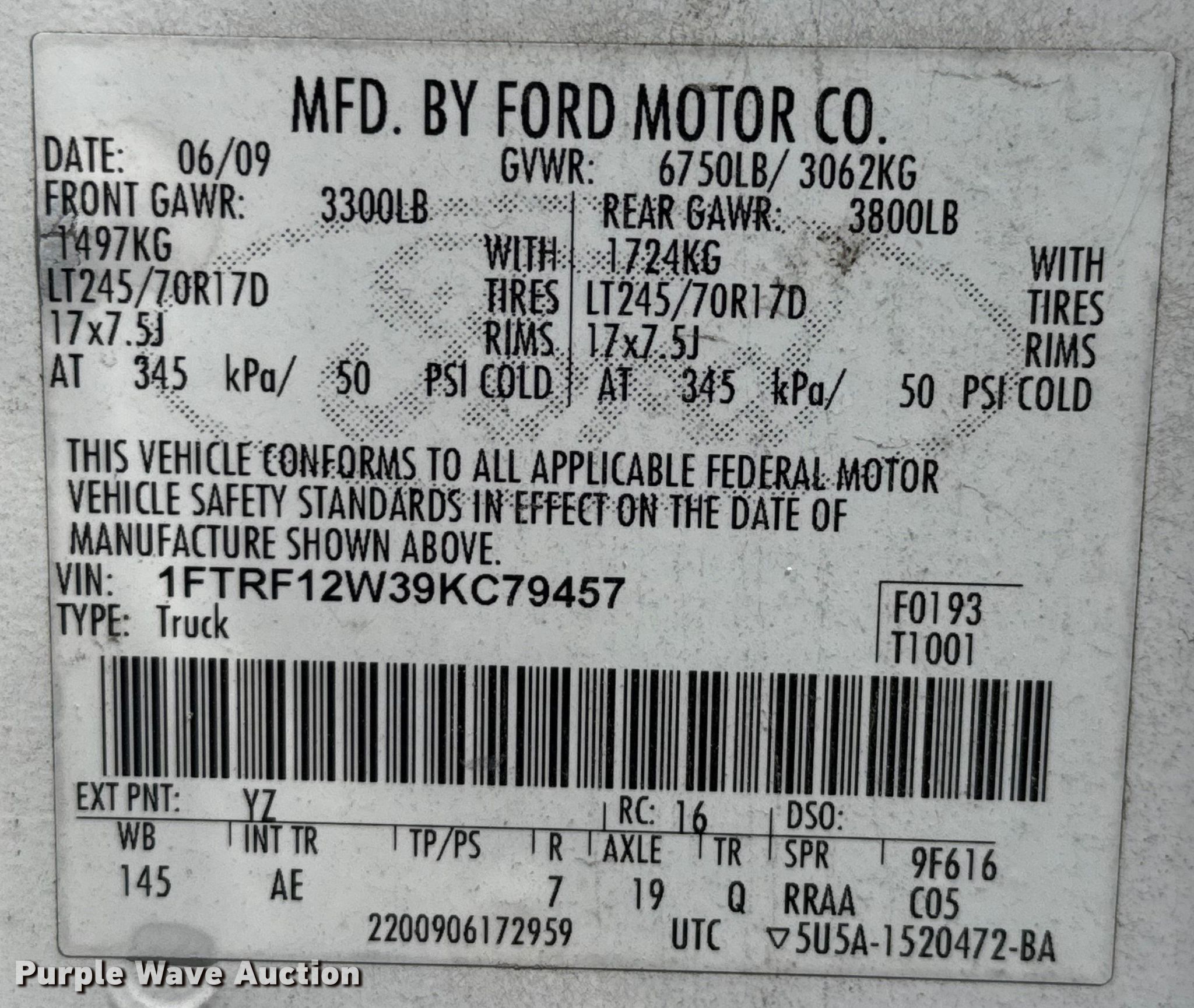 - VIN: 1FTRF12W39KC79457