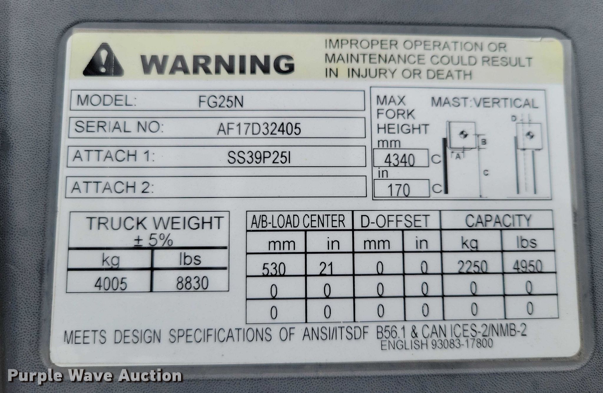 Purple Wave is selling a used Cushion Tire or Pneumatic Forklift in Nebraska. This item is a Mitsubishi FG25N forklift with the following: Hours: 2,263 on meter, Serial: AF17D32405