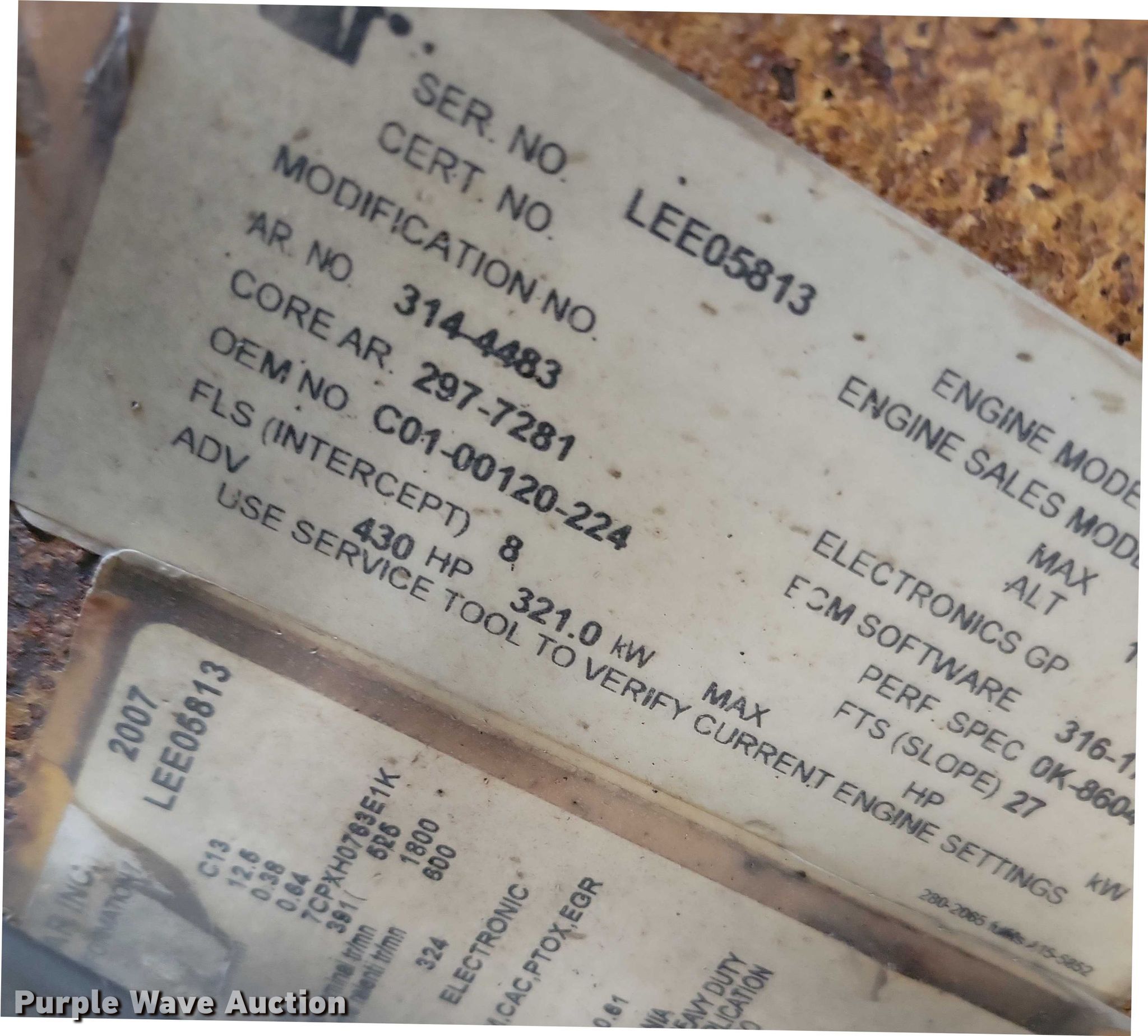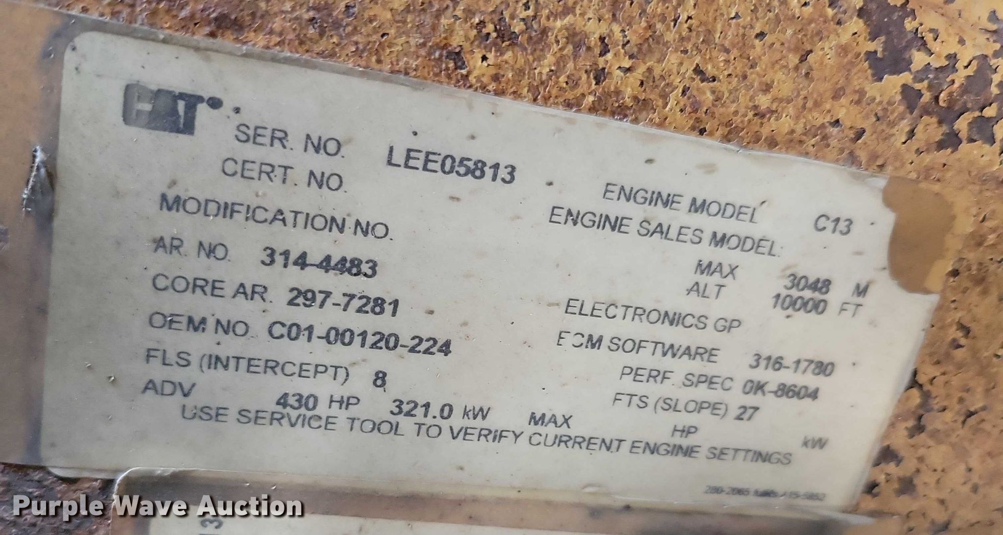 2008 Sterling LT9500 truck cab and chassis. Miles: 420,184 on odometer, VIN: 2FZHAZDE18AZ09118. Engine Caterpillar C13 Acert, Serial: LEE05813, Displacement: 12.5L, Cylinders: 6, Fuel type: Diesel, HP: 430, kW: 321, Engine brake. Transmission Automated manual. Chassis Axles: Tandem, Differential lock: Inter-axle, Suspension: Spring over walking beam, Brakes: Air, Truck chassis: 16', GVWR: 58,000 lbs FAWR: 18,000 lbs, IAWR: 20,000 lbs, RAWR: 20,000 lbs. Interior AC, Heat, Heated mirrors, Power windows, Cruise control, Air ride cab. Features Fuel tank: Single. Tires Front: 425/65R22.5, Rear: 11R22.5. Notes Shifter issues. View repairs. Iowa title. Seller is an Iowa licensed motor vehicle dealer. The buyer may be required to pay sales tax and/or registration fees to the dealer prior to taking possession. Buyers may be required to provide identification to the licensed dealer to comply with state laws. Title will be assigned and distributed by the dealer. Please contact the seller for distribution questions. RMS Services. Crescent, IA 51526