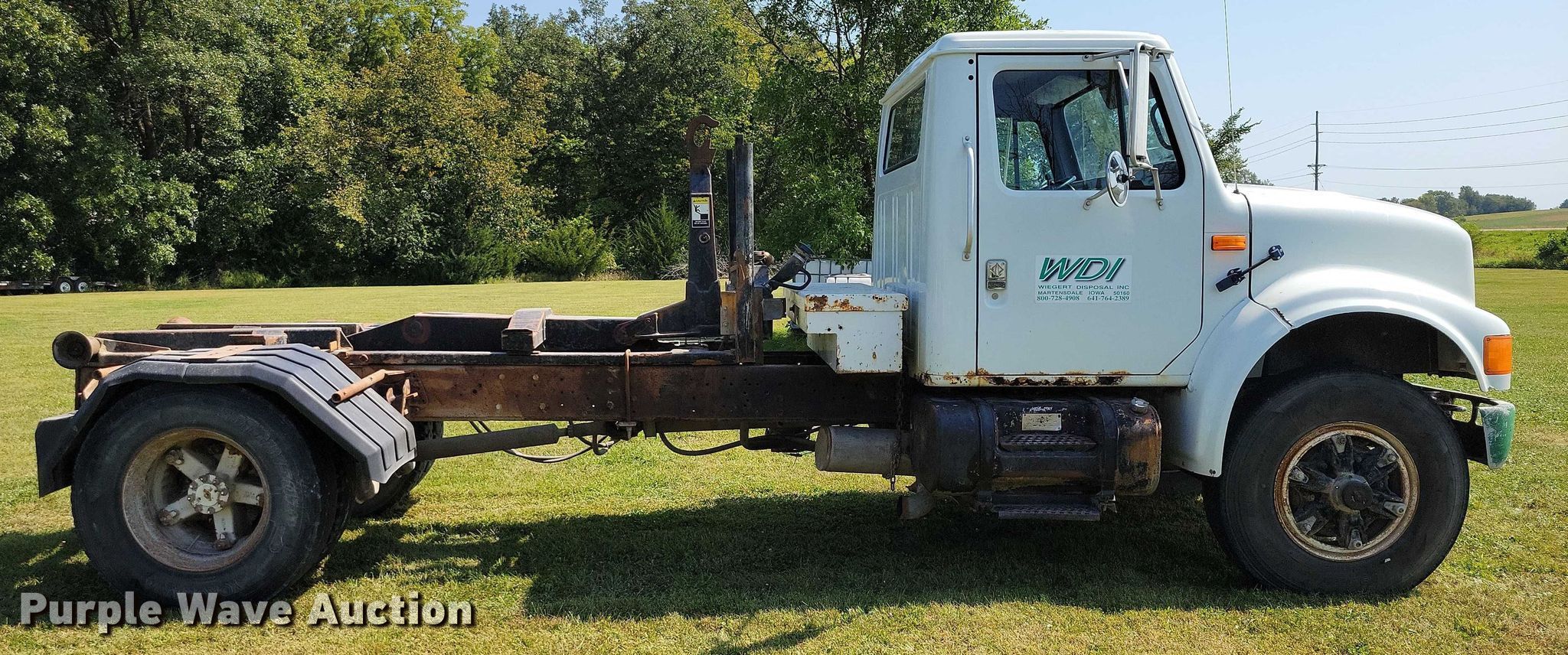 1992 International 4900 hook lift truck. Miles: 249,285 on odometer, Hours: 11,305 on meter, VIN: 1HTSDPNN7NH446250. Engine International Dt466, Displacement: 7.6L, Cylinders: 6, Fuel type: Diesel. Transmission Manual, Speed: 6. Chassis Axles: Single, Suspension: Spring, Brakes: Air, PTO. Features Bed Hook lift bed, Length: 12', Ram: Single. Tires Size: 11R22.5. Iowa title. Title distribution may be delayed up to 14 days from verification of funds. Wiegert Disposal Inc.. Prole, IA 50229