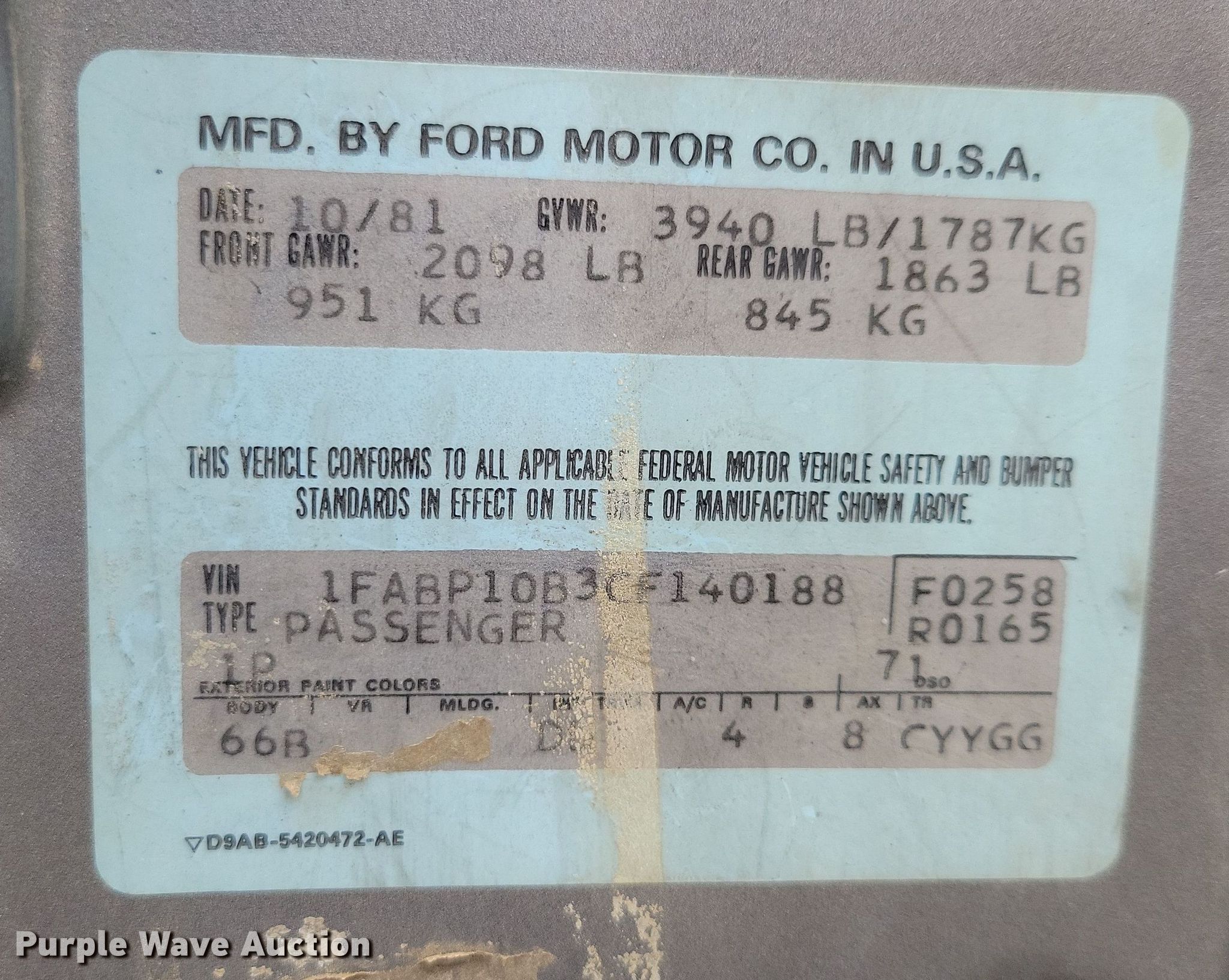 - VIN: 1FABP10B3CF140188