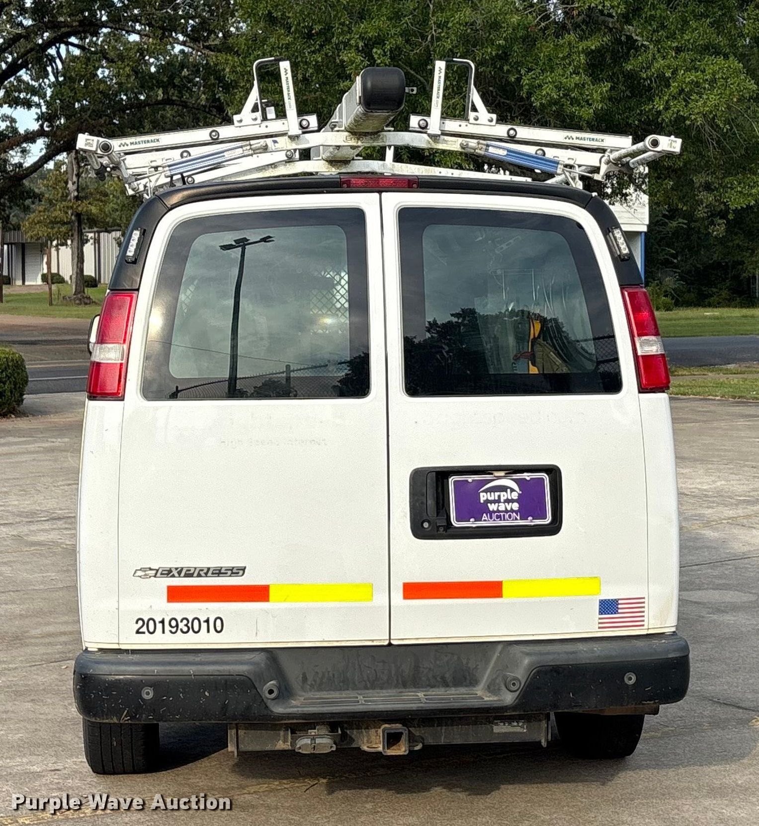 2019 Chevrolet Express 2500 van. Miles: 109,339 on odometer, VIN: 1GCWGAFP8K1295717, Unit #: 20193010. Engine Displacement: 4.3L V6, Cylinders: 6, Fuel type: Gas. Transmission Automatic. Interior AC, Heat, Power windows, Power locks, Cruise control. Tires Size: 245/75R16. Notes Contents not included, Dash warning indicator: Check engine, TPMS. Louisiana title. Title distribution may be delayed up to 30 days from verification of funds. Brightspeed. Chatham, LA 71226
