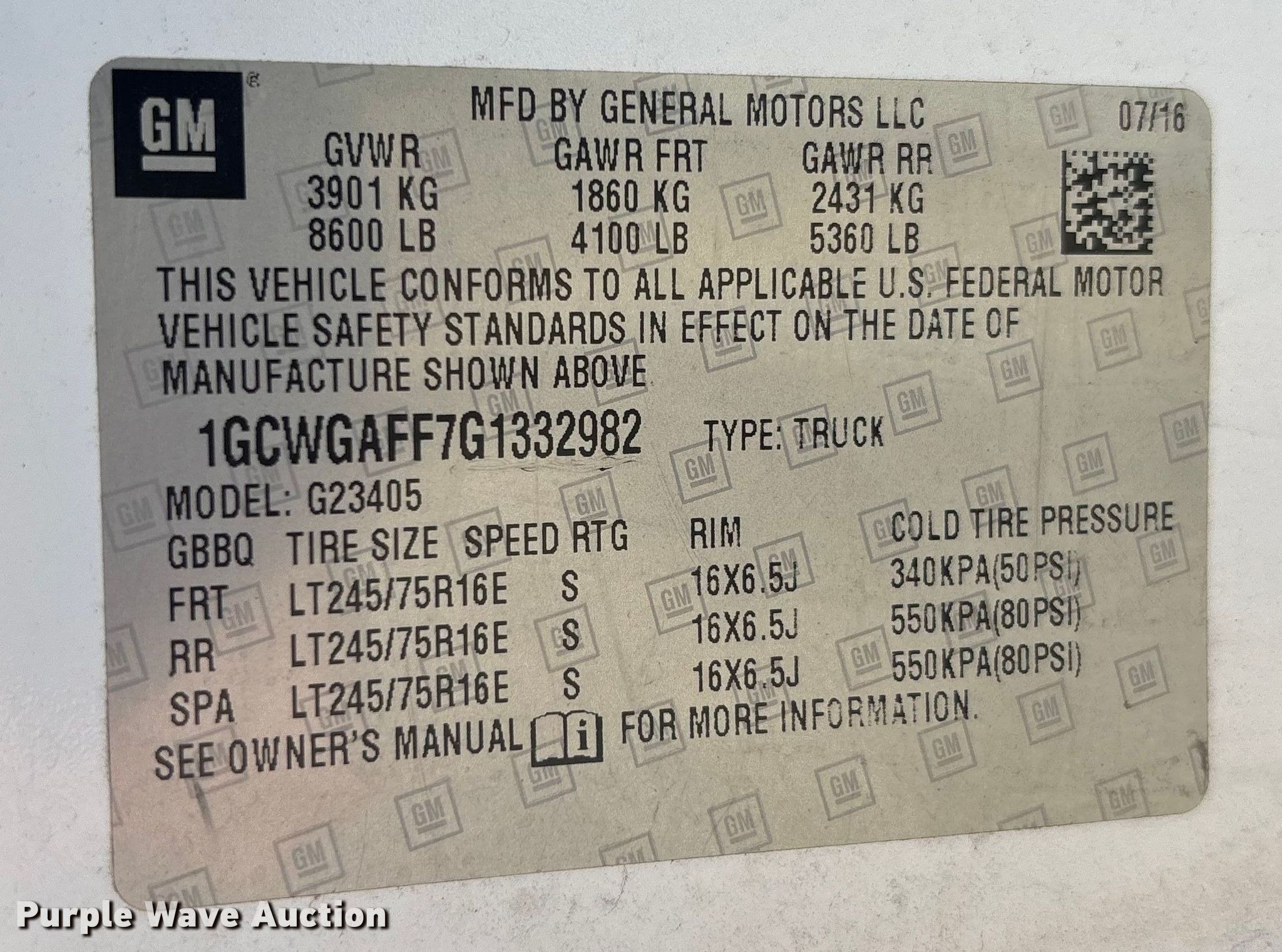 - VIN: 1GCWGAFF7G1332982