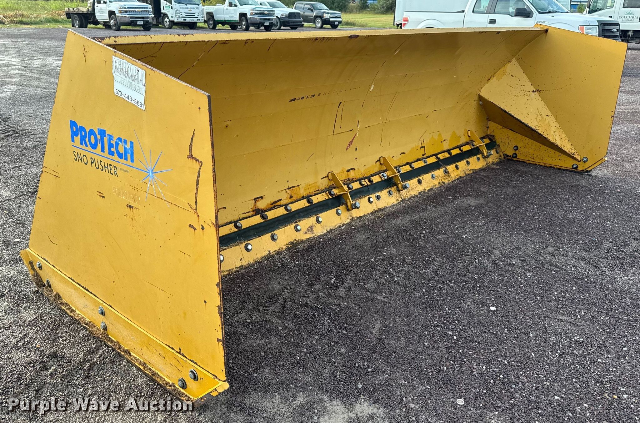 Purple Wave is selling a used Wheel Loader Attach. in Missouri. This item is a Pro-Tec SD14L wheel loader snow pusher with the following: Width: 14'