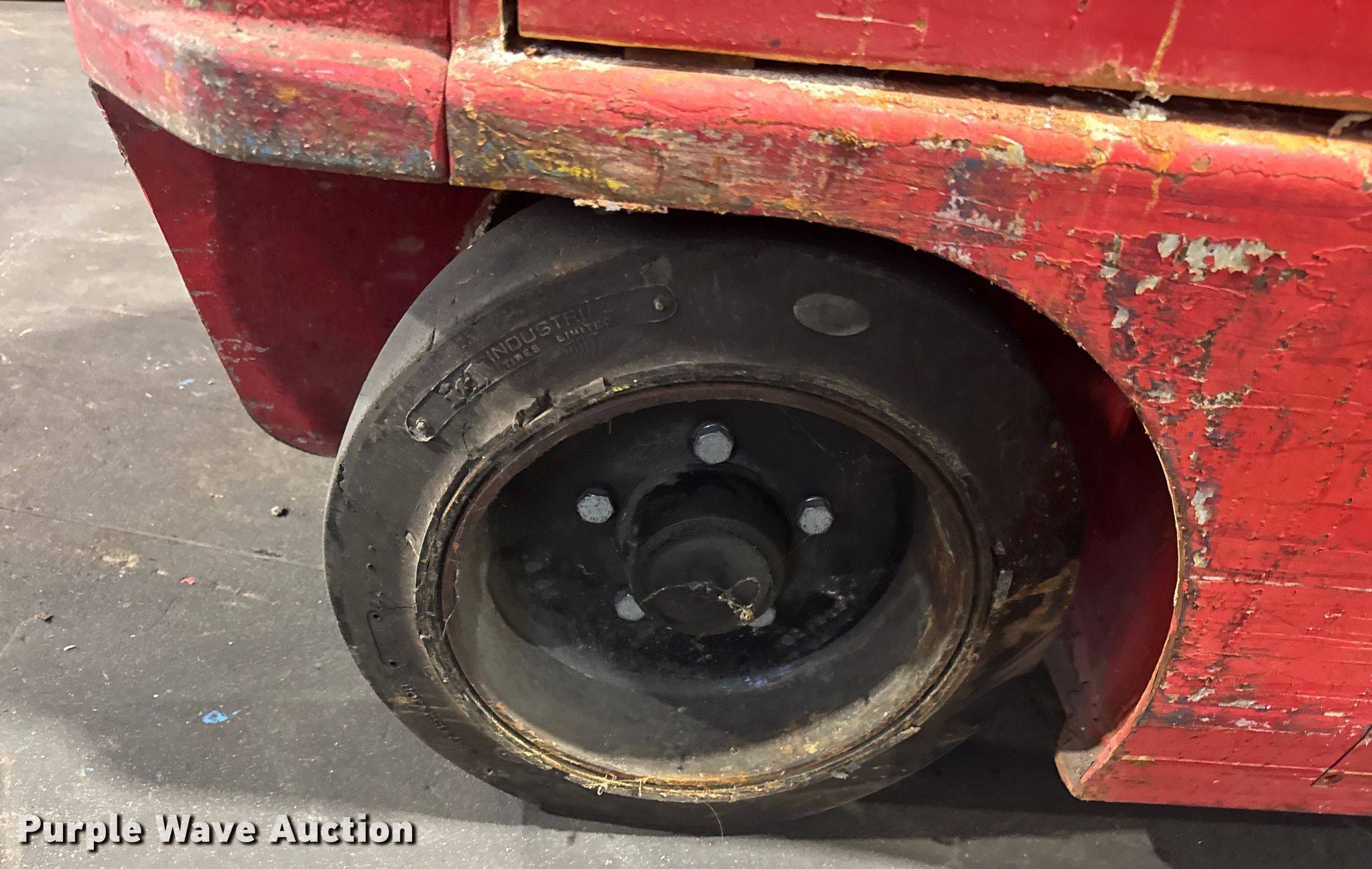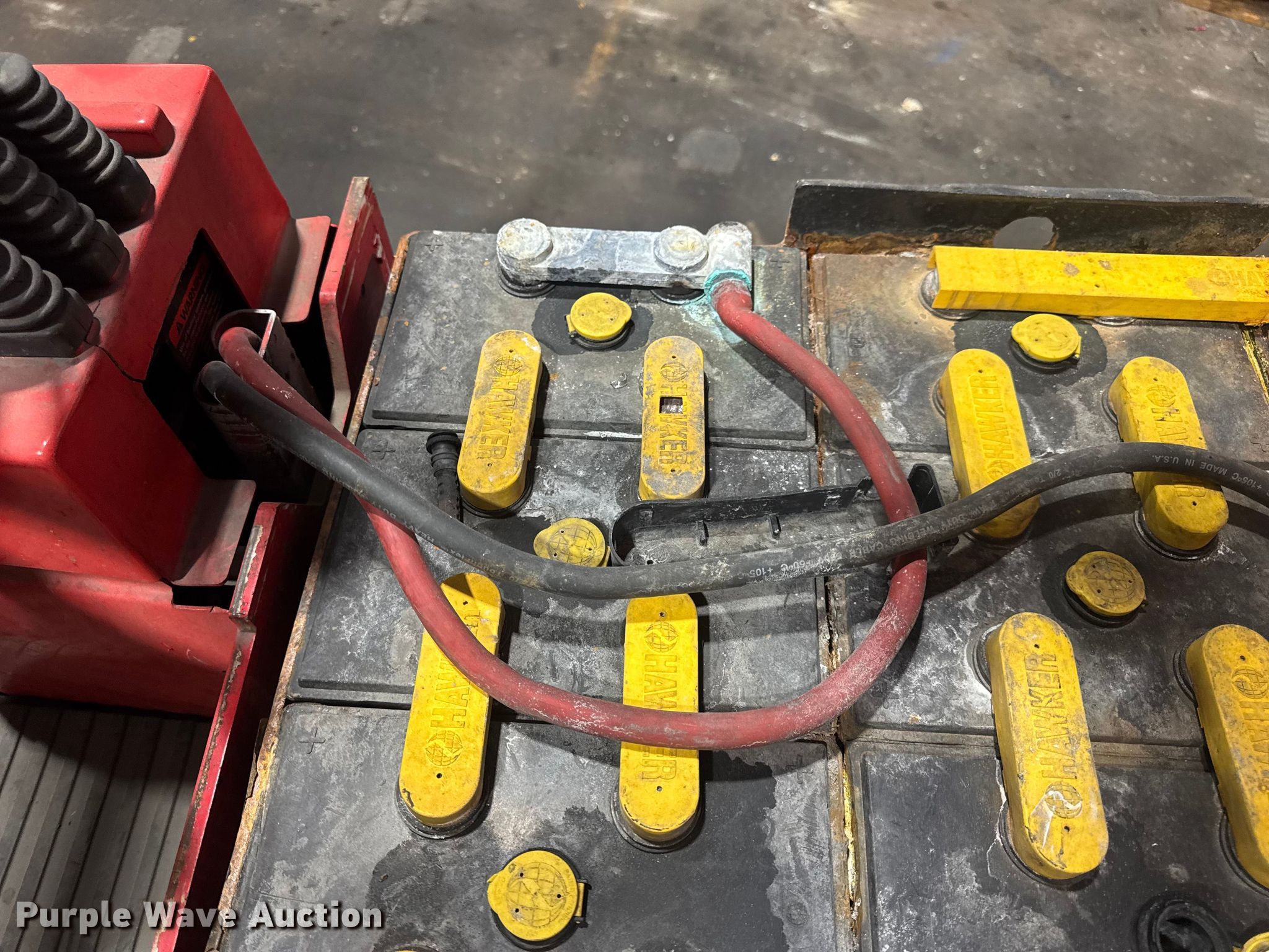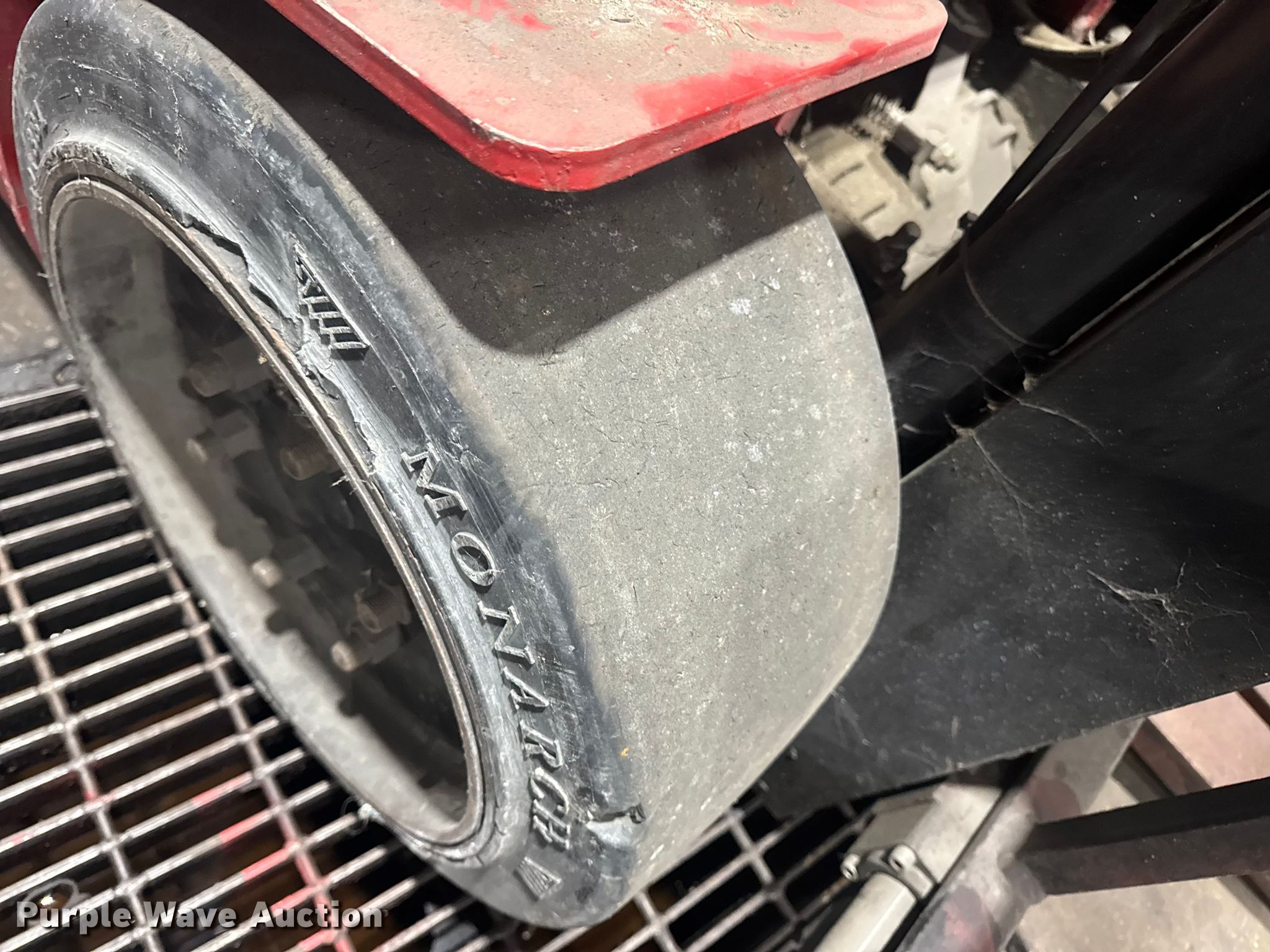 Raymond 470-C60TT forklift. Hours: 10,648 on meter, Serial: 470-12-SM10968. Electric Motor Volts: 36. Transmission Powershift. Features Maximum lift capacity: 6,000 lbs, Maximum lift height: 216", Collapsed mast height: 88", Mast stages: 3, Mast tilt, Fork length: 42". Tires Front: 533x229x381, Rear: 18x6x12 1/2, Solid, Non-marking. Notes Warning indicator: 92, Non-operational unit. Quaker Windows & Doors. Freeburg, MO 65035