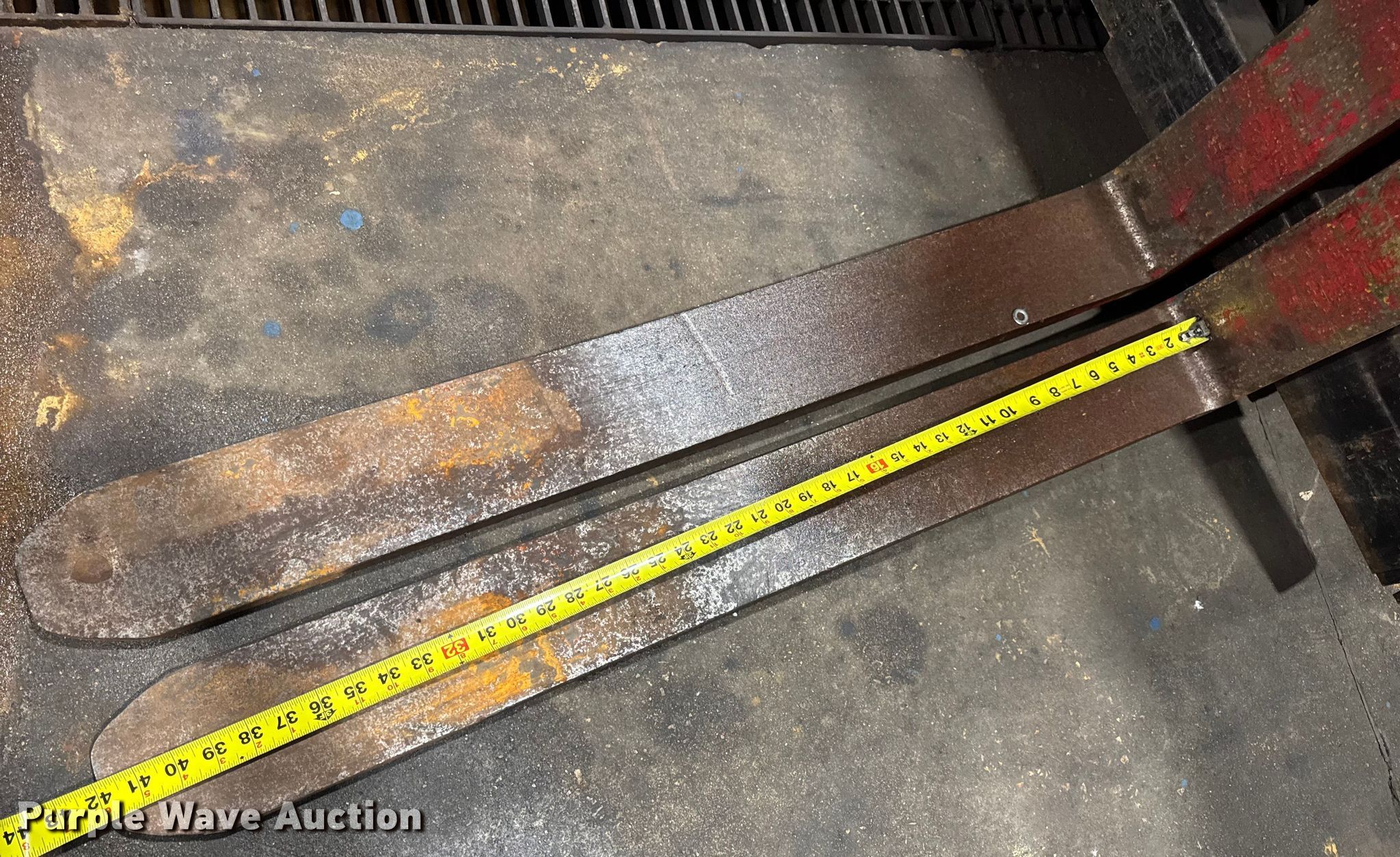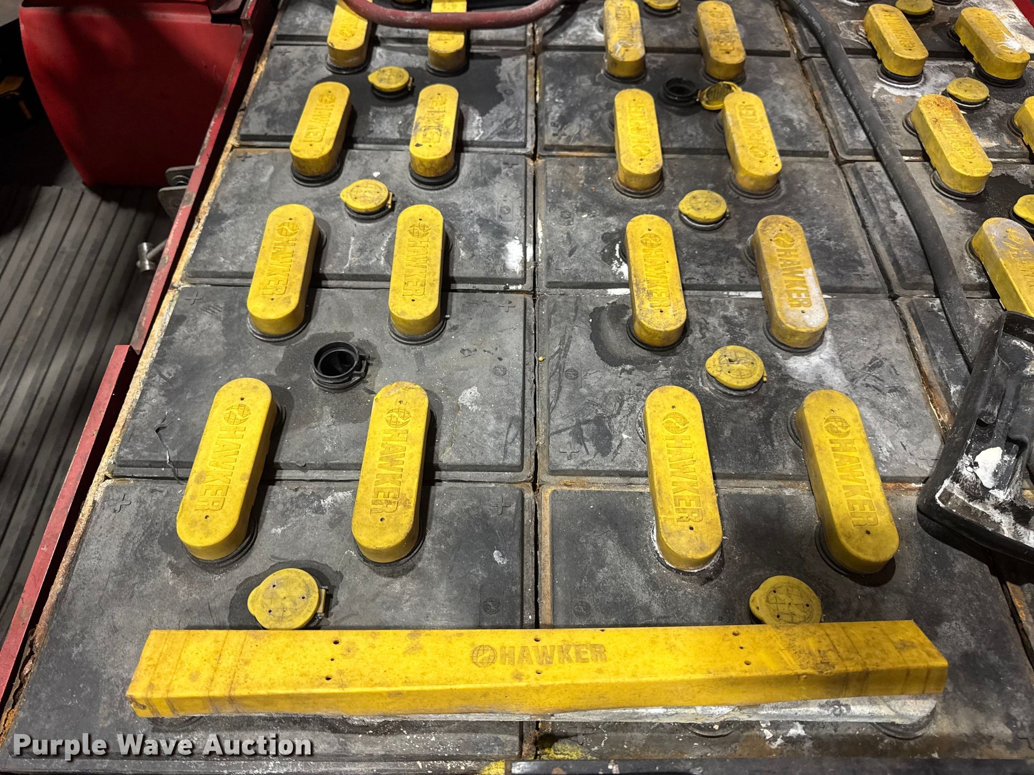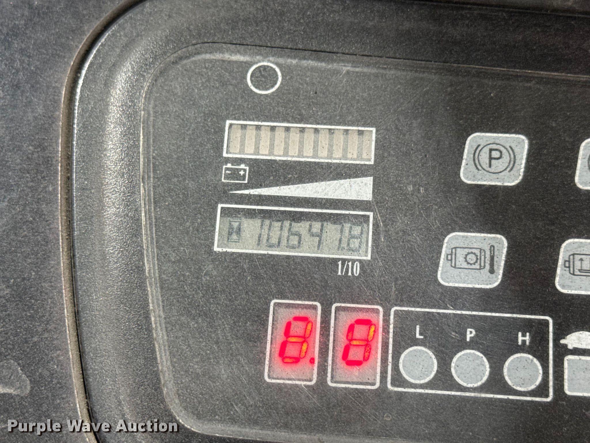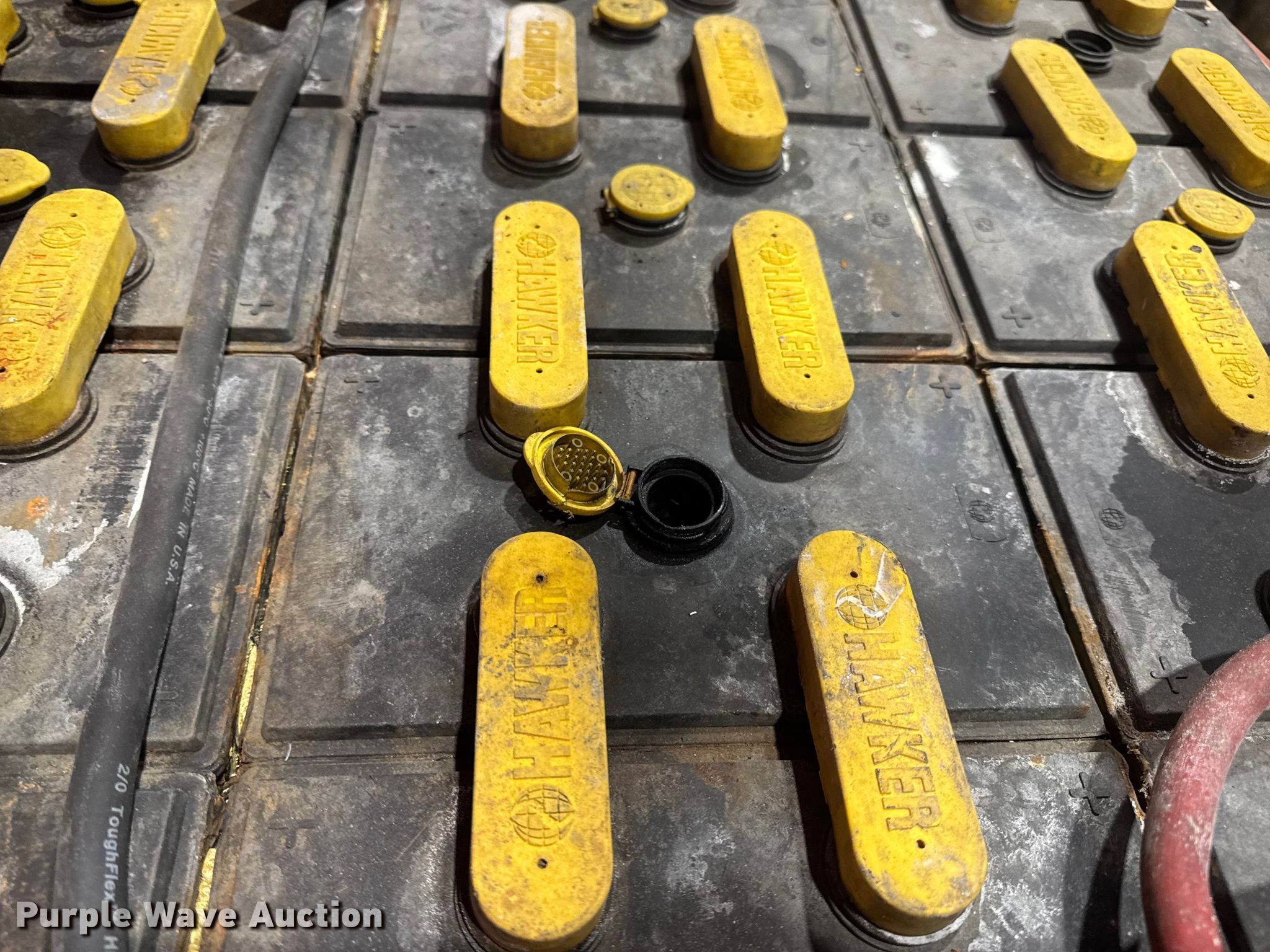 Raymond 470-C60TT forklift. Hours: 10,648 on meter, Serial: 470-12-SM10968. Electric Motor Volts: 36. Transmission Powershift. Features Maximum lift capacity: 6,000 lbs, Maximum lift height: 216", Collapsed mast height: 88", Mast stages: 3, Mast tilt, Fork length: 42". Tires Front: 533x229x381, Rear: 18x6x12 1/2, Solid, Non-marking. Notes Warning indicator: 92, Non-operational unit. Quaker Windows & Doors. Freeburg, MO 65035