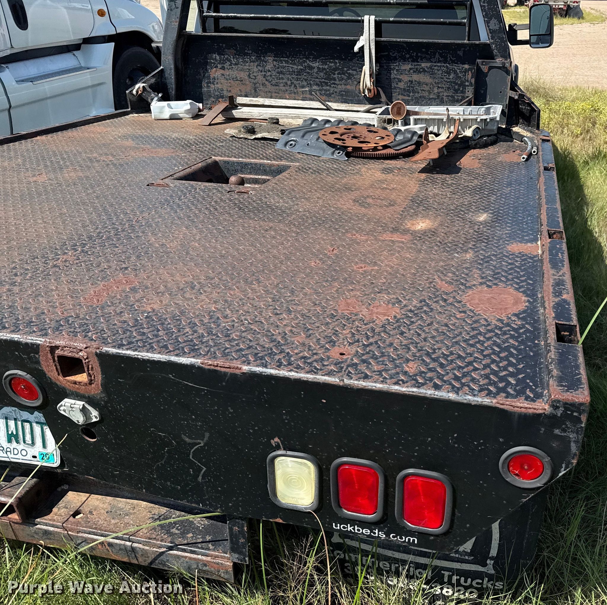 2001 Chevrolet Silverado 3500 Ext. Cab flatbed pickup truck. Miles: Unknown, VIN: 1GCJK39101E300234. Engine Displacement: 6.6L V8 OHV, Cylinders: 8, Fuel type: Diesel. Transmission Automatic, Four wheel drive. Interior AC, Heat, Seat: Power driver, Power windows, Power locks, Cruise control, Brake controller. Features Bed Flatbed, Length: 8' 6", Width: 97", Hitch: Gooseneck. Tires Size: 235/85R16. Notes Dead battery, Non-operational gauge cluster, Driveshaft removed, Intake tube disconnected, ECM plug disconnected, Unknown operating condition. Colorado title. Mileage has not been verified. Exempt will be written in the odometer disclosure on the title. Title distribution may be delayed up to 14 days from verification of funds. Arkansas Valley Diesel Service Inc. Lamar, CO 81052