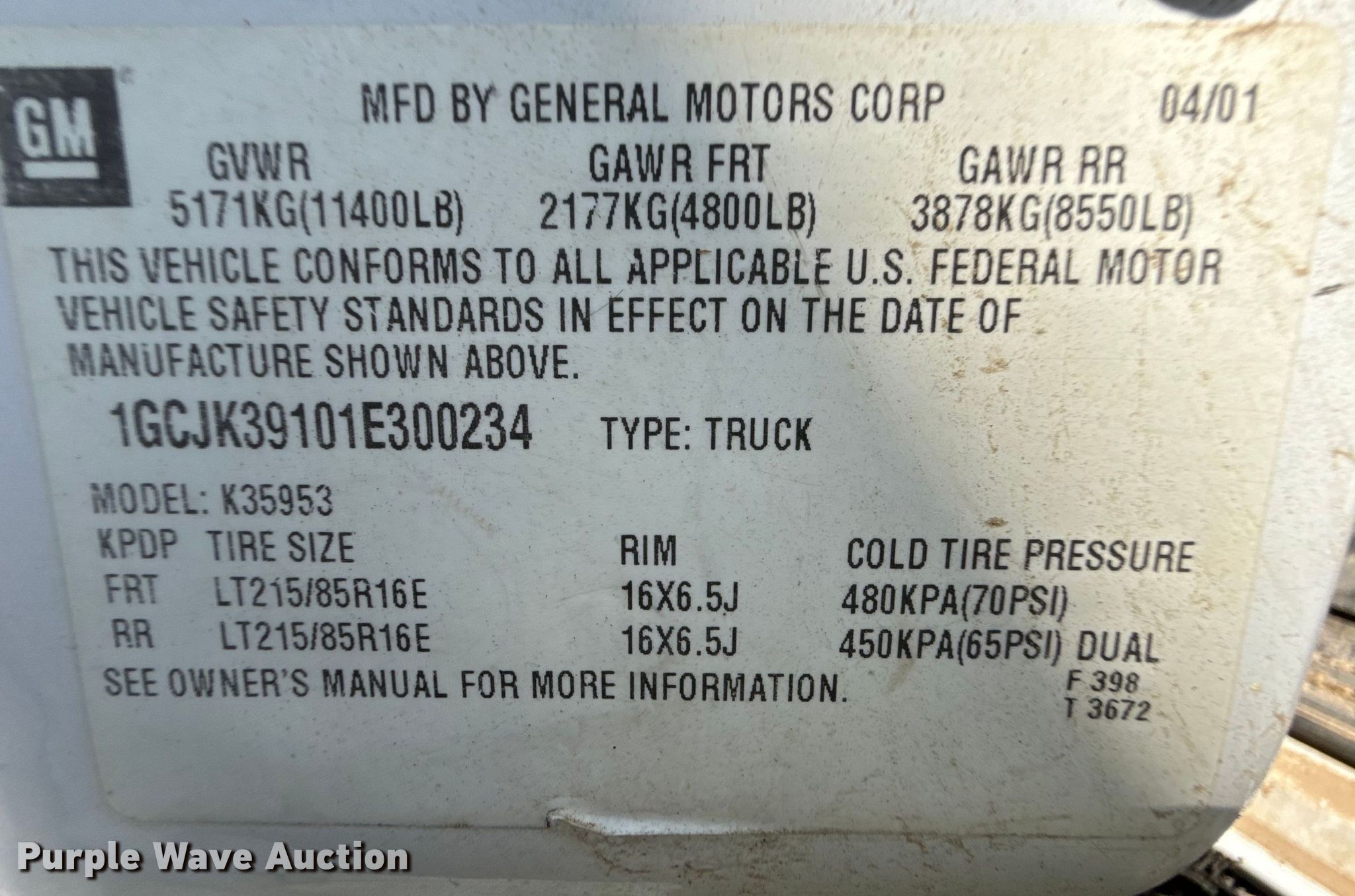 Purple Wave is selling a used 3/4 or 1 Ton Pickup or Van in Colorado. This item is a 2001 Chevrolet Silverado 3500 Ext. Cab flatbed pickup truck with the following: Miles: Unknown, VIN: 1GCJK39101E300234