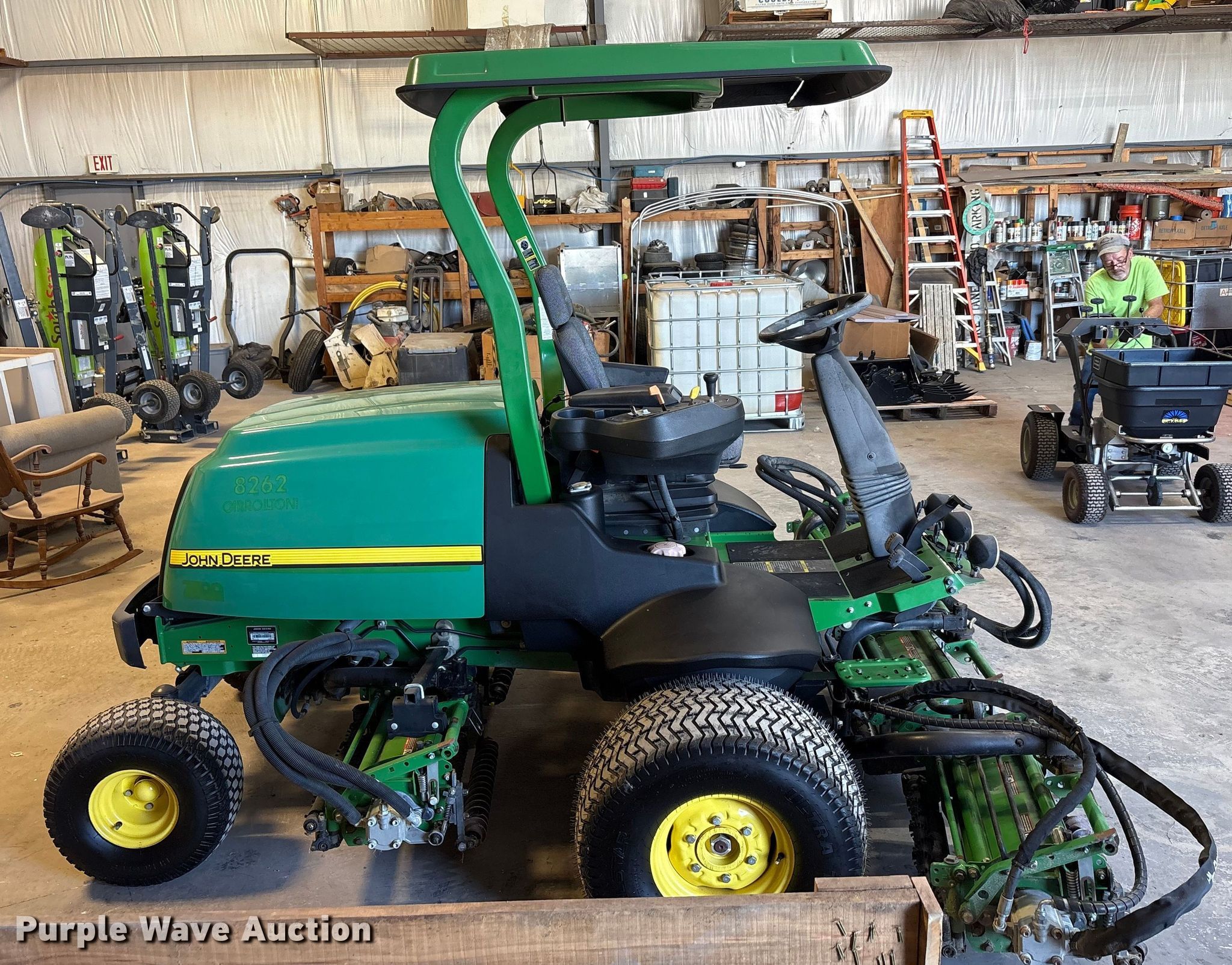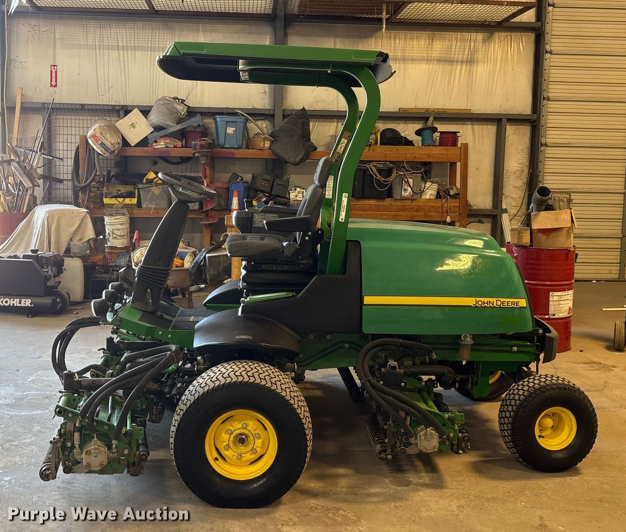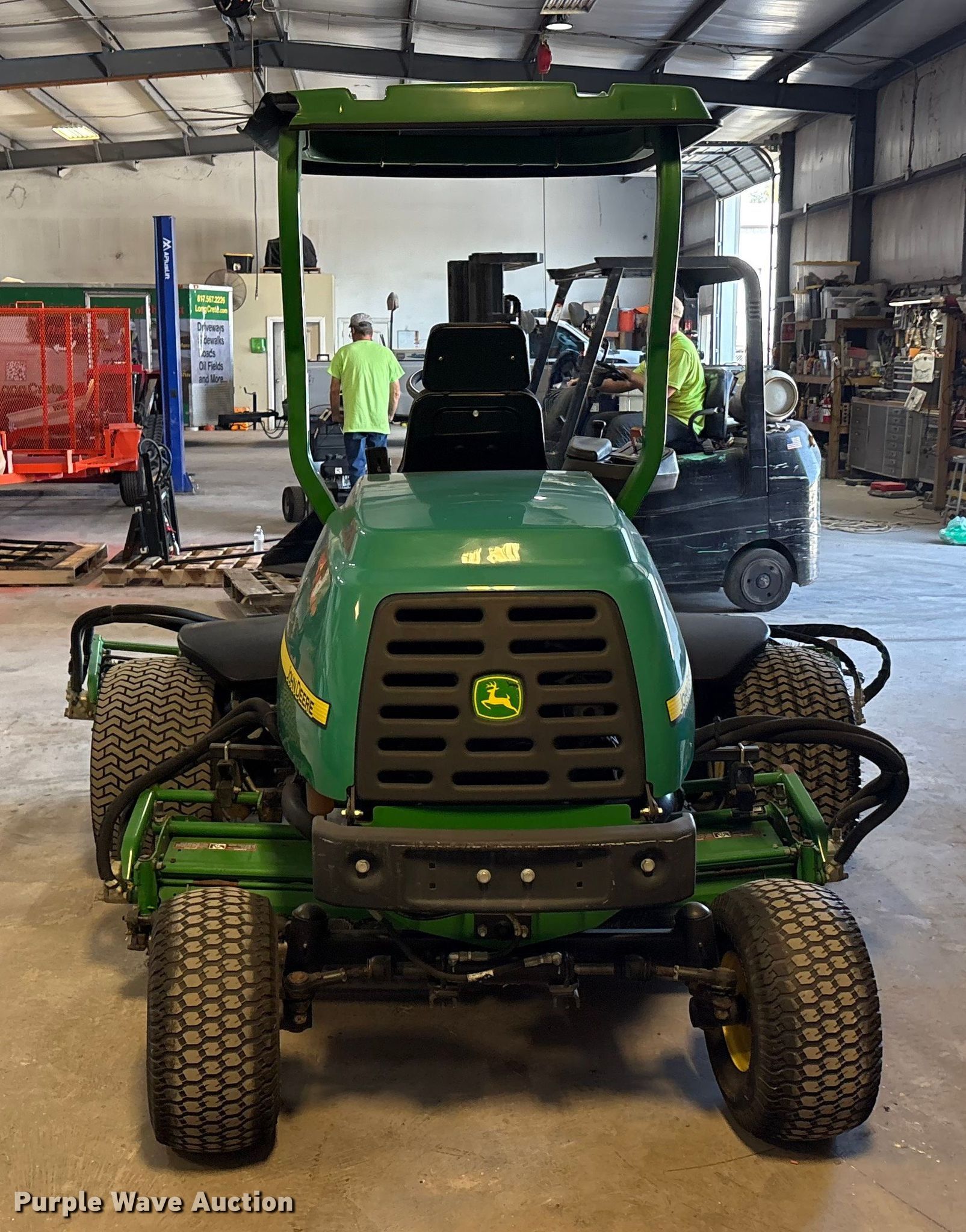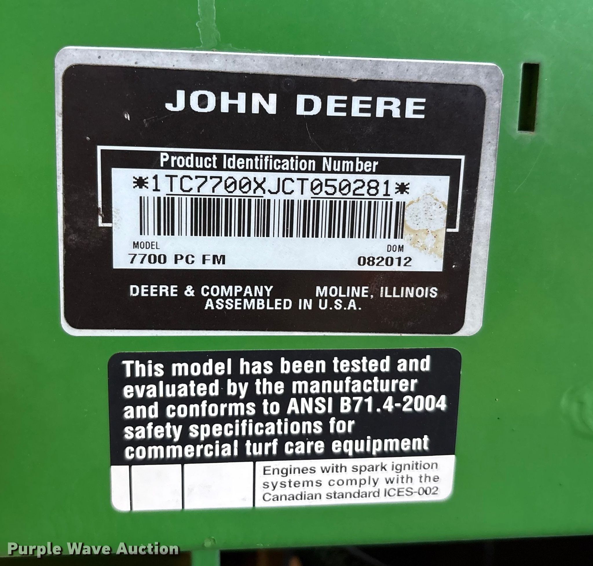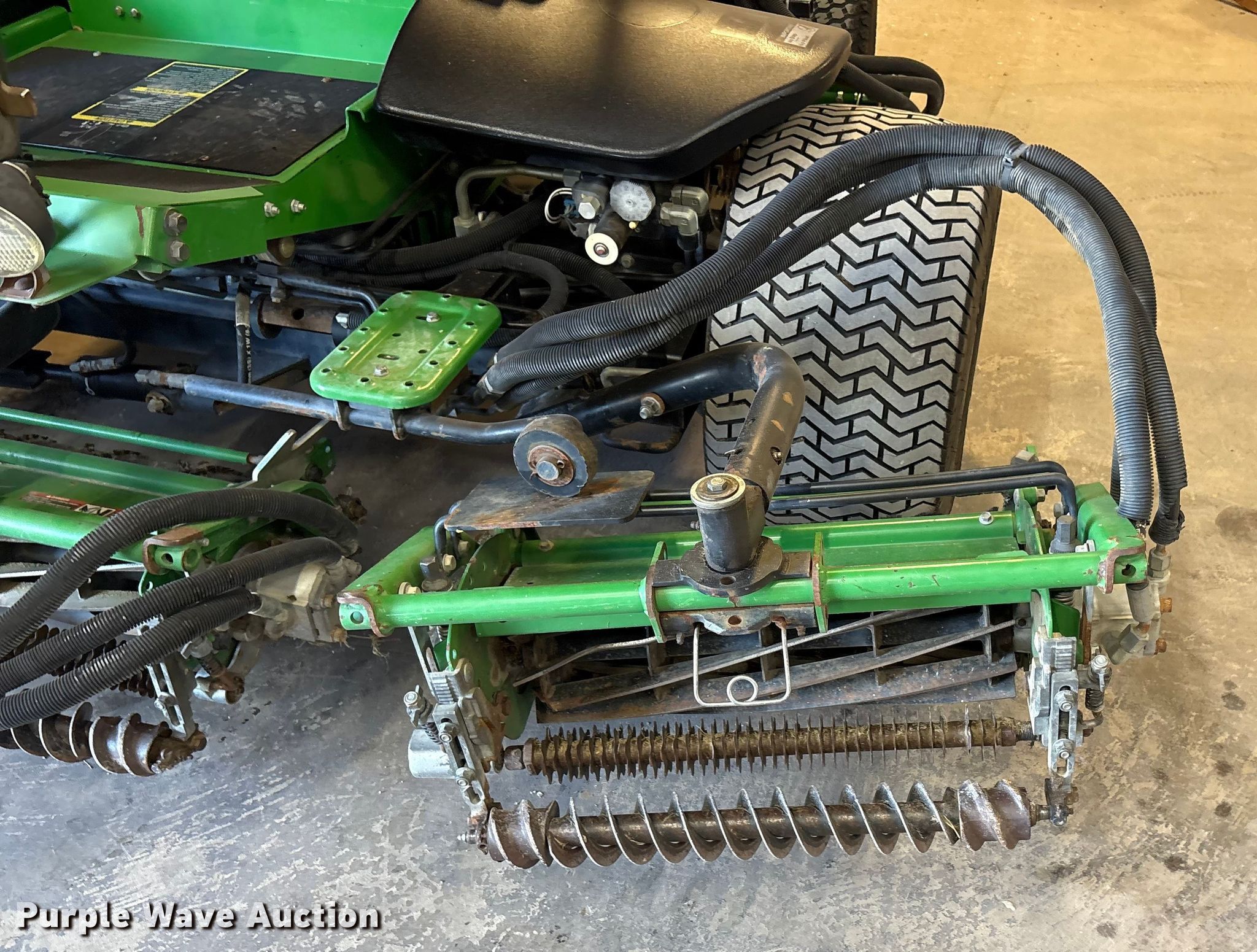 Purple Wave is selling a used Lawn Mower in Texas. This item is a 2012 John Deere 7700 PC FM reel mower with the following: Hours: 1,163 on meter, Cutting width: 104", Serial: 1TC7700XJCT050281
