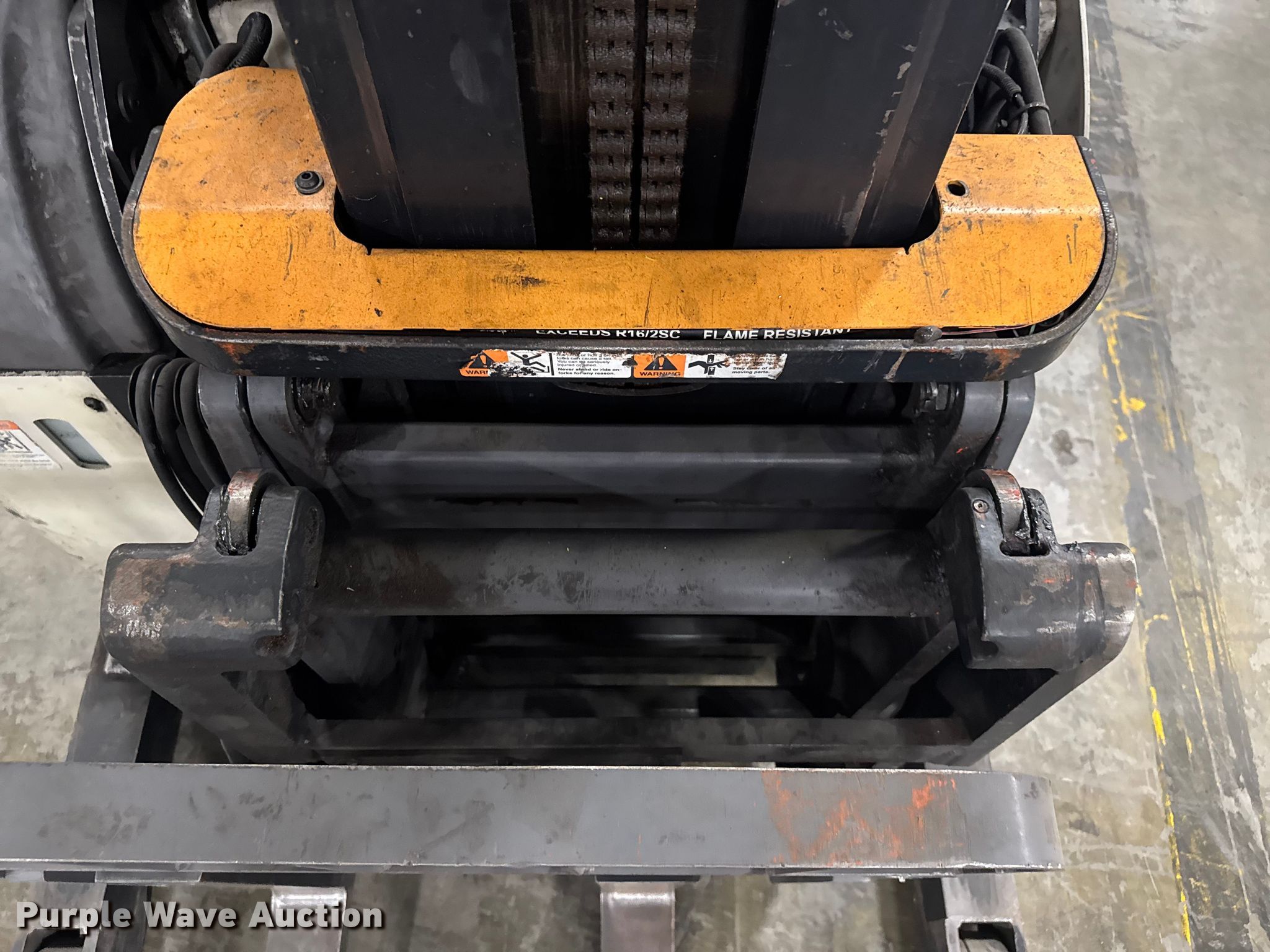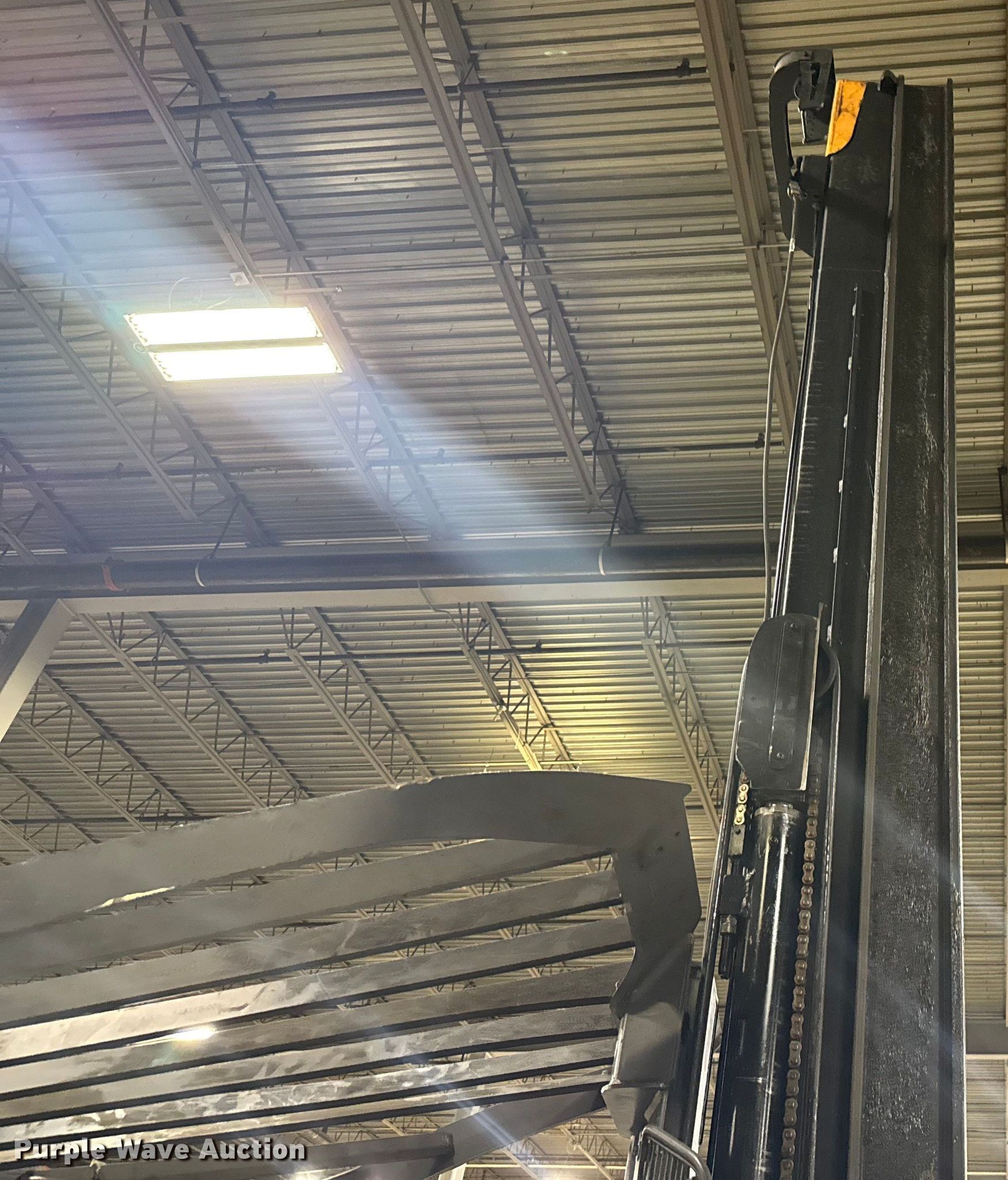 Crown RMD6095S-32 reach truck. Hours: 9,677 on meter, Serial: 1A433669. Electric Motor Volts: 36. Transmission Electric drive. Operators station OROPS. Features Maximum lift capacity: 12,825 lbs, Maximum lift height: 505", Collapsed mast height: 214", Mast stages: 2, Side shift, Reach / retract, Fork length: 42". Tires Solid. Notes Battery not included. Nor-Am Cold Storage. Elwood, KS 66024