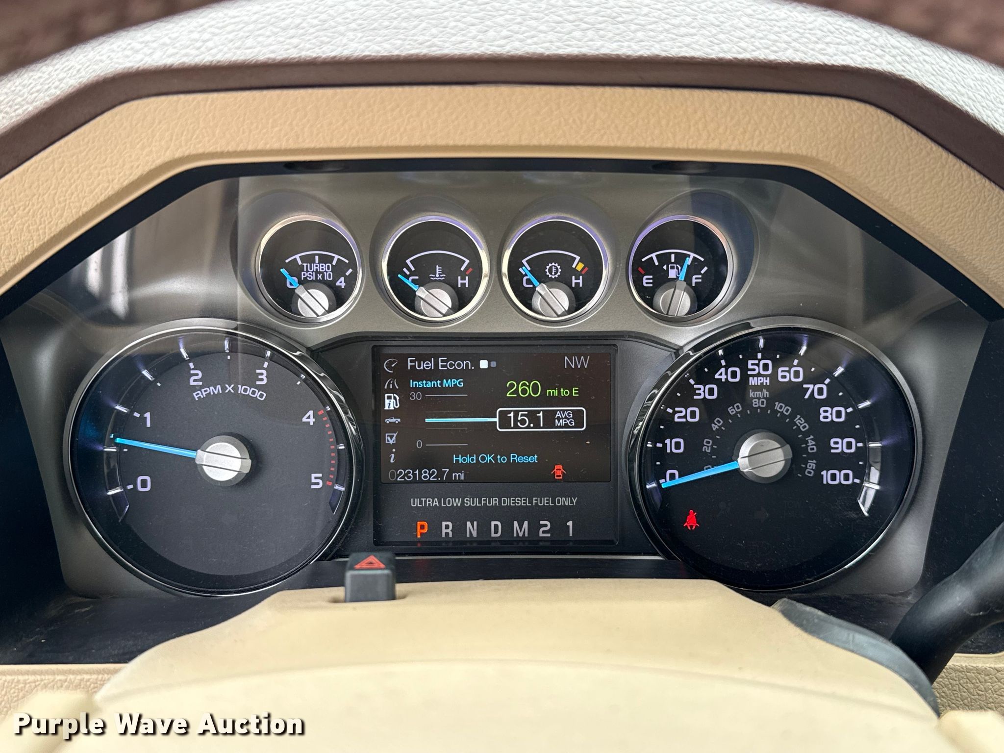 2012 Ford F250 Super Duty King Ranch Crew Cab pickup truck. Miles: 23,183 on odometer, VIN: 1FT7W2BT0CEA24676, Insurance salvage unit claim #: 5-808672. Engine Displacement: 6.7L V8 OHV, Cylinders: 8, Fuel type: Diesel. Transmission Automatic, Four wheel drive. Interior AC, Heat, Seat: Heated, Cooled, Power driver, Power passenger, Heated mirrors, Power windows, Power locks, Cruise control, Auxiliary controls, Brake controller, Powered sunroof. Tires Size: LT275/65R20. Notes Windshield chipped or cracked. Oklahoma title. Title distribution may be delayed up to 14 days from verification of funds. Oklahoma Farm Bureau Insurance. Seminole, OK 74868