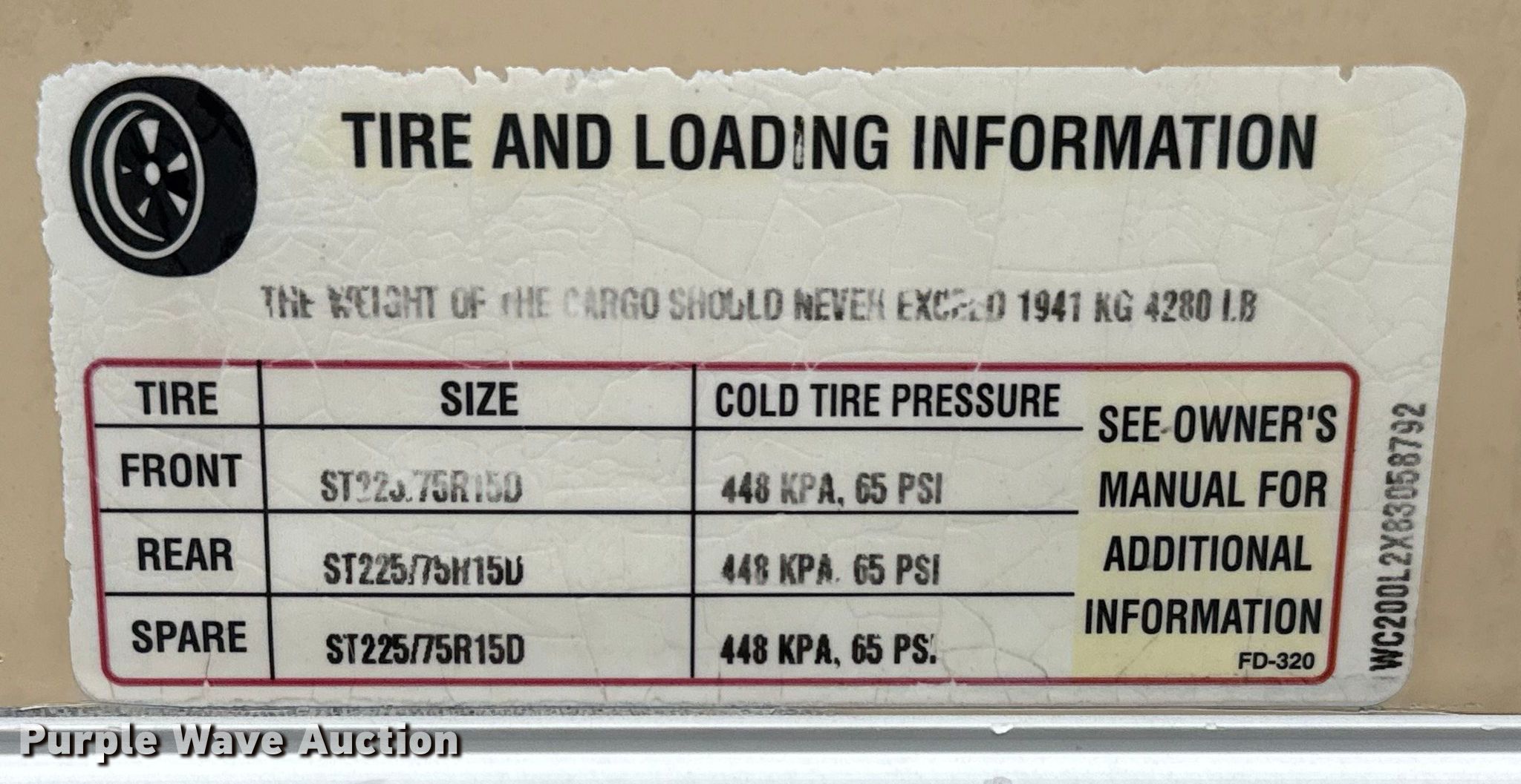 2008 Wells Cargo enclosed cargo trailer. VIN: 1WC200L2X83058792. Dimensions Overall Length: 29', Width: 99", Body Length: 24', Width: 93", Rear door / ramp Width: 87". Features Deck type: Wood, Auxiliary fuel tank, Pump, Nozzle. Chassis Hitch: Pintle, Landing gear: Single, Suspension: Torsion, Brakes: Electric, Axles: Tandem, GVWR: 10,000 lbs, GAWR: 5,000 lbs. Tires Steel wheels, Size: ST225/75R15. Oklahoma title. Seller is an Oklahoma licensed motor vehicle dealer. Buyers may be required to provide identification to the licensed dealer to comply with state laws. Title will be assigned and distributed by the dealer. Please contact the seller for distribution questions. Title distribution may be delayed up to 30 days from verification of funds. Collinsville, OK 74021