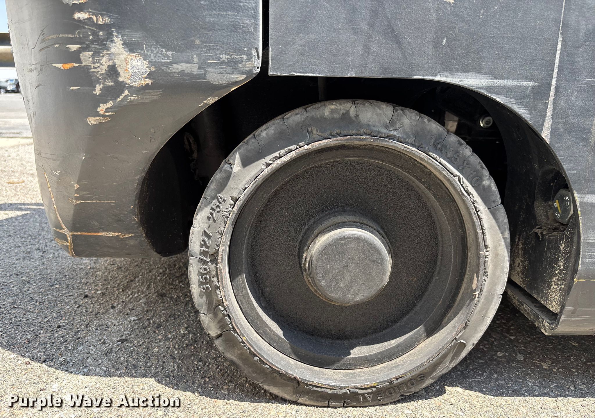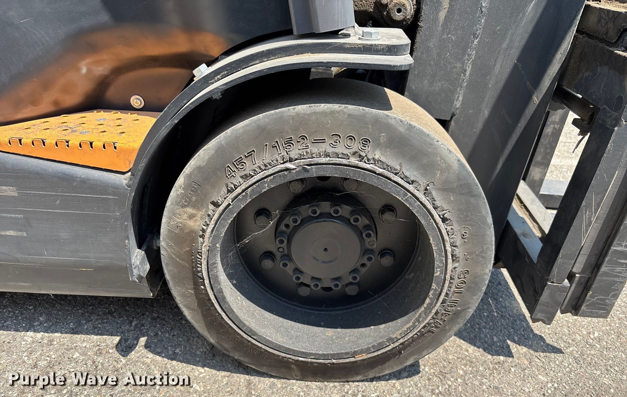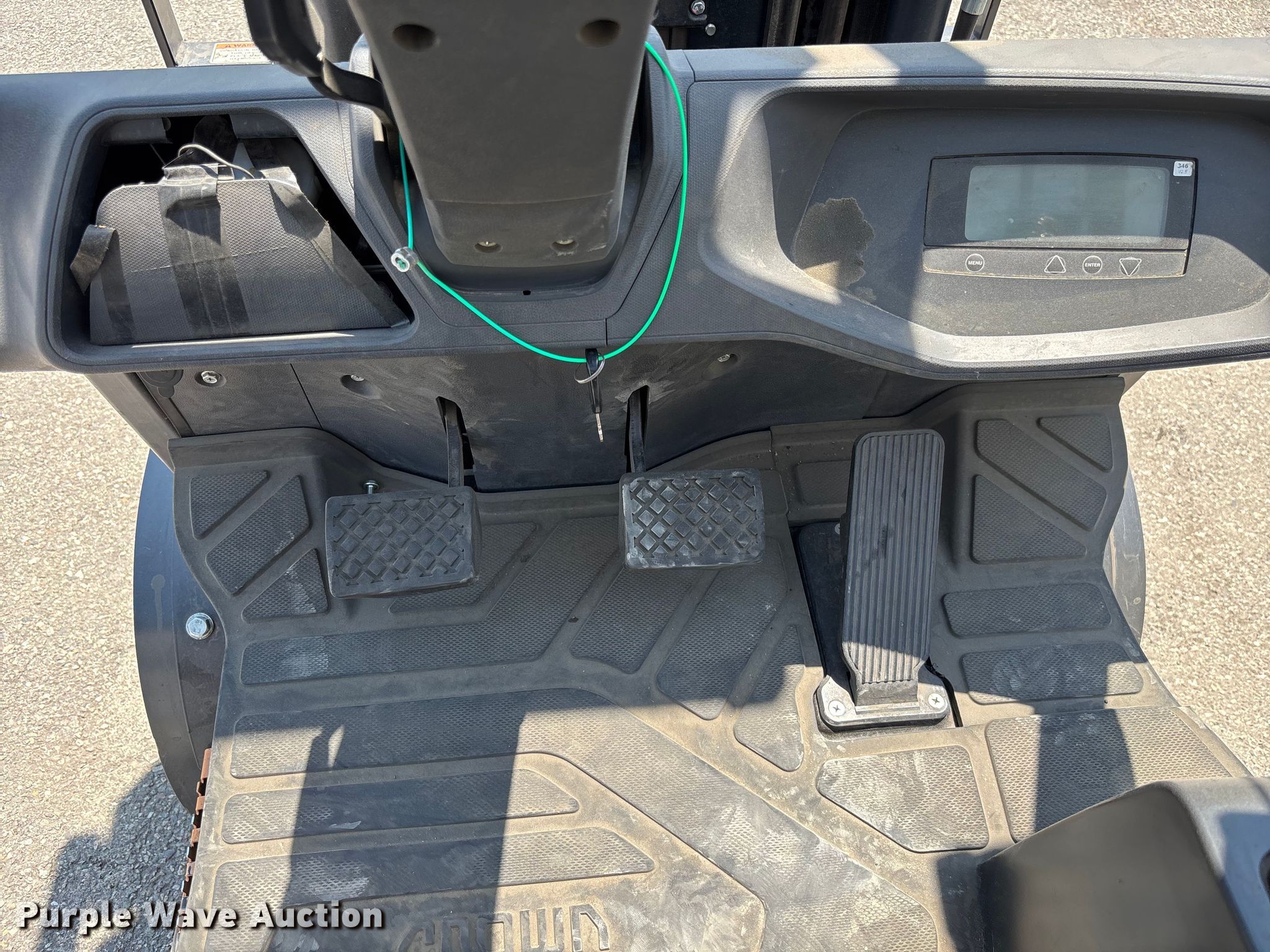 Crown CGC20SC-9 forklift. Hours: 5,597 on meter, Serial: FGA1C-1450-00613, Unit #: 65365435. Engine Mitsubishi, Cylinders: 4, Fuel type: LPG LP bottle: Not included. Transmission Powershift. Operators station OROPS. Features Maximum lift capacity: 3,250 lbs, Maximum lift height: 187", Collapsed mast height: 82", Mast stages: 3, Side shift, Mast tilt, Fork positioner, Fork length: 42". Tires Front: 18X6X12, Rear: 14X5X10, Solid. Notes Dead battery, Jump start required during on-site data collection, Parking brake switch missing. Repossessed item, stored at a secured facility. Please review REQUIRED REMOVAL INSTRUCTIONS. Lender Owned. Colton, CA 92324