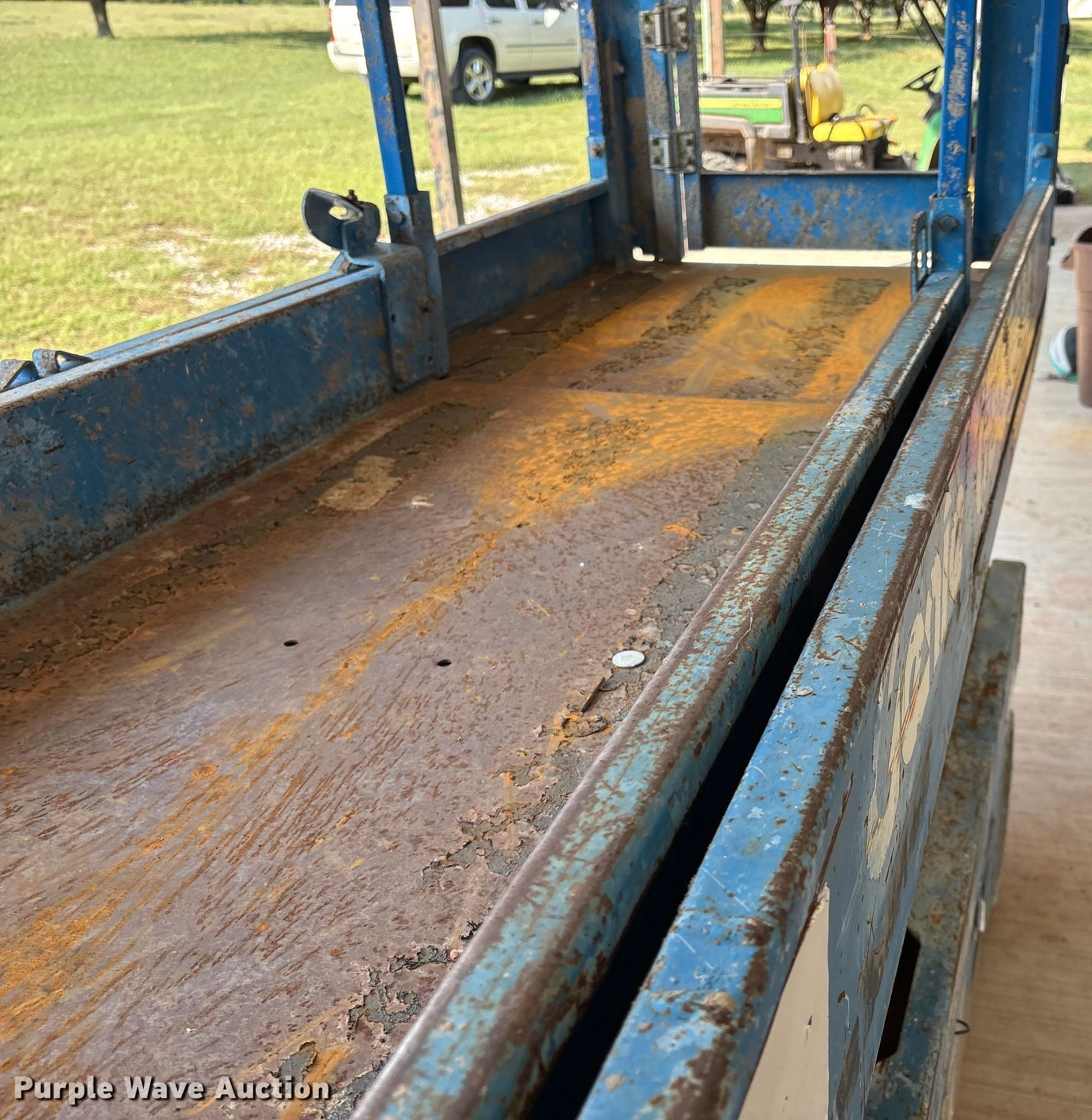 Genie GS-2632 scissor lift. Hours: 303 on meter, Serial: GS3213A-116248. Features Maximum lift capacity: 500 lbs, Maximum lift height: 31' 8", Platform: 82" L x 32" W, AC power outlet, Controls: Platform, Ground, Platform extensions: Manual. Tires Tire size: 15x5, Solid, Non-marking. Ellis Farms Retirement Auction. Wayne, OK 73095