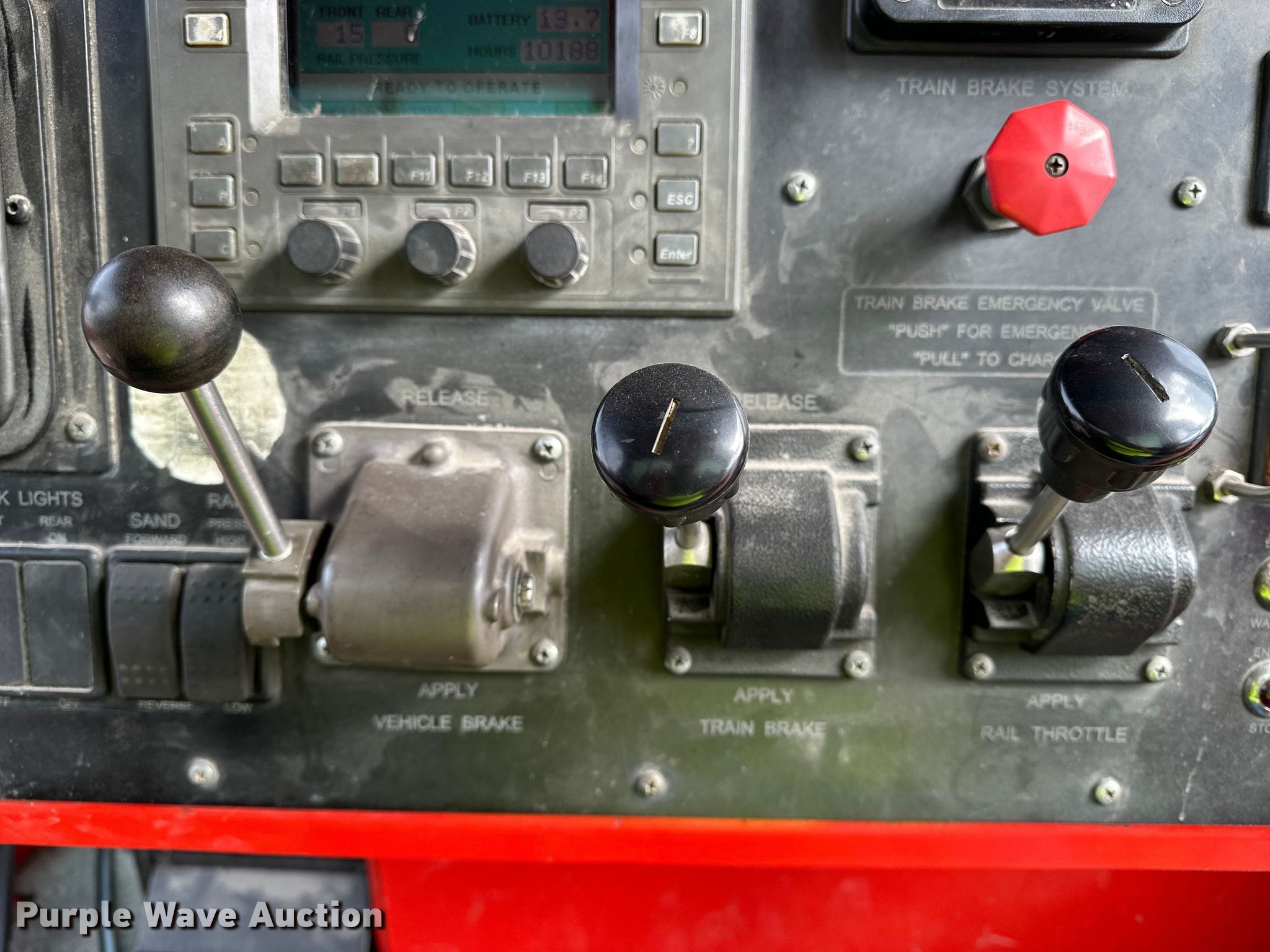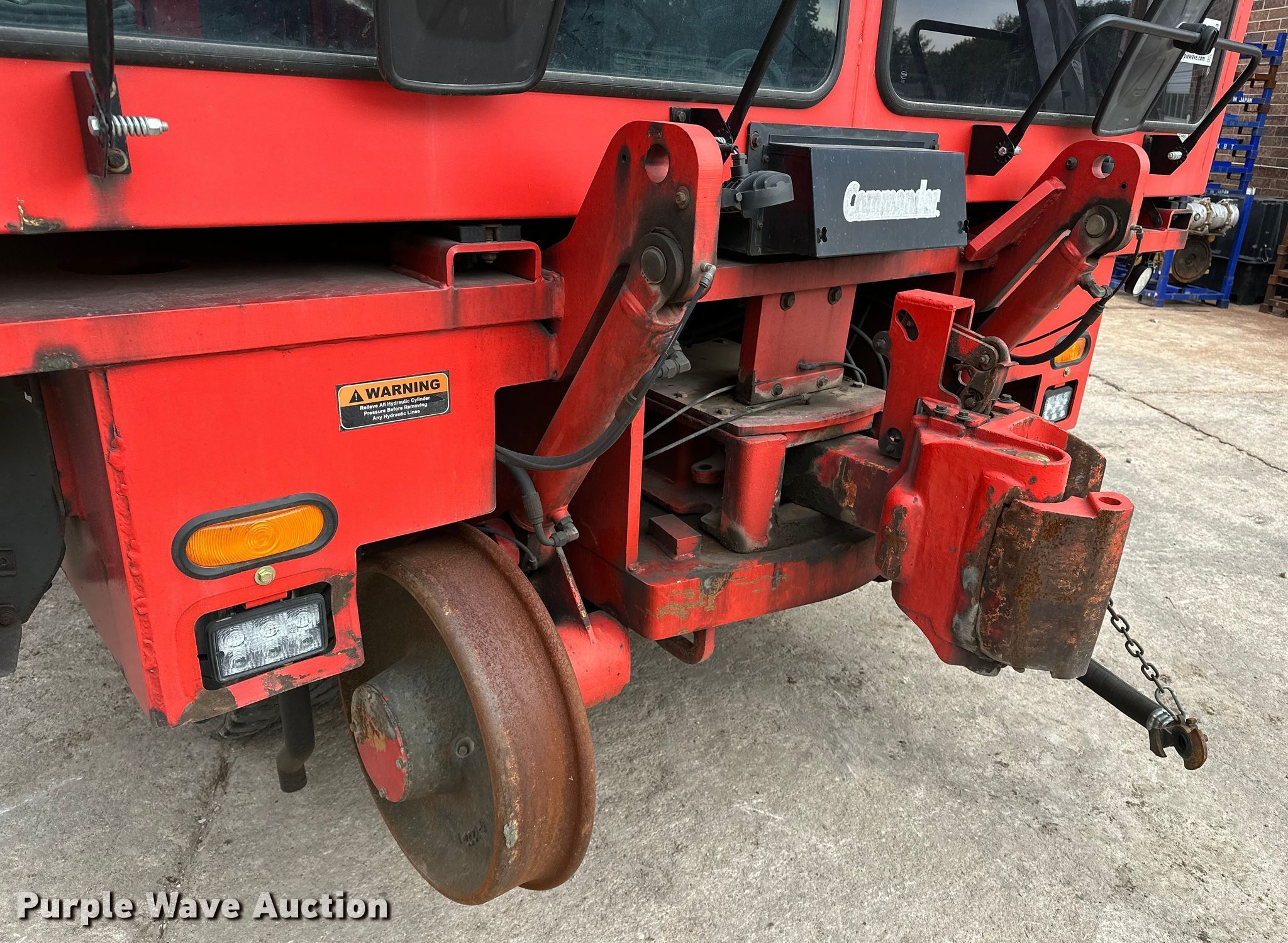 2007 Shuttlewagon SWX415C railcar mover. Hours: 10,188 on meter, Serial: 7GC41535, Unit #: EQN136573. Engine Cummins QSB, Serial: 46733850, Displacement: 6.7L, Cylinders: 6, Fuel type: Diesel. Transmission John Deere DF150, Automatic. Chassis Axles: Single, Brakes: Air. Interior AC, Heat. Features Hyrail system, Sand system. Tires Size: 315/80R22.5. Notes Possible AC issues, may need charged, Rear hydraulic leak, Intermittent steering system issue. This is worksite support equipment and will not come with a title. Transfer of ownership documentation will be a bill of sale. Rion Equipment. Doniphan, NE 68832