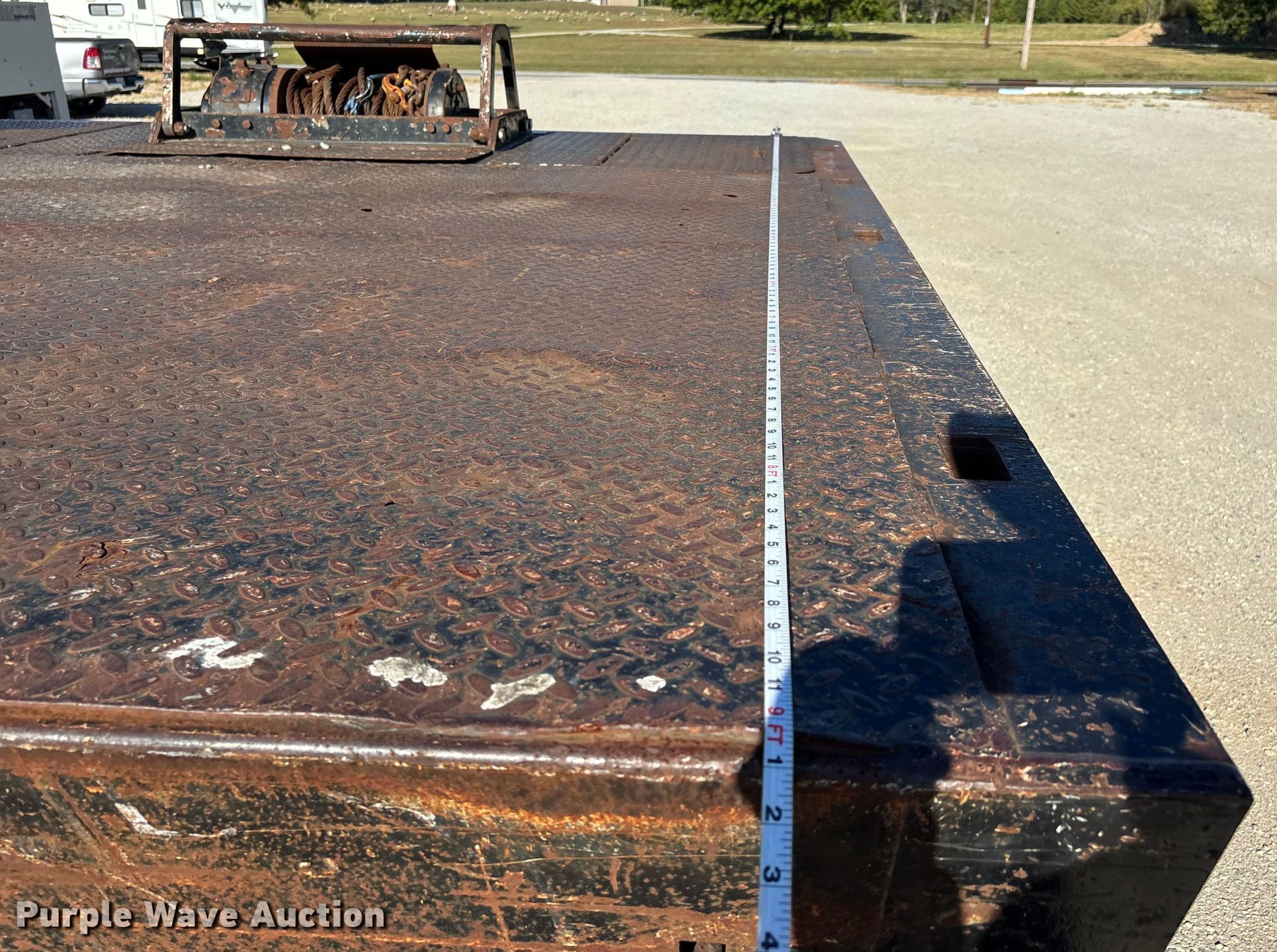 2007 Trail King TK70HT-482 drop deck hydraulic tail equipment trailer. VIN: 1TKA048257M077315, Unit #: 651316. Dimensions Overall Length: 47' 8", Width: 102", Deck Length: 38' 7", Width: 102", Top deck length: 9', Deck height: 3', Ramps: Hydraulic Length: 3' 10". Features Deck type: Steel, Wood, Winch, Hydraulic controls: Manual. Chassis Landing gear: Dual, Suspension: Air, Brakes: Air, Axles: Tandem, GVWR: 86,620 lbs, GAWR: 17,640 lbs. Tires Steel wheels, Size: 10R17.5. Notes Possible hydraulic control issues, loose, Deck damaged, holes. Illinois title. Title distribution may be delayed up to 14 days from verification of funds. Heartland Mechanical Contractors. Murphysboro, IL 62966