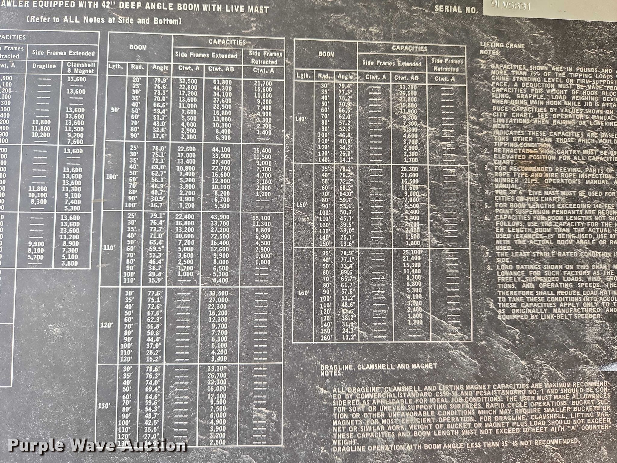 Purple Wave is selling a used Crawler Crane in Kansas. This item is a 1981 Link-Belt LS-118 crane with the following: Hours: 10,660 on meter, Serial: 9LV5831, Unit #: 22.63L