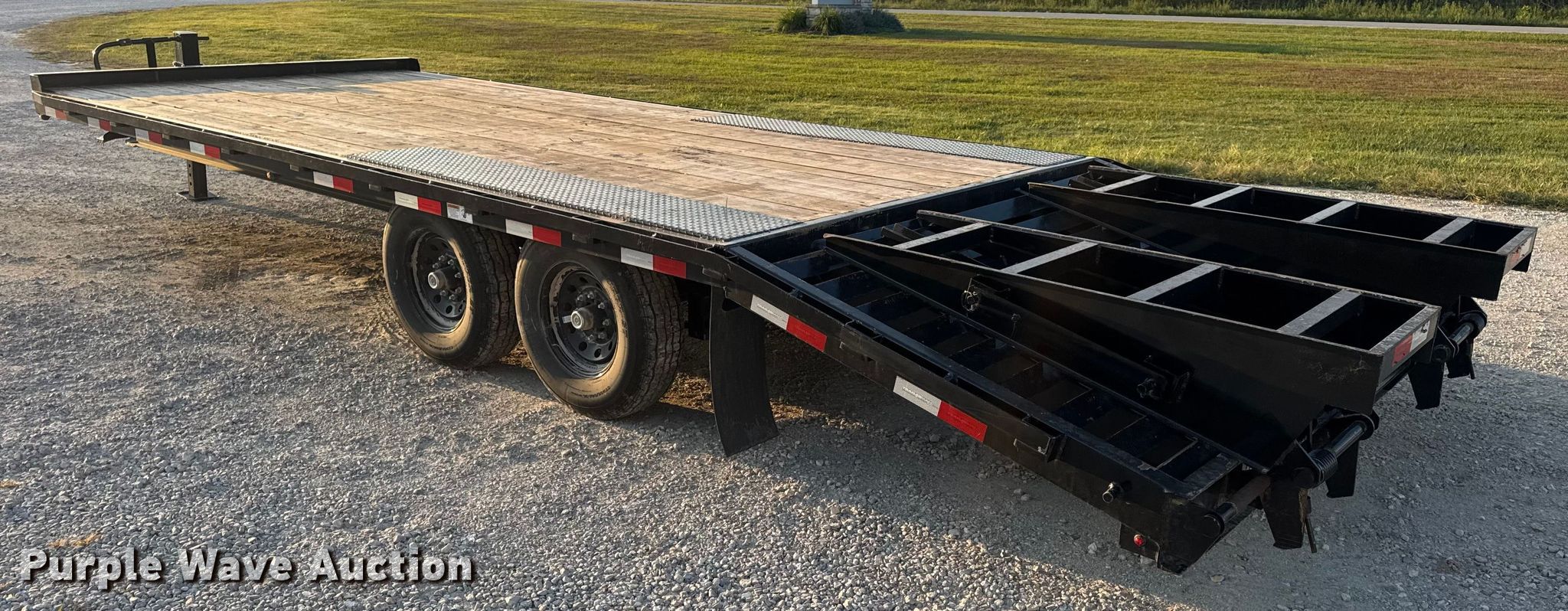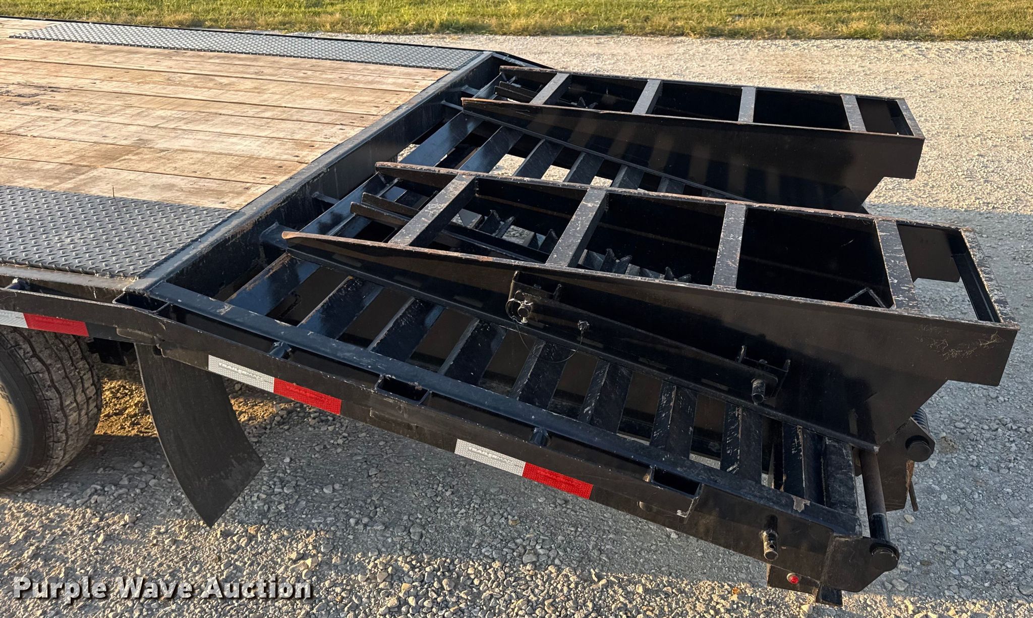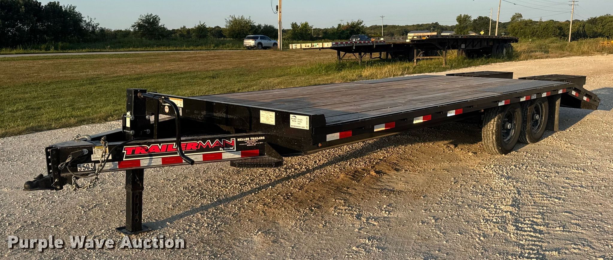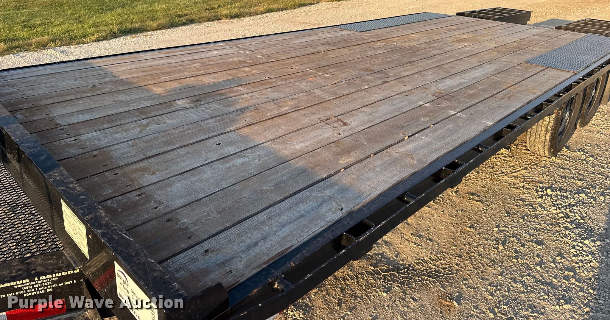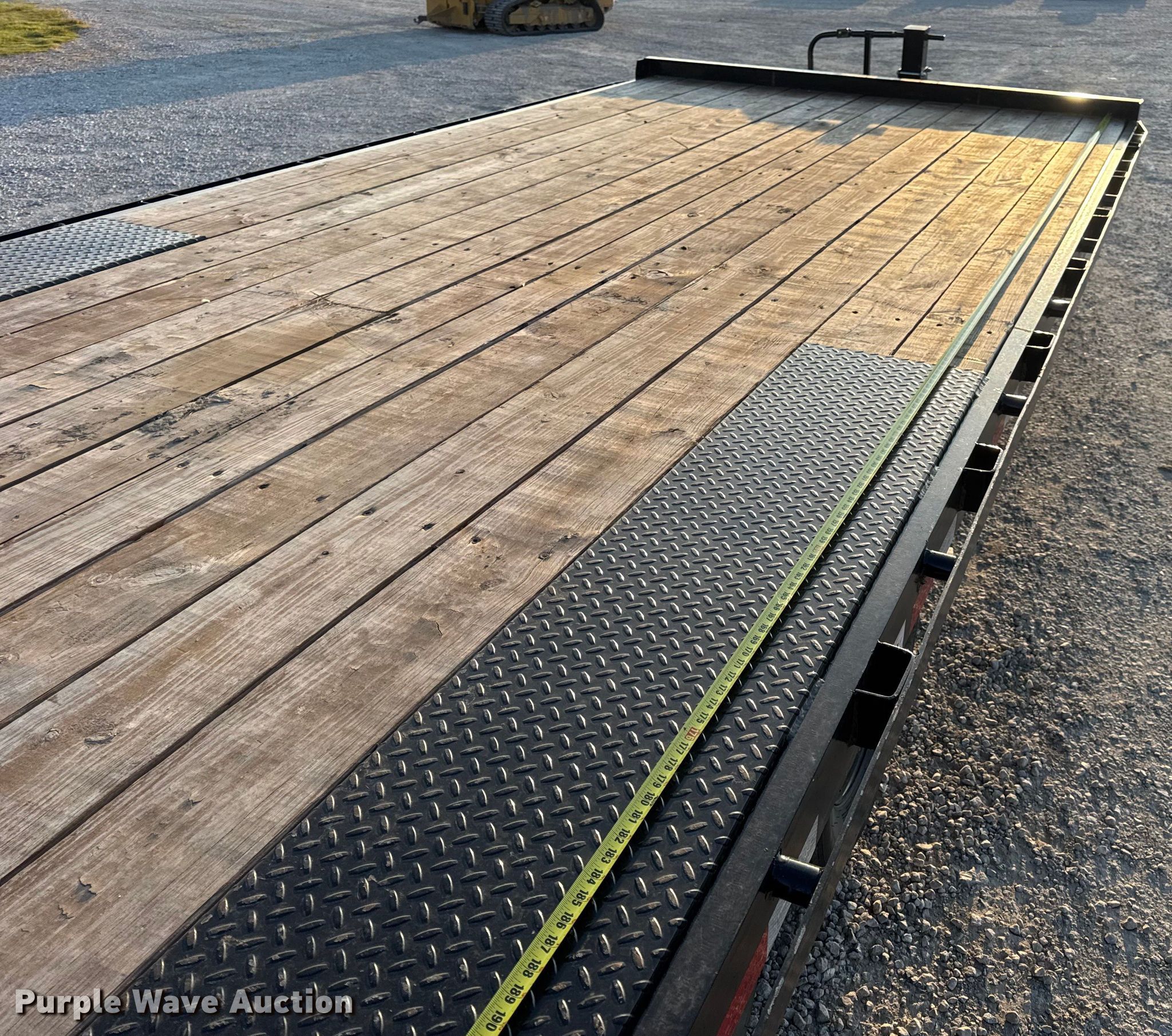 2023 Trailerman T102185CD-B-150 equipment trailer. VIN: 5JWLB2323PL108745, Unit #: 5505. Dimensions Overall Length: 29', Width: 101", Deck Length: 18', Width: 96", Tail length: 5', Ramps: Manual Length: 4' 11". Features Deck type: Steel, Wood. Chassis Ball hitch: 2 5/16", Landing gear: Single, Suspension: Spring, Brakes: Electric, Axles: Tandem, GVWR: 15,000 lbs, GAWR: 7,000 lbs. Tires Steel wheels, Size: ST235/80R16. Missouri title. Title has a lien that will be released following the close of the auction. Title distribution may be delayed up to 30 days from verification of funds. Hardy Holding Group. Boonville, MO 65233