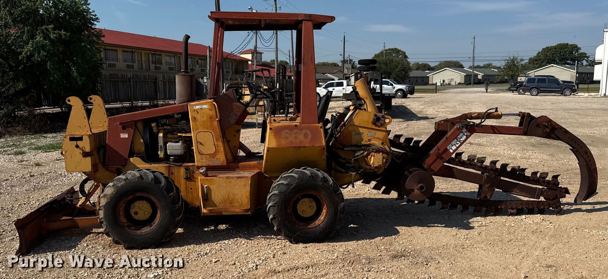 Purple Wave is selling a used Trencher or Rock Saw in Texas. This item is a 1992 Case 660 trencher with the following: Hours: Unknown, Serial: JAF0104406