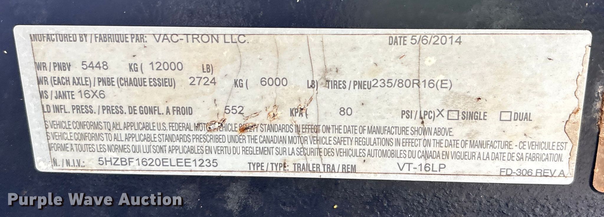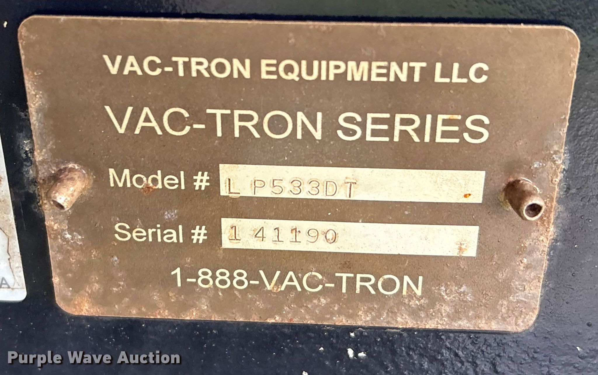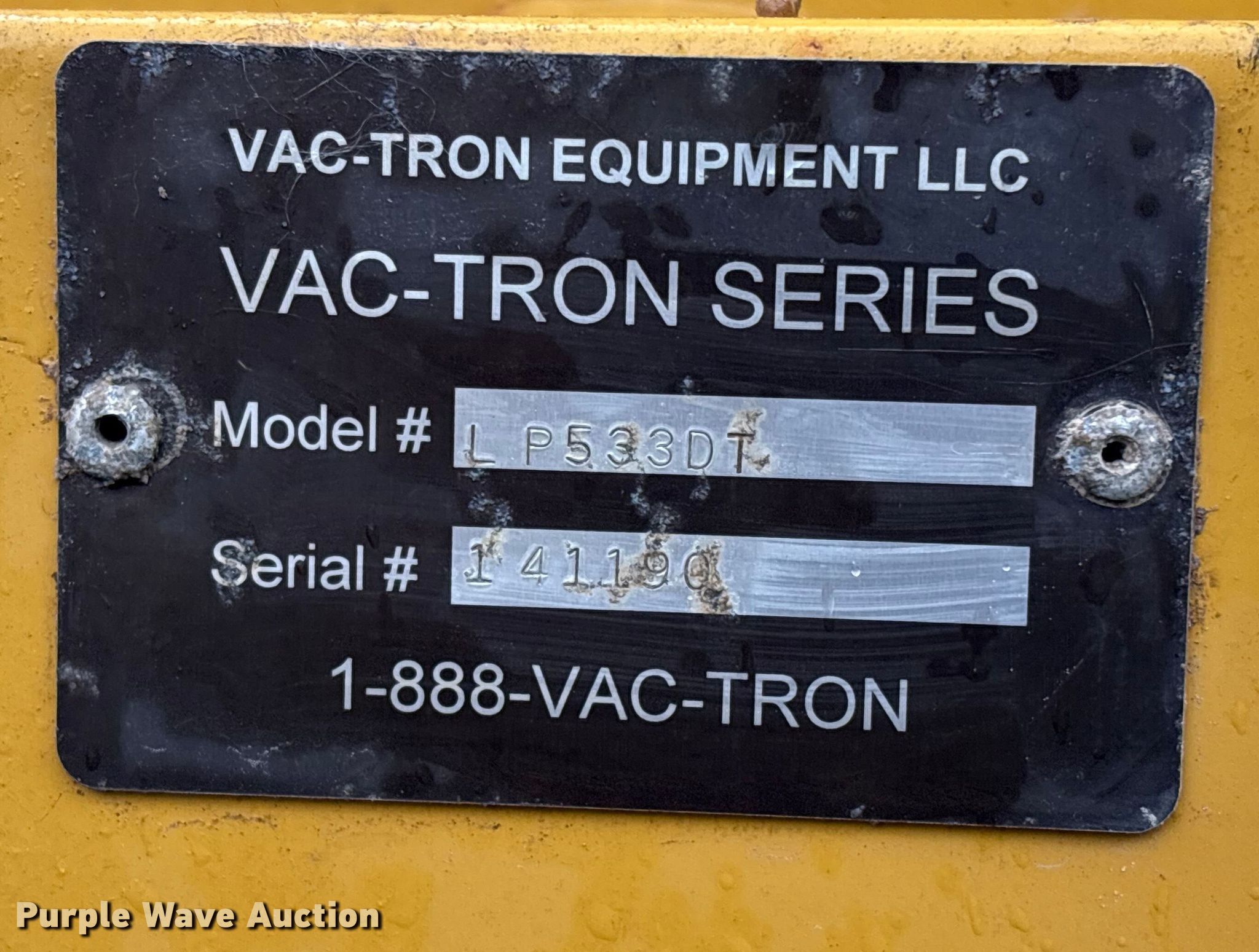 Purple Wave is selling a used Vacuum Excavator in Texas. This item is a 2014 Vac-Tron LP533DT vacuum excavator with the following: Hours: 1,931 on meter, VIN: 5HZBF1620ELEE1235, Serial: 141190