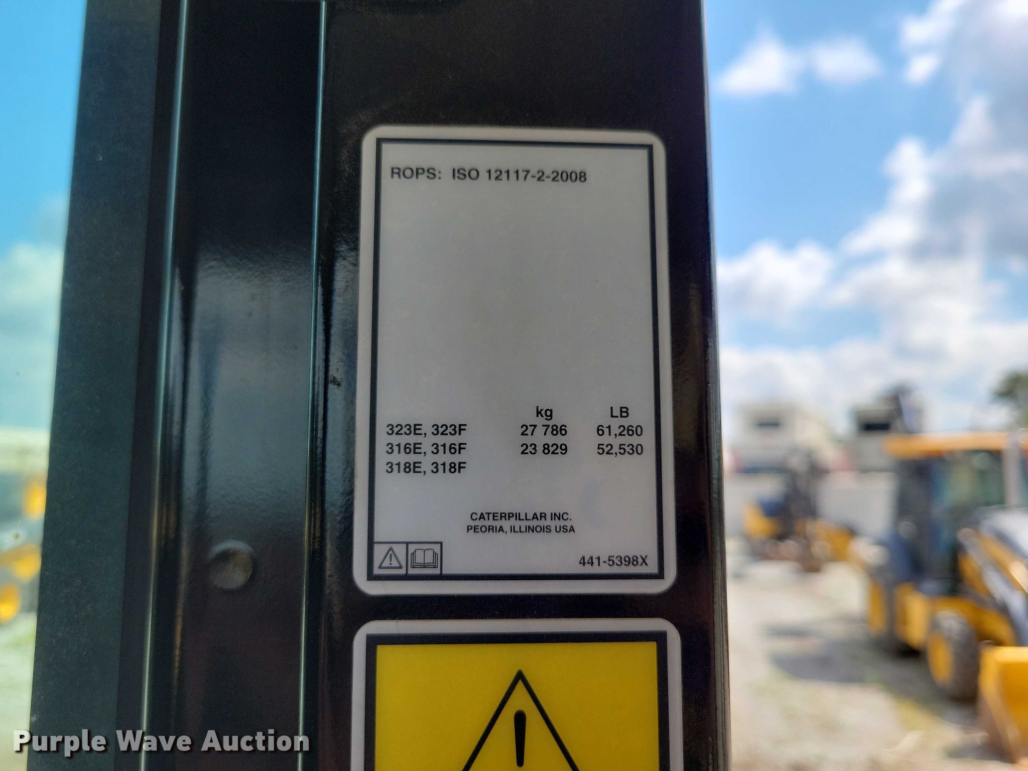 2015 Caterpillar 323FL excavator. Hours: 2,895 on meter, Serial: YEJ00298. Engine Caterpillar C7.1 Acert, Serial: D8T03392, Displacement: 7.1L, Cylinders: 6, Fuel type: Diesel. Transmission Hydrostatic, Two speed travel. Operators station Enclosed cab, AC, Heat, Backup camera, Pattern changer. Features Counter weights, Boom Standard, Stick Stick length: 9' 8", Bucket Caterpillar, Width: 44", Teeth: 5. Tracks Width: 31", Steel, Grouser pads: Triple. Notes Auxiliary hydraulic lines disconnected, possible damage, Intermittent hydraulic lockout control lever issues, sticks. Murphy Tractor & Equipment Co. Omaha, NE 68138