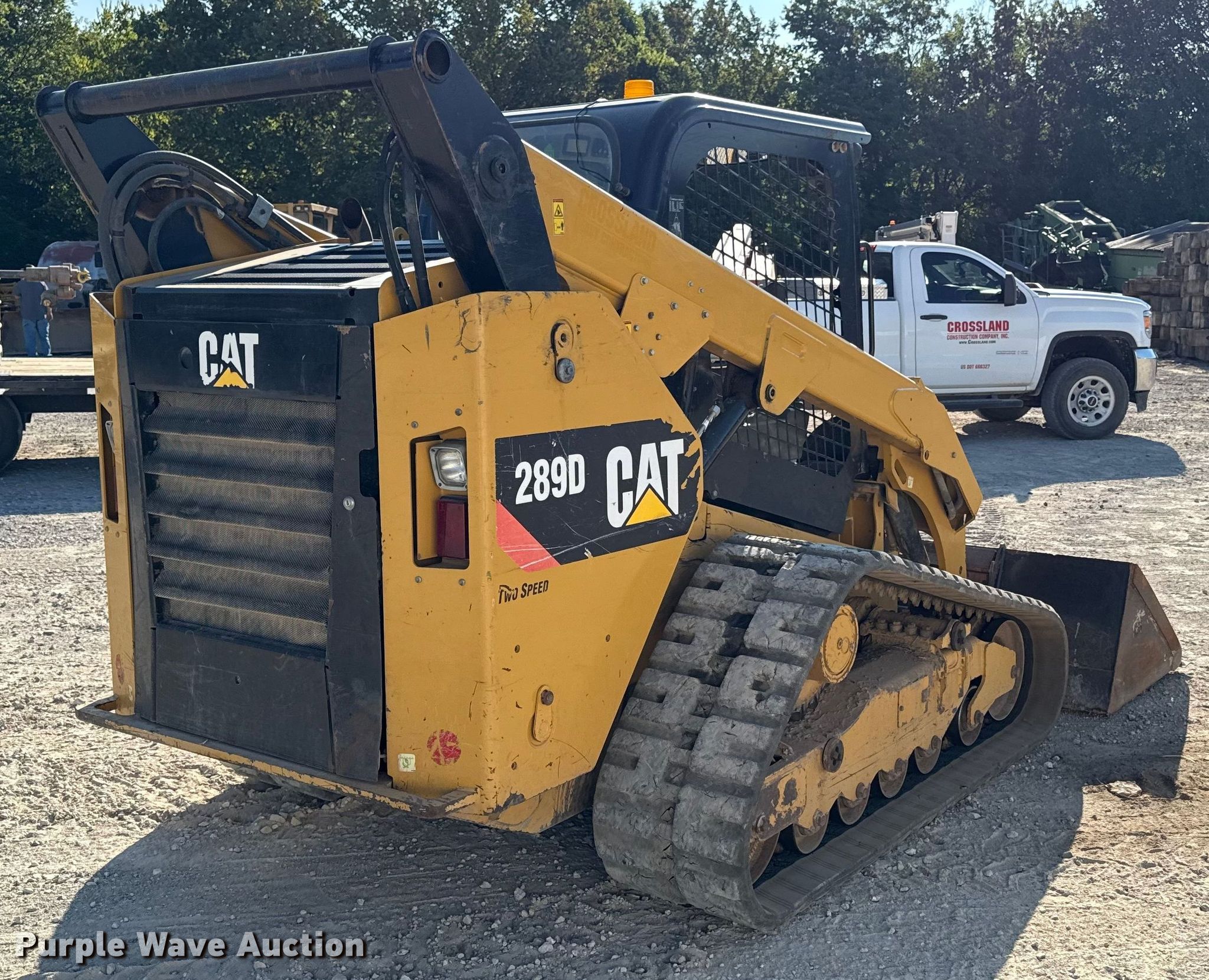 2017 Caterpillar 289D tracked skid steer loader. Hours: 5,675 on meter, Serial: CAT0289DVTAW08327. Engine Caterpillar C3.3B, Displacement: 3.3L, Cylinders: 4, Fuel type: Diesel. Transmission Hydrostatic, Two speed travel. Operators station Bucket control: Hand, Electronic Monitoring System panel. Features Auxiliary hydraulics, Auxiliary electrical outlet, Quick coupler: Manual, Bucket Width: 80", Low profile, Cutting edge: Bolt-on. Tracks Width: 17.5". Crossland Heavy Contractors Inc.. Columbus, KS 66725