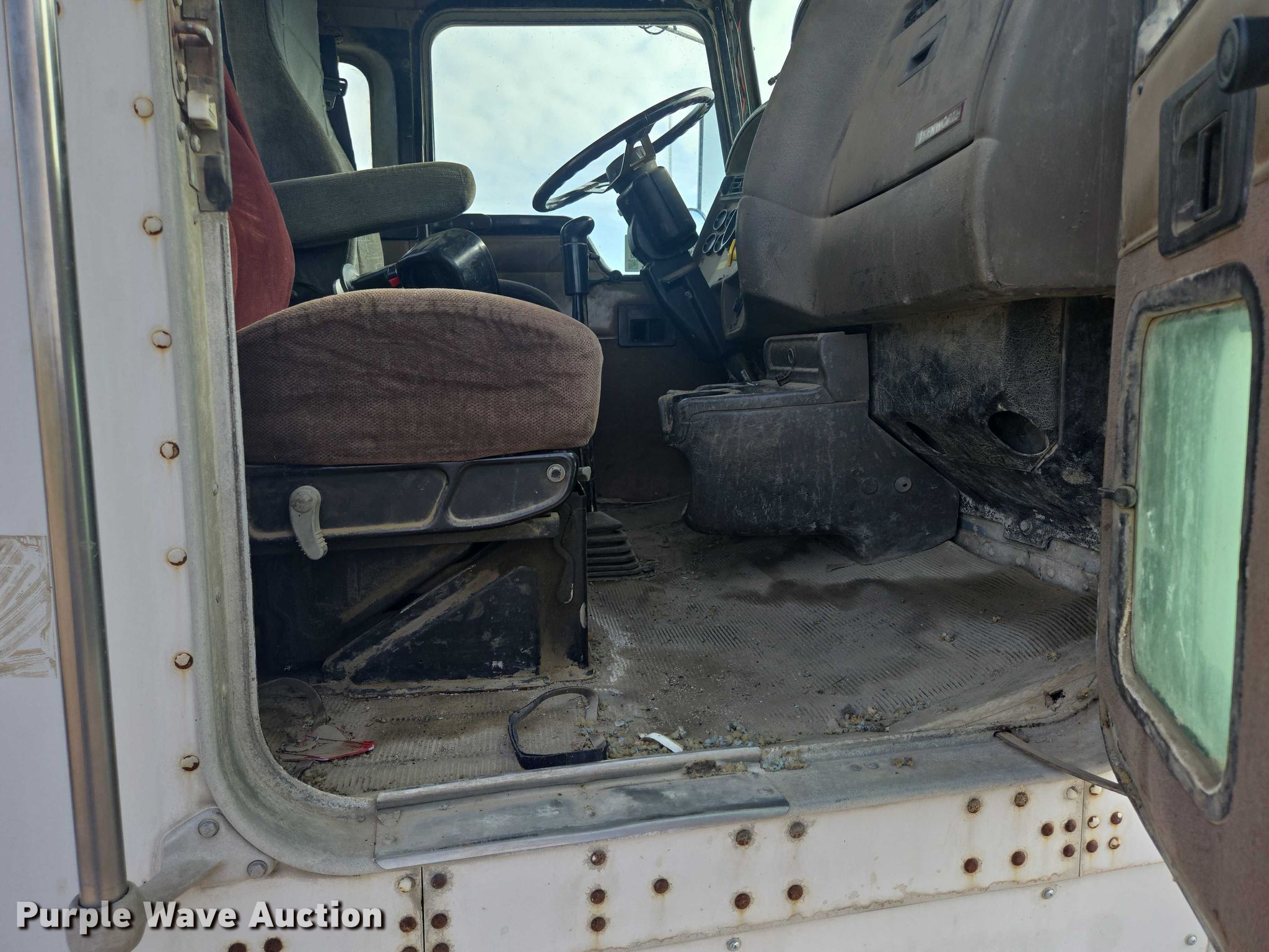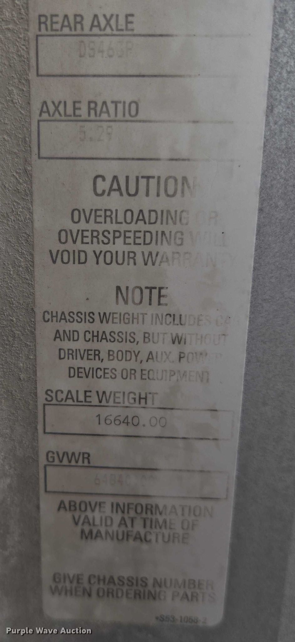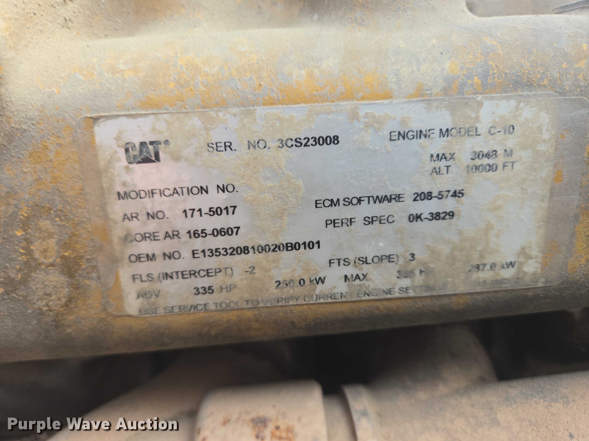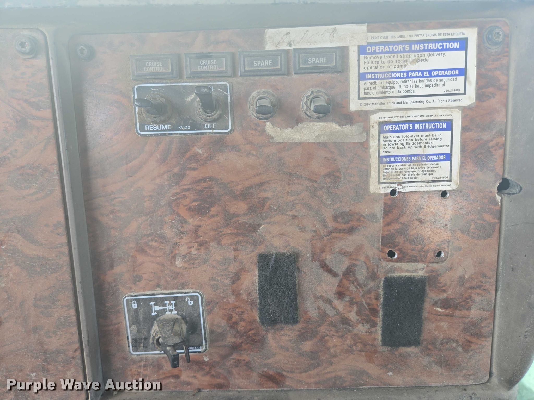 2002 Kenworth W900 ready mix truck. Miles: 32,329 on odometer, Hours: 9,849 on meter, VIN: 1NKWLT0X92J888467, Unit #: 2721. Engine Caterpillar C-10, Serial: 3CS23008, Cylinders: 6, Fuel type: Diesel, HP: 335. Transmission Eaton Fuller, Manual, Speed: 10. Chassis Axles: Triple, Tag axle Steerable, Differential lock: Inter-axle, Suspension: Spring over walking beam, Brakes: Air, PTO, GVWR: 77,740 lbs. Interior AC, Heat, Cruise control. Features Mixer McNeilus, Serial: 61178-18280, Capacity: 11 cu.yd., Discharge: Rear, In-cab controls, Rear drum controls, Water tank capacity: 125 gallons, Chute Extensions: 3, Chute type: Steel.. Tires Front: 425/65R22.5, Rear: 11R22.5, Lift axle: 315/80R22.5. South Dakota title. Title distribution may be delayed up to 14 days from verification of funds. Consolidated Ready Mix Inc.. Bellingham, MN 56212
