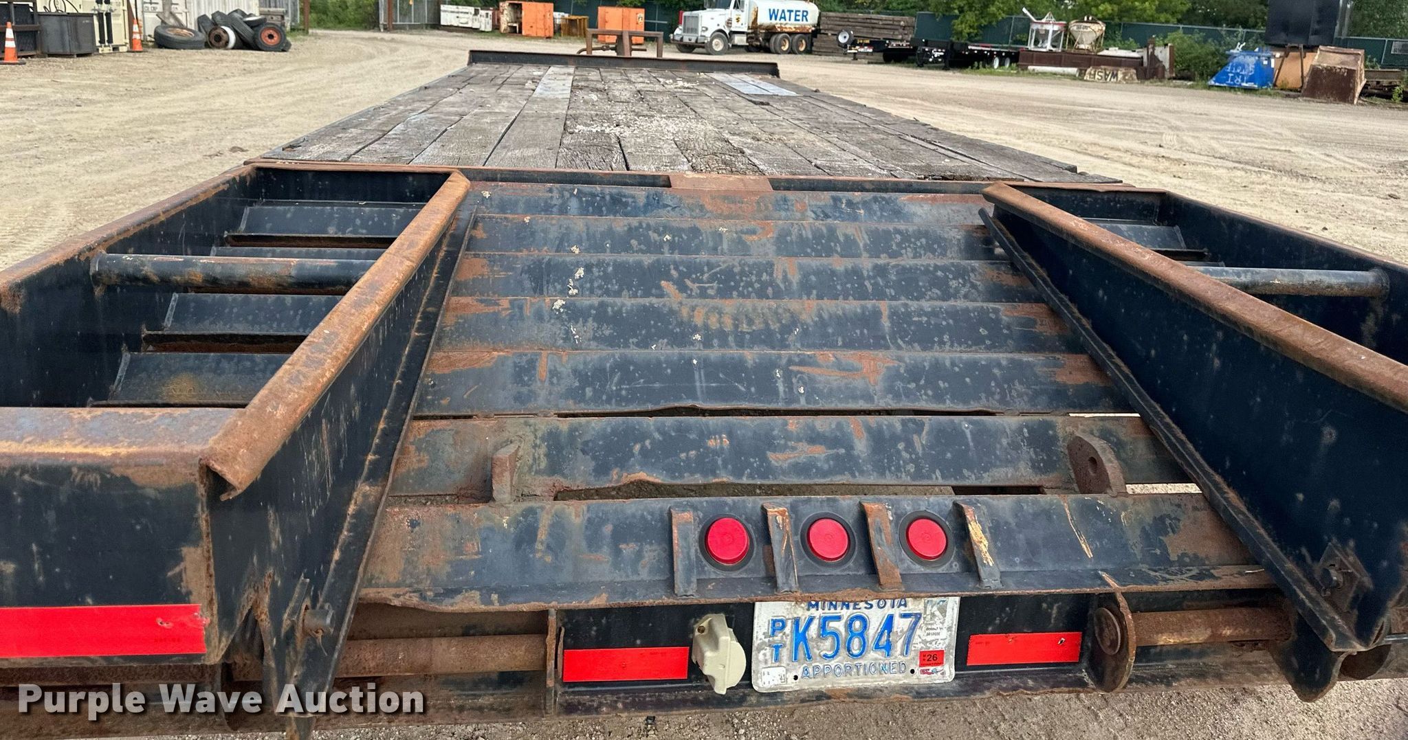 2000 Felling equipment trailer. VIN: 5FTDA2420Y1014935. Dimensions Overall Length: 29' 7", Width: 102", Deck Length: 19', Width: 102", Deck height: 3' 2", Ramps: Manual Length: 4' 7". Features Deck type: Wood. Chassis Hitch: Pintle, Landing gear: Single, Suspension: Spring, Brakes: Air, Axles: Tandem. Tires Steel wheels, Size: 10R17.5. Minnesota title. Title distribution may be delayed up to 30 days from verification of funds. Tri State Drilling. Plymouth, MN 55446