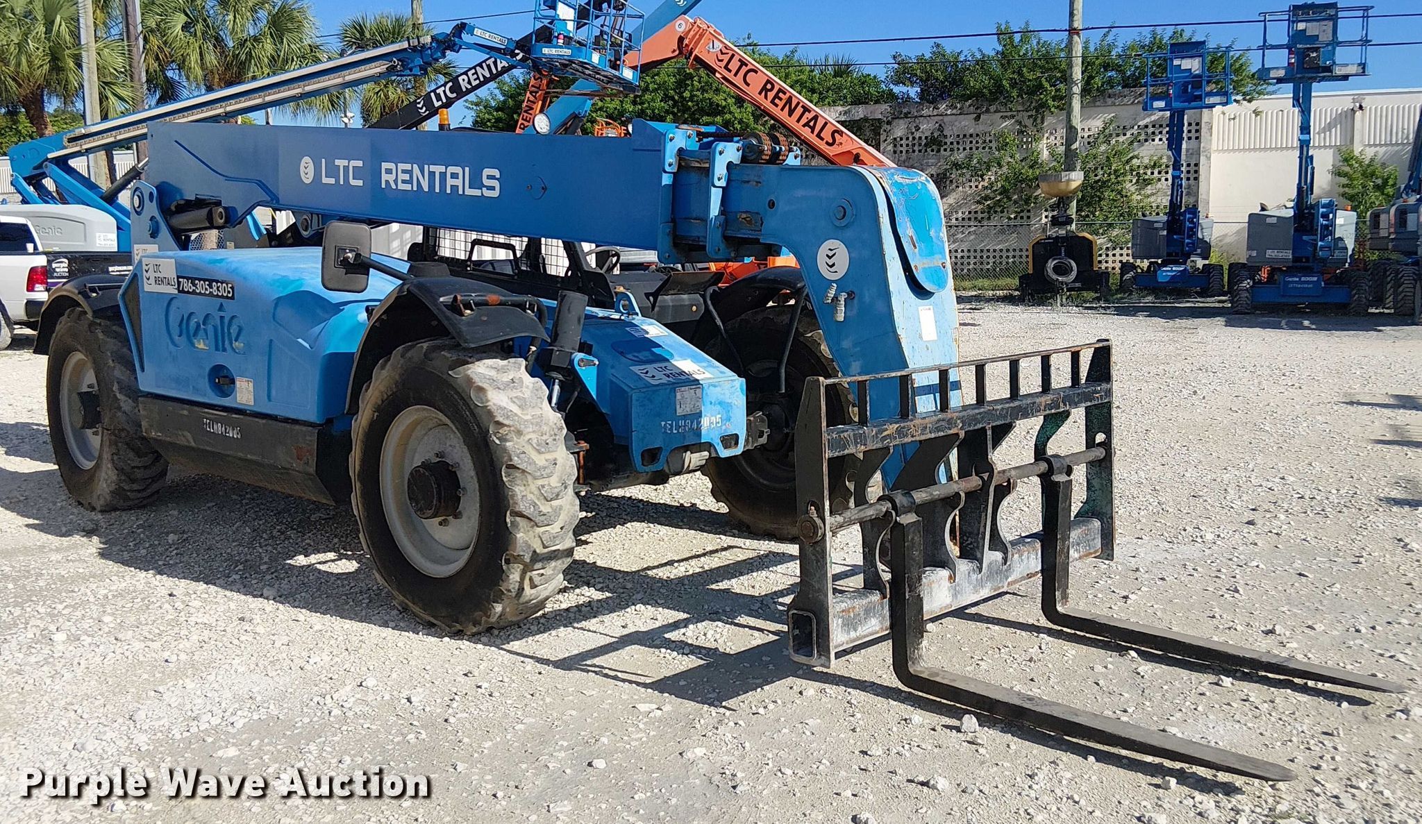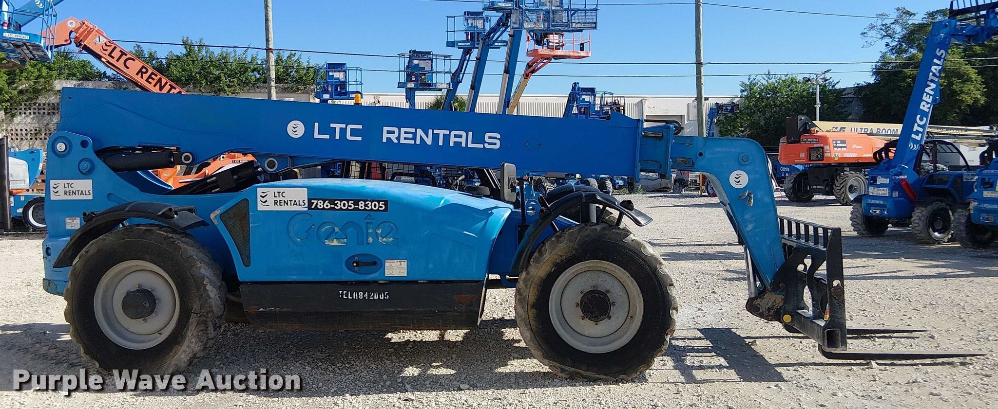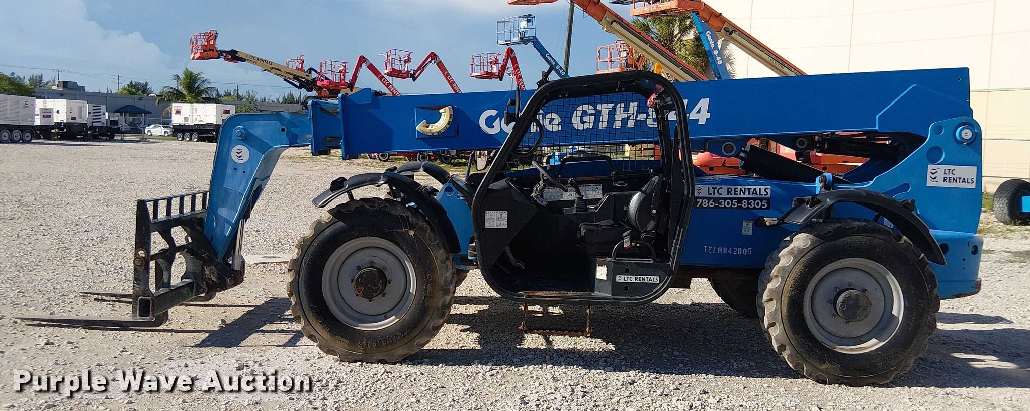 Purple Wave is selling a used Telehandler in Florida. This item is a 2015 Genie GTH844 telehandler with the following: Hours: 1,040 on meter, Serial: GTH0815-21055, Unit #: TELH842D05