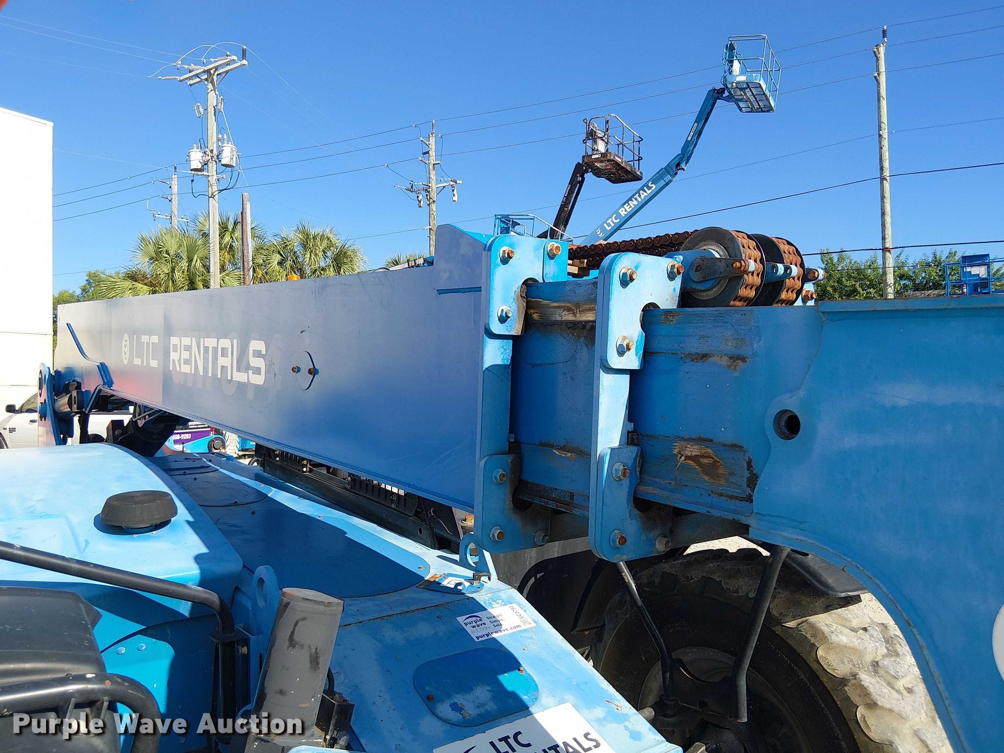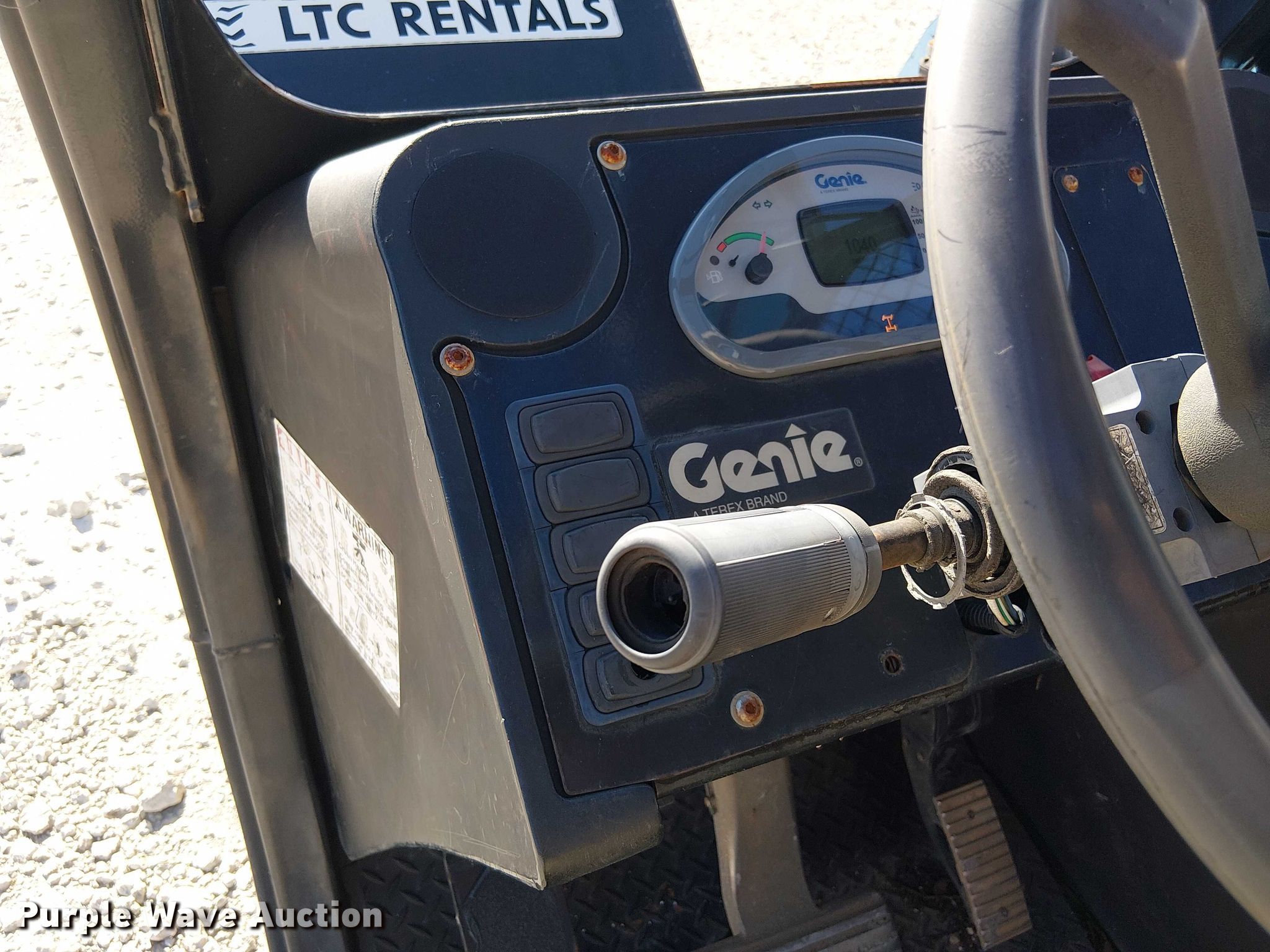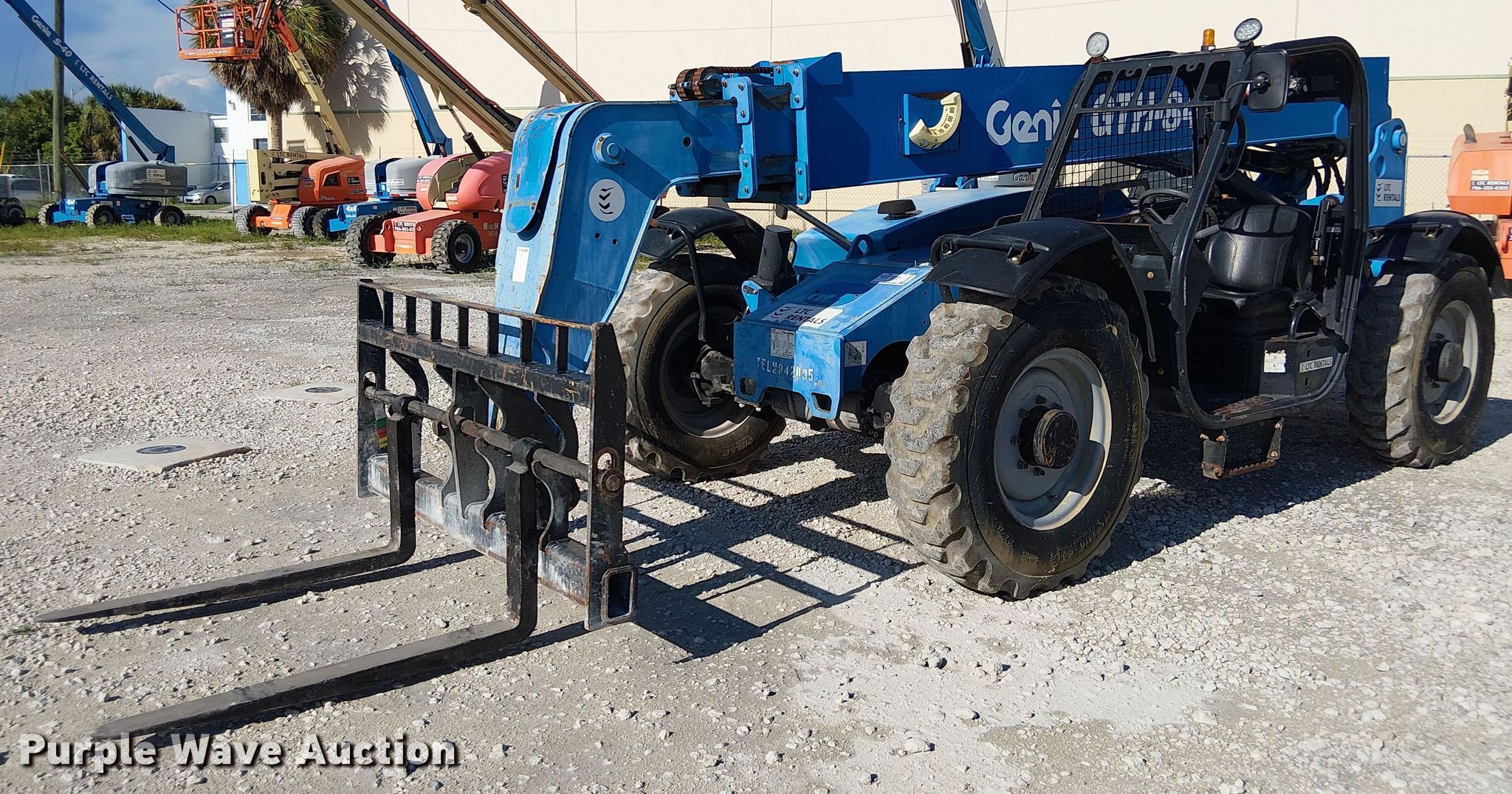 Purple Wave is selling a used Telehandler in Florida. This item is a 2015 Genie GTH844 telehandler with the following: Hours: 1,040 on meter, Serial: GTH0815-21055, Unit #: TELH842D05
