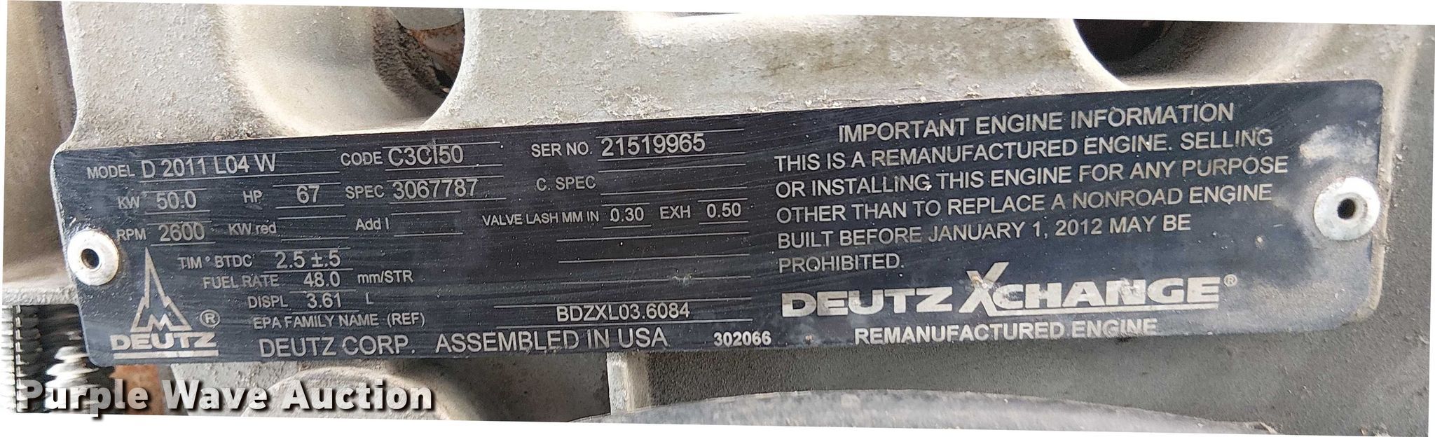 2012 Genie GTH-5519 telehandler. Hours: 79 on meter, Serial: 23279. Engine Deutz D 2011 L04W, Serial: 21519965, Displacement: 3.61L, Cylinders: 4, Fuel type: Diesel, HP: 67. Transmission Powershift, Four wheel drive. Operators station Canopy, Steering: Crab, Four wheel. Features Maximum lift capacity: 5,500 lbs, Maximum lift height: 20', Boom stages: 2, Fork length: 48", Auxiliary hydraulics, Tilt carriage, Quick attach: Manual. Tires Size: 305/70D16.5, Foam filled. LTC Rentals. Miami, FL 33169
