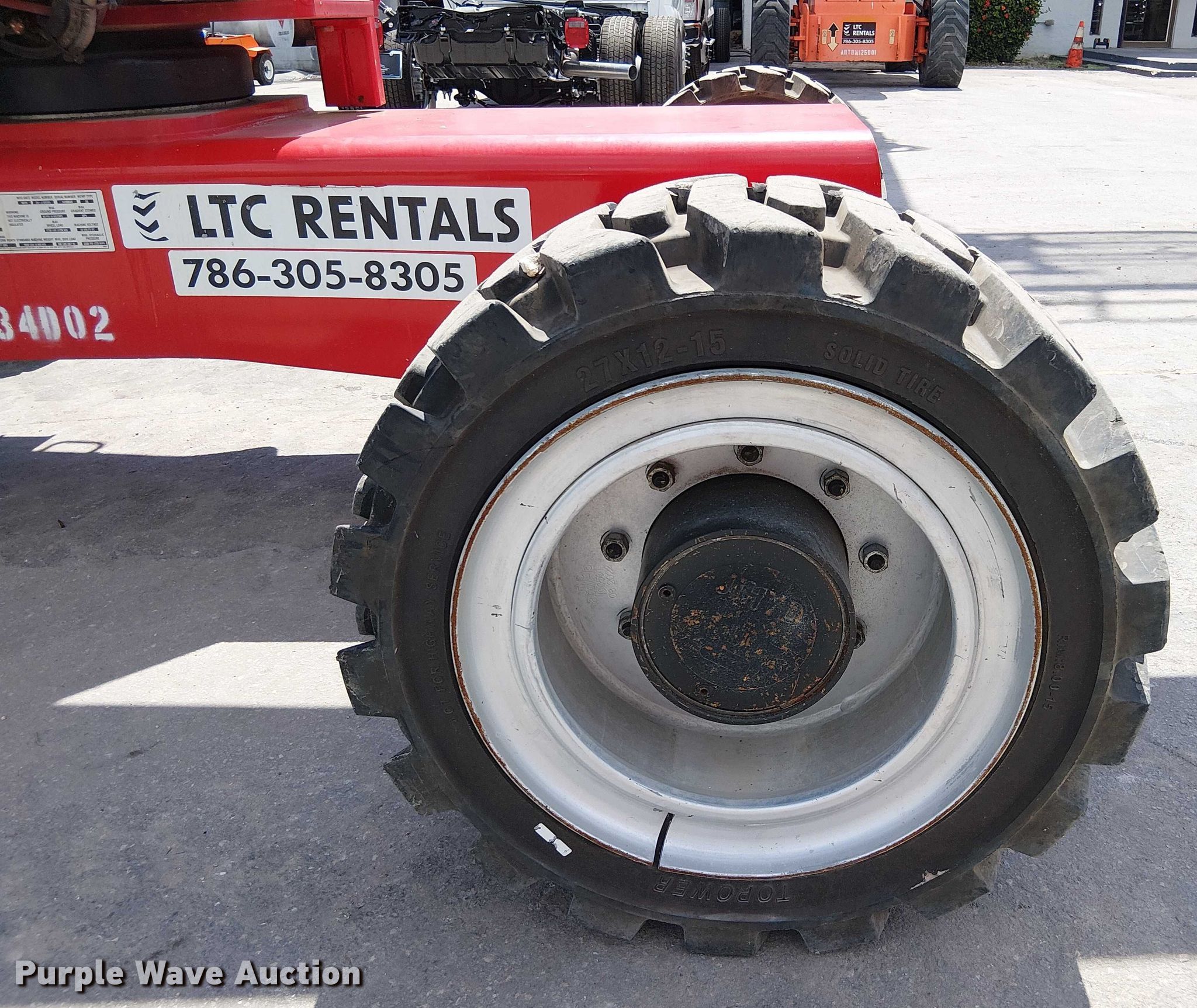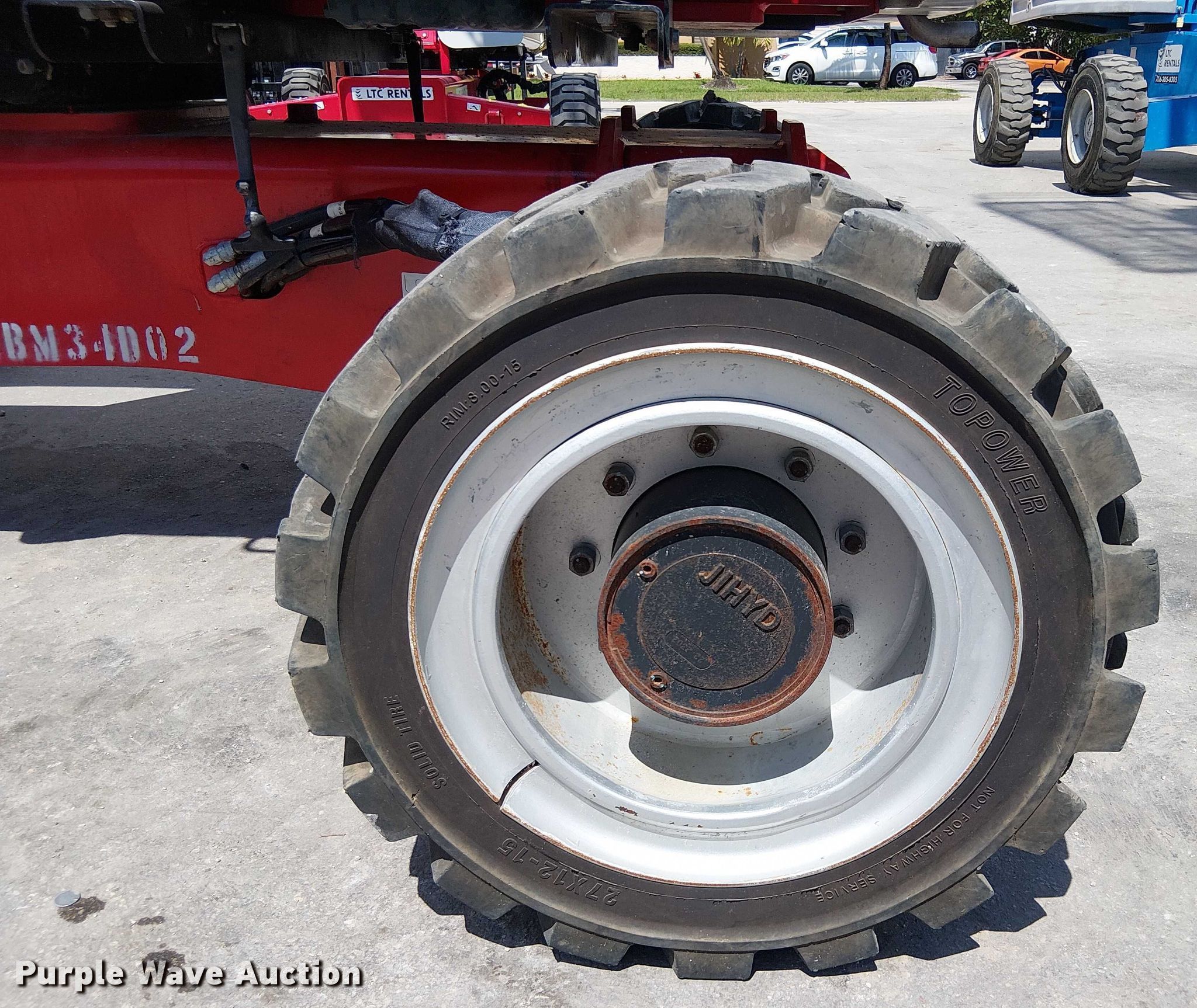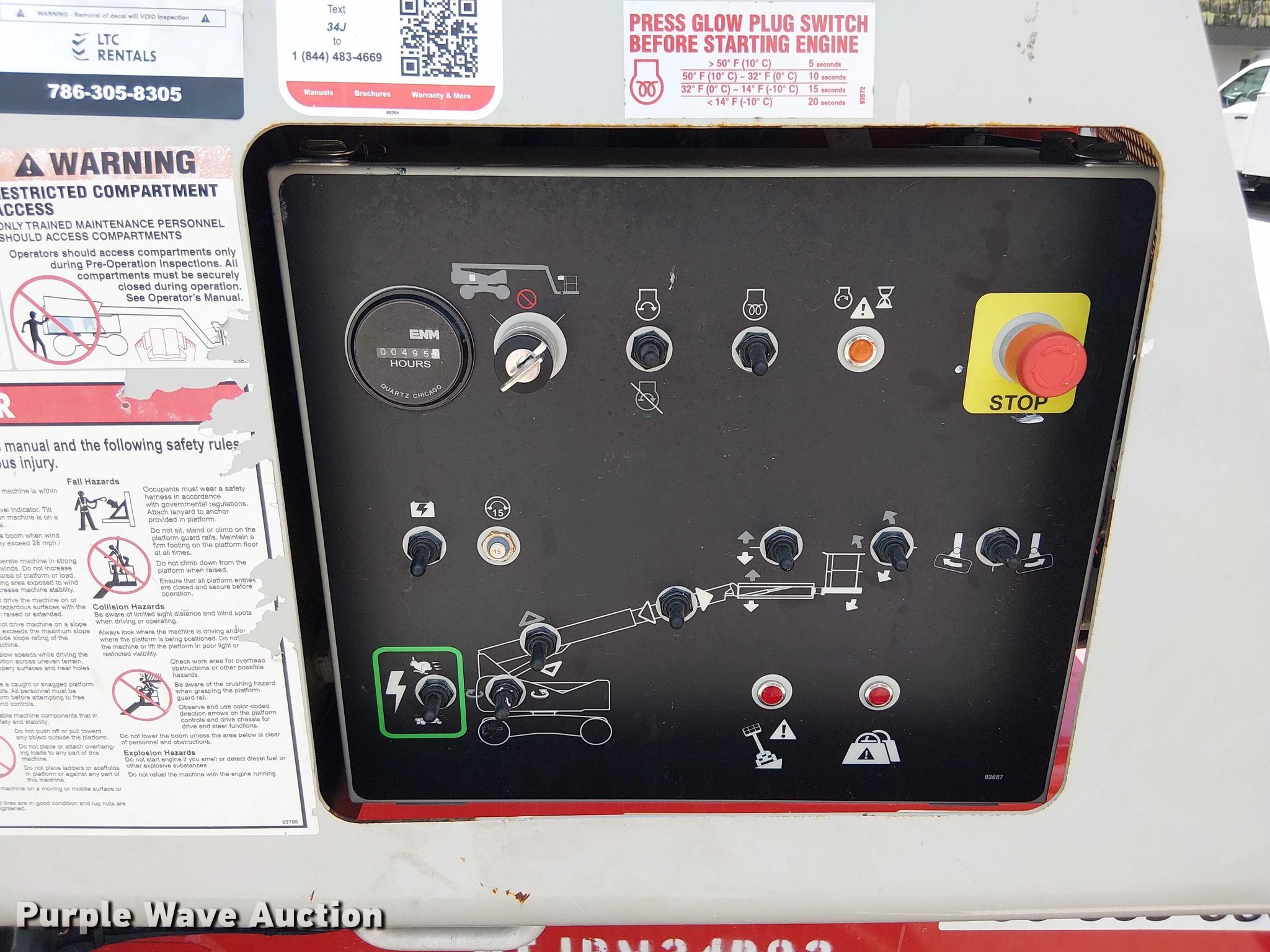 2023 MEC 34-J boom lift. Hours: 496 on meter, Serial: 14100649. Engine Kubota, Cylinders: 3, Fuel type: Gas. Features Boom type: Telescopic, Maximum lift capacity: 500 lbs, Maximum reach length: 26', Maximum lift height: 34', Hydraulic extendable jib, Platform: 40" L x 72" W, AC power outlet, Controls: Platform, Ground, Platform rotation: Hydraulic. Tires Tire size: 27x12-15, Solid. LTC Rentals. Miami, FL 33169