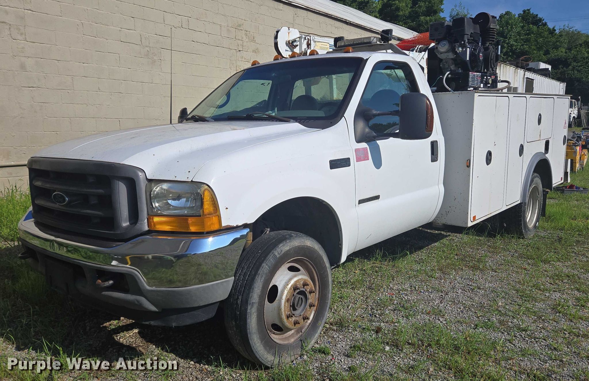 Purple Wave is selling a used Service Truck in Kentucky. This item is a 2001 Ford F450 Super Duty utility / service truck with the following: Miles: 317,354 on odometer, VIN: 1FDXF47F11EB47104