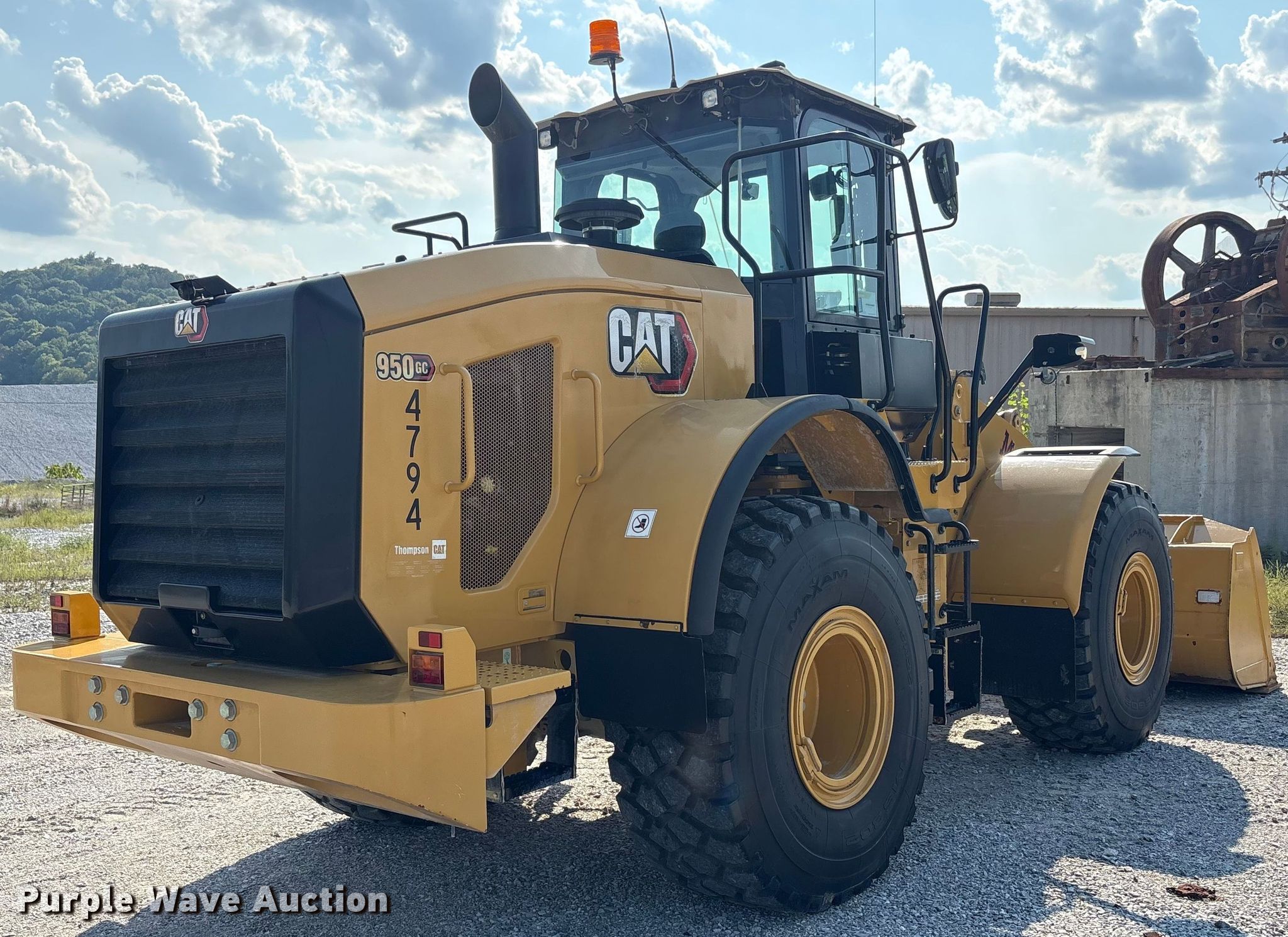 2022 Caterpillar 950GC wheel loader. Hours: 1,053 on meter, Serial: CAT00950VM5T04794. Engine Caterpillar C7.1, Cylinders: 6, Fuel type: Diesel. Transmission Powershift, 4F - 4R. Operators station Enclosed cab, AC, Heat, Bucket controls: Joystick. Features Bucket Caterpillar, Capacity: 4.5 cu.yd., Width: 115", Cutting edge: Bolt-on, Scale Pfreundt. Tires Size: 23.5R25. Notes Additional filters. Carthage, TN 37030