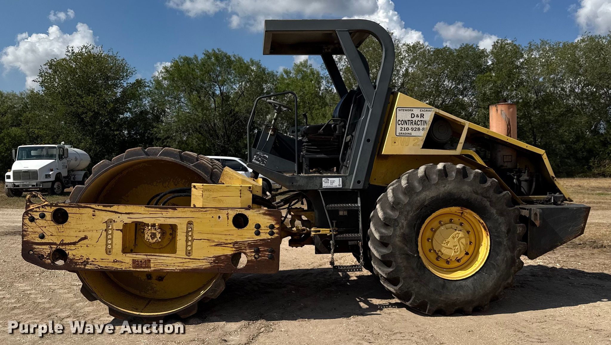 1999 Bomag BW 213 PDH single drum vibratory roller. Hours: 5,351 on meter, Serial: 101580241008. Engine Cummins, Cylinders: 6, Fuel type: Diesel, kW: 94. Transmission Hydrostatic. Operators station OROPS. Features Drum Drum type: Padfoot, Vibratory system: Single, Width: 84", Diameter: 65", Drum scrapers. Tires Size: 23.1-26. Notes Three speed travel switch issues, disconnected. D & R Contracting, LLC Retirement Open Inspection October 6, 2025. 14975 Flatten Road. San Antonio, TX 78223