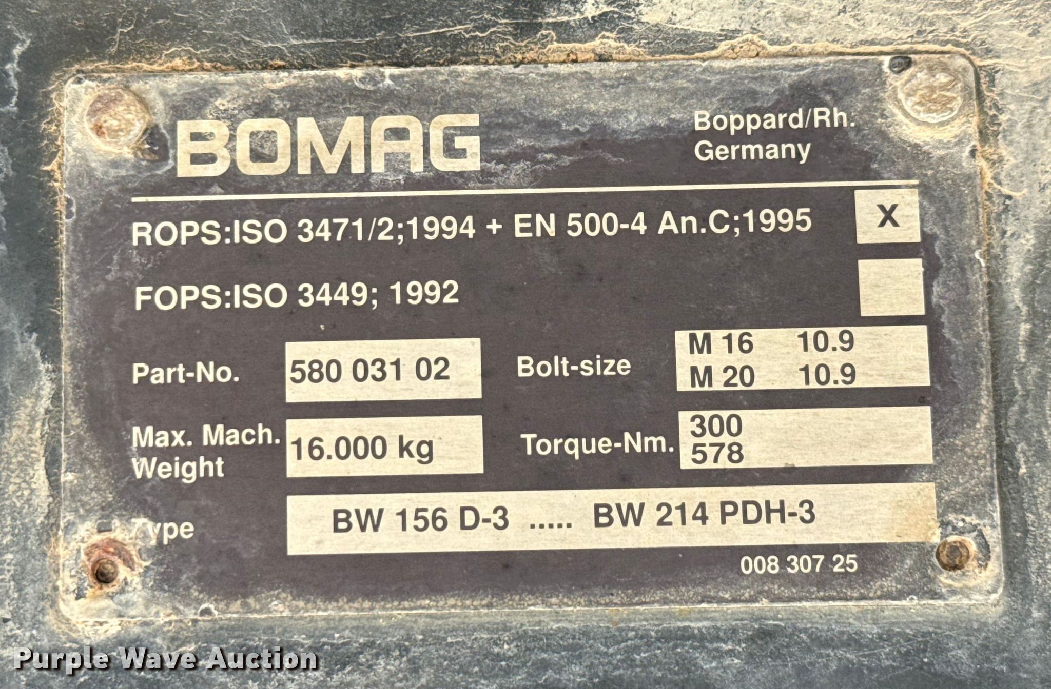 1999 Bomag BW 213 PDH single drum vibratory roller has sold in San Antonio, Texas for $22550. Item ED5860 sold on October 9th, 2025.