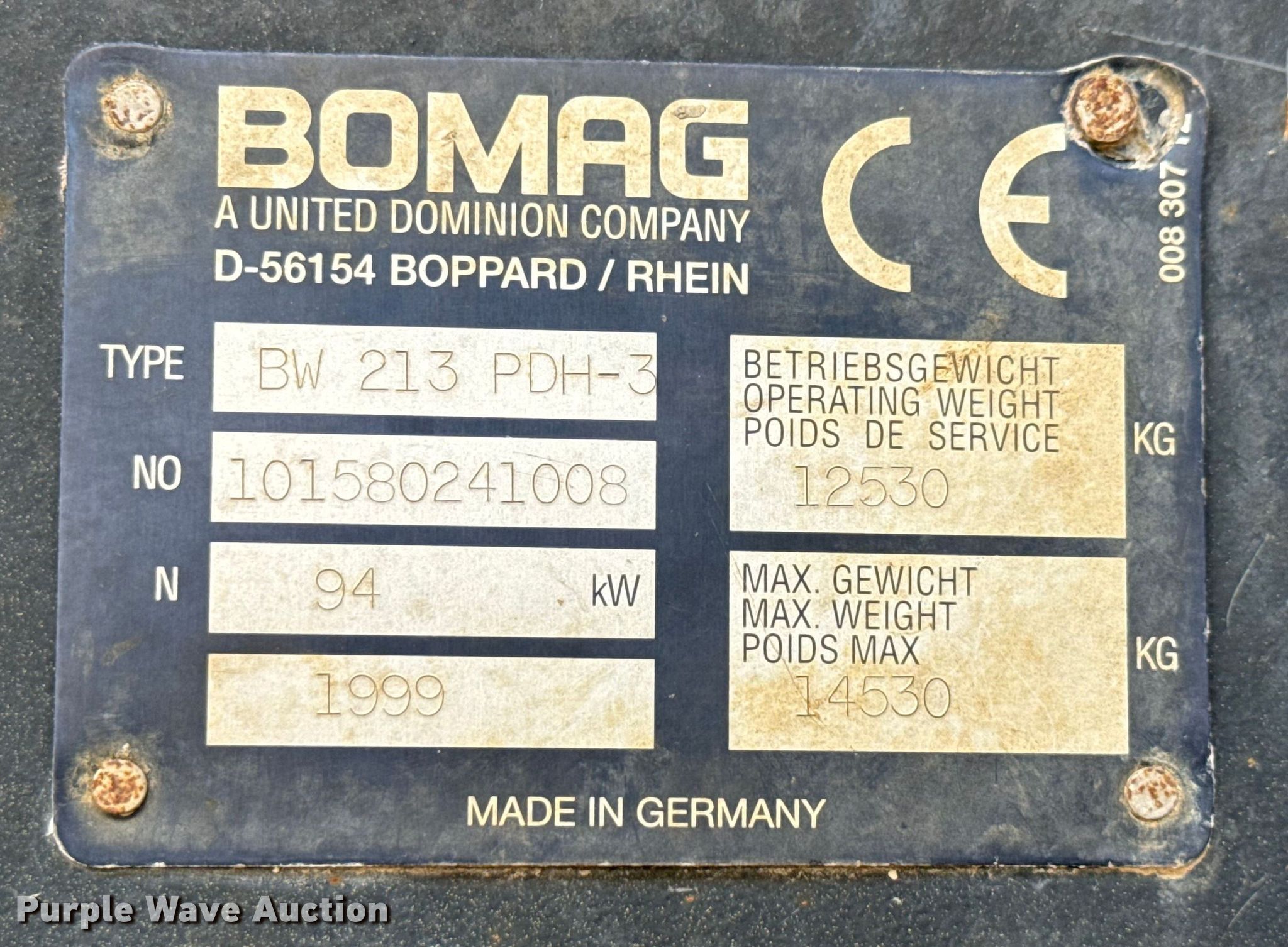 1999 Bomag BW 213 PDH single drum vibratory roller