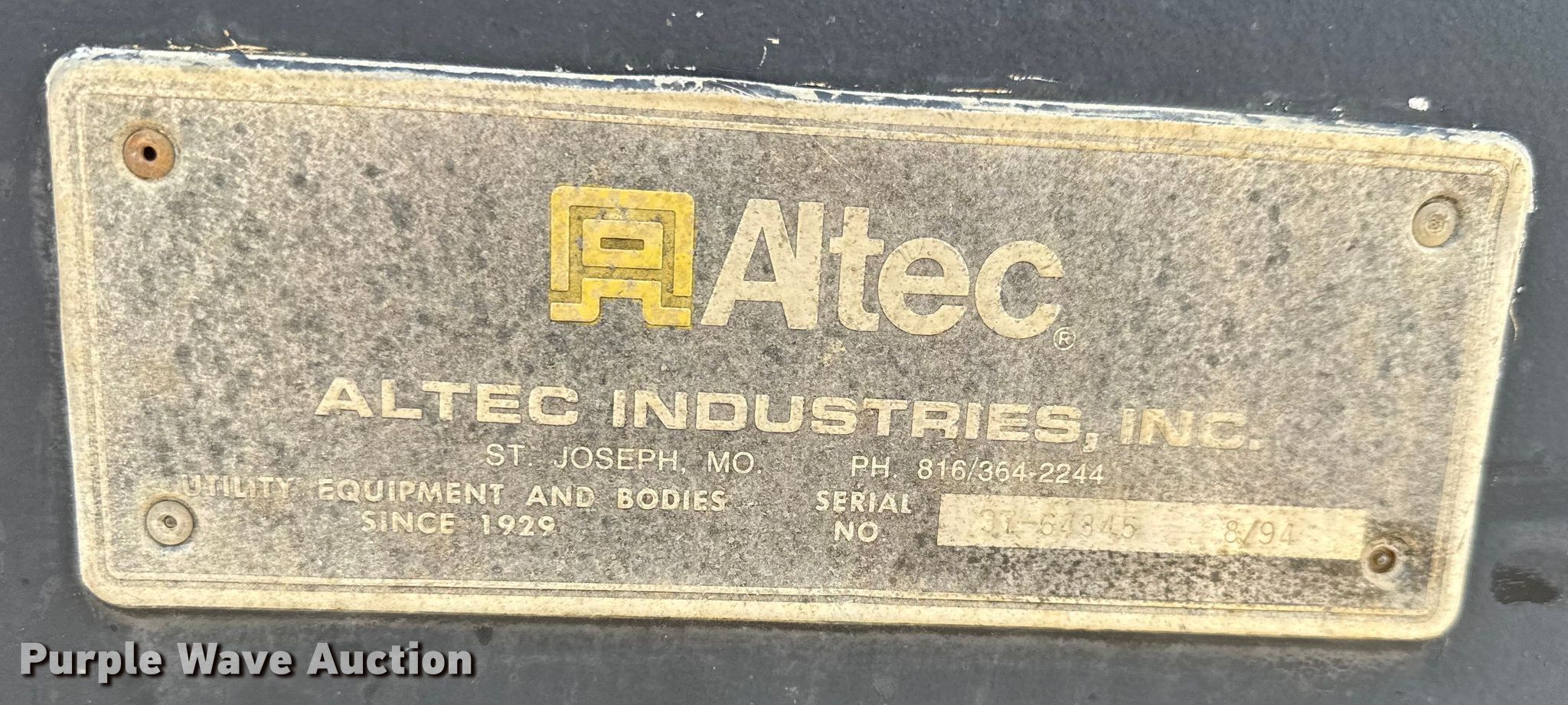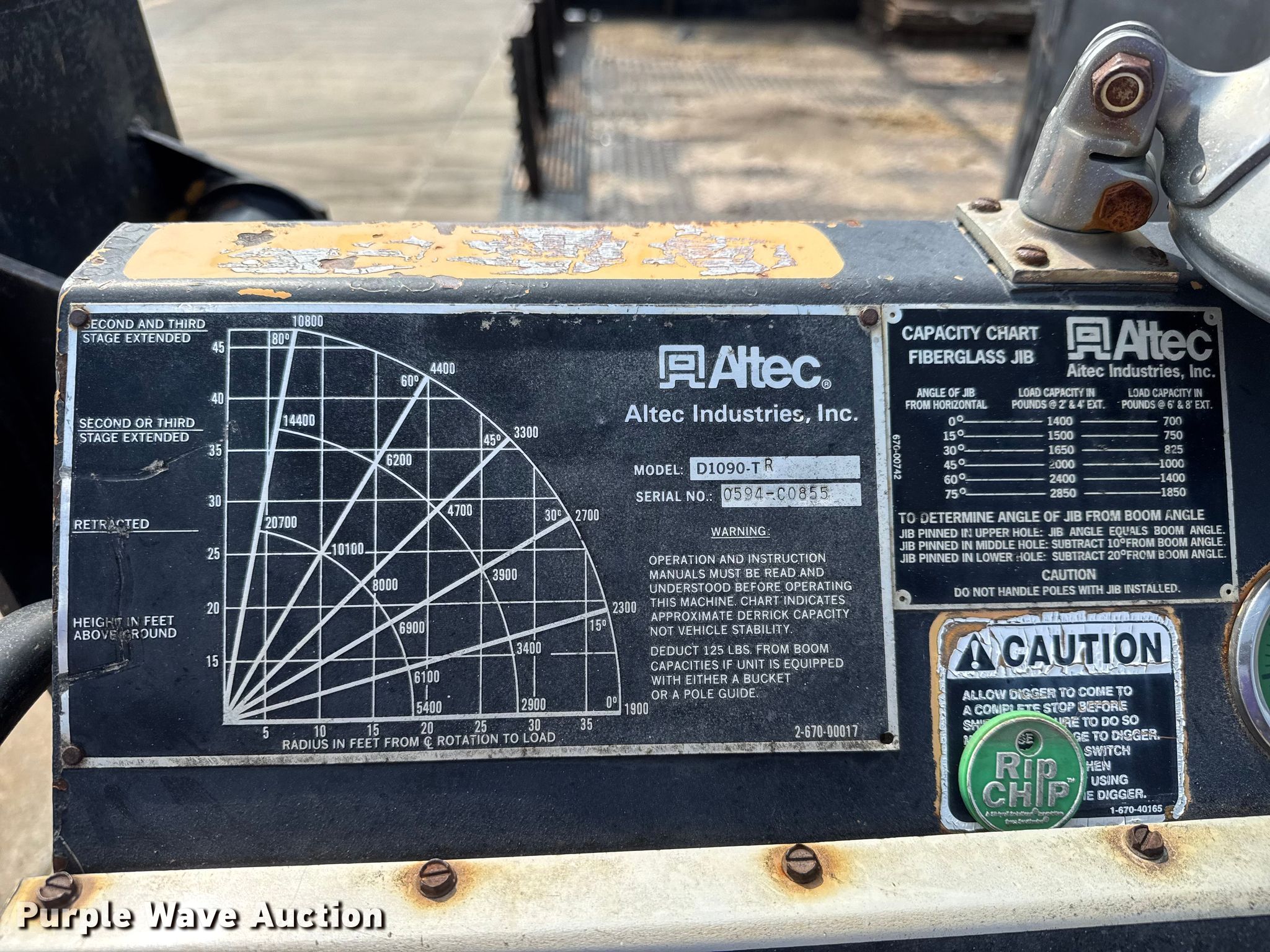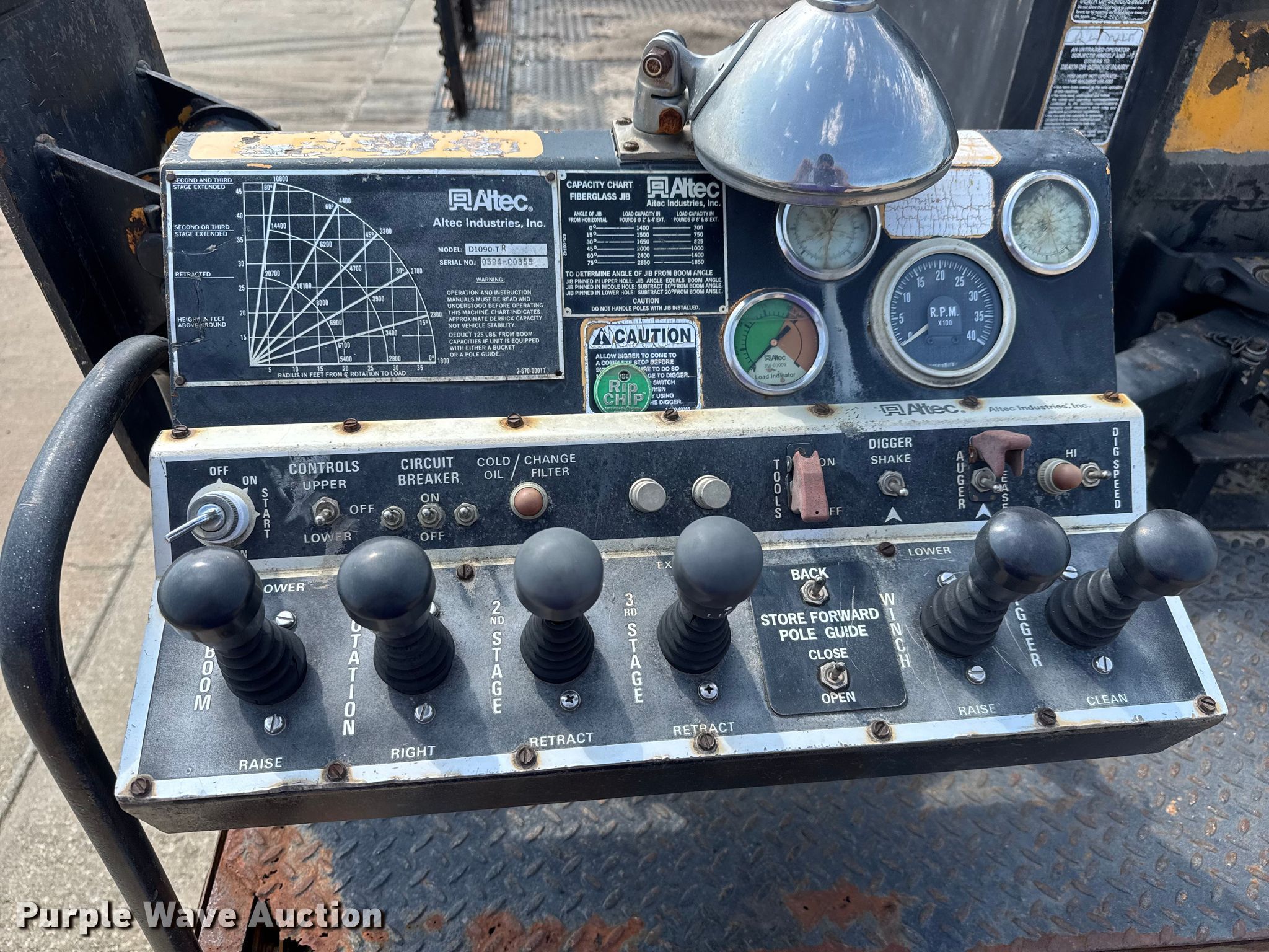 1995 International 4900 digger derrick truck. Miles: 61,426 on odometer, Hours: 8,750 on meter, VIN: 1HTSHAAR9SH604187. Engine Cylinders: 6, Fuel type: Diesel. Transmission Eaton Fuller, Manual, Speed: 10. Chassis Axles: Tandem, Suspension: Spring over walking beam, Brakes: Air, PTO, Wheelbase: 194". Interior Heat. Features Bed Flatbed, Altec, Serial: 37-64345, Length: 16' 6", Width: 96", Boom Altec D1090-TR, Serial: 0594-C0855, Maximum lift capacity: 20,700 lbs, Boom type: Telescopic, Boom controls Ground, Material handler, Pole guide, Auger. Tires Front: 12R22.5, Rear: 11R22.5. Notes Unknown operating condition of front winch. Kansas title. Title distribution may be delayed up to 14 days from verification of funds. Wichita, KS 67216