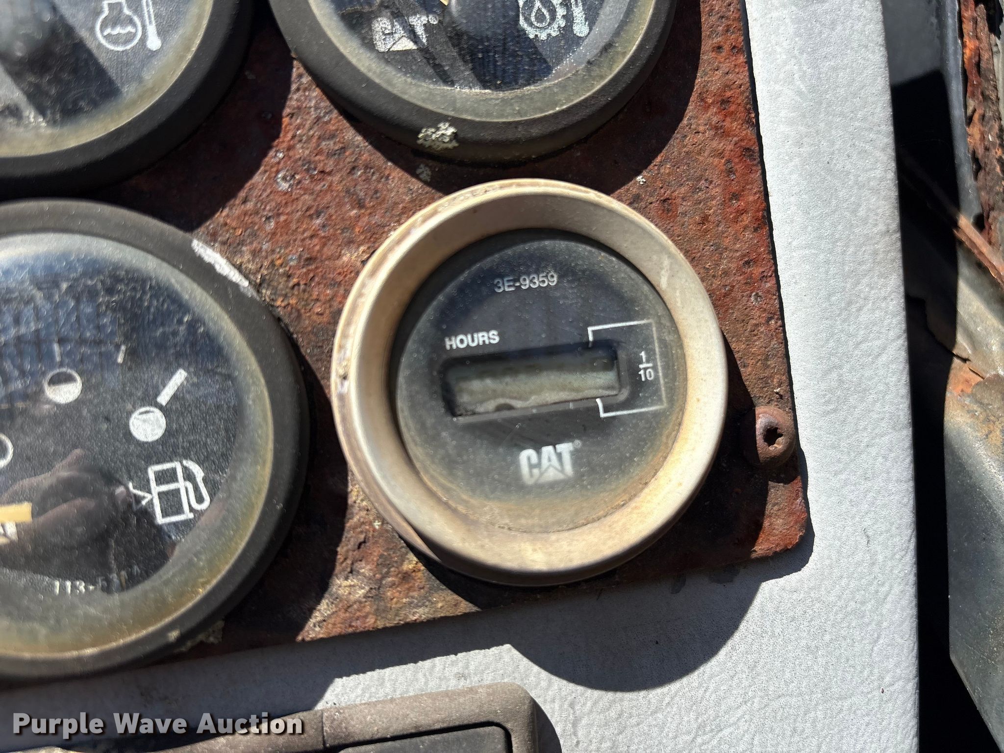 1998 Caterpillar TH83 telehandler. Hours: Unknown, Serial: 3RN01305. Engine Caterpillar, Cylinders: 4, Fuel type: Diesel, kW: 79.4. Transmission Powershift, Four wheel drive. Operators station Canopy, Steering: Four wheel. Features Boom stages: 3, Auxiliary hydraulics, Hydraulic leveling, Quick attach: Manual, Bucket size: 93", Forks. Tires Size: 13.00-24. Notes Jump start required during on-site data collection, Oil leak, Hour meter illumination issues, Carriage rotation hydraulic line damaged, Boom hydraulic system leak, boom will not extend , Transmission issues, non-operational reverse. Coastal Gunite Construction Company. Cambridge, MD 21613