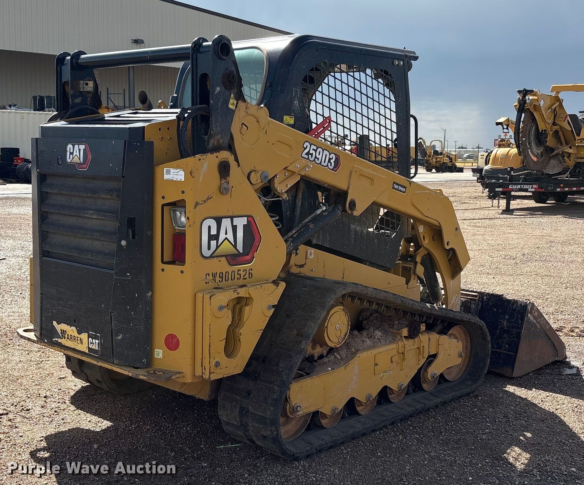 Purple Wave is selling a used Tracked Skid Steer Loader in Texas. This item is a 2019 Caterpillar 259D3 tracked skid steer loader with the following: Hours: 3,180 on meter, Serial: CAT0259DJCW900526
