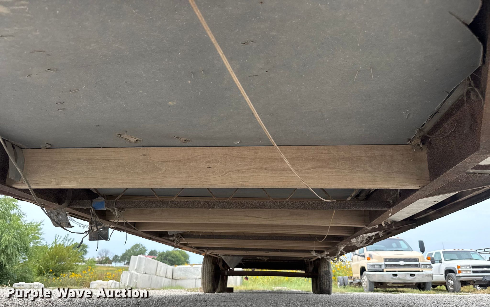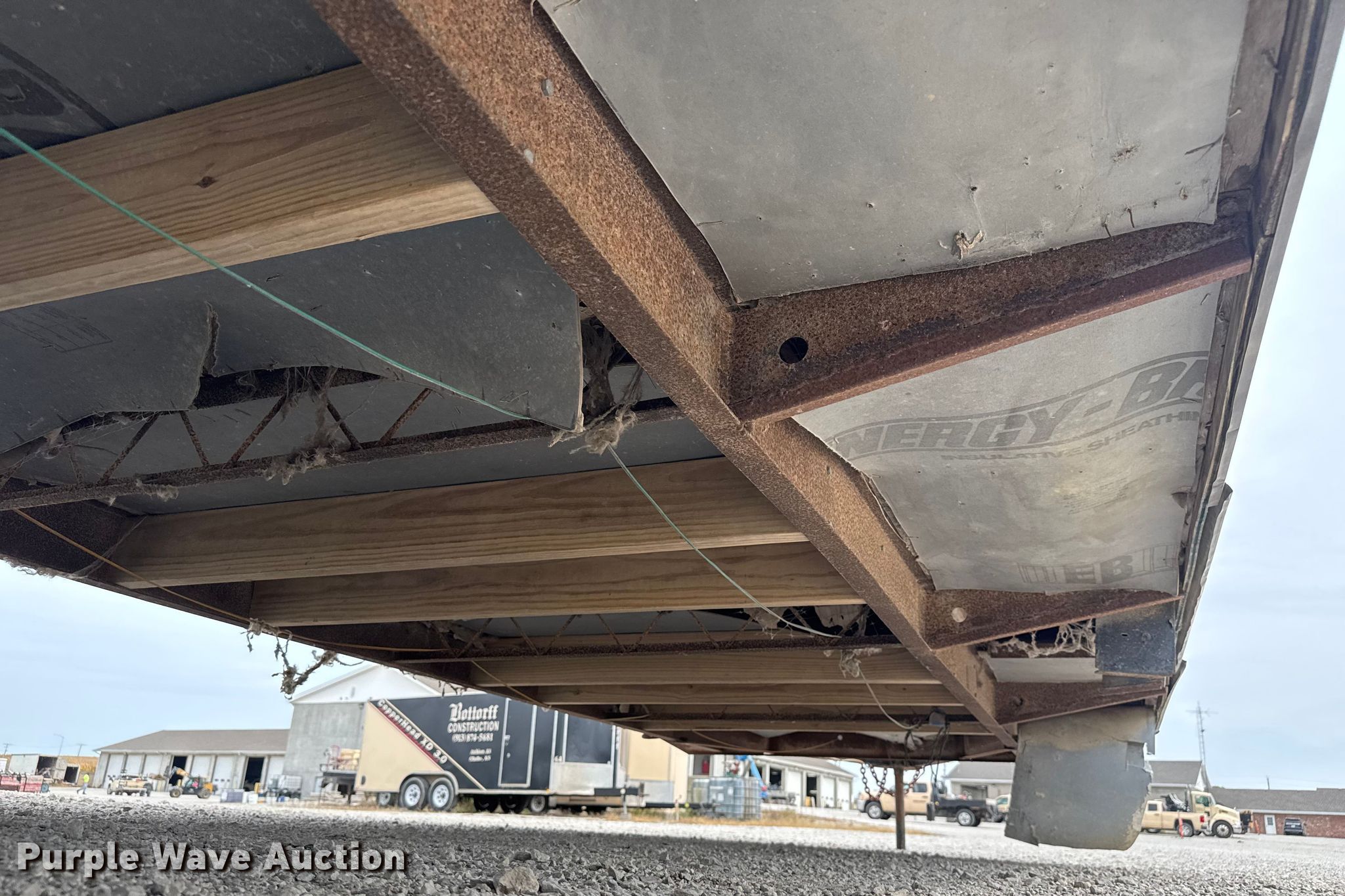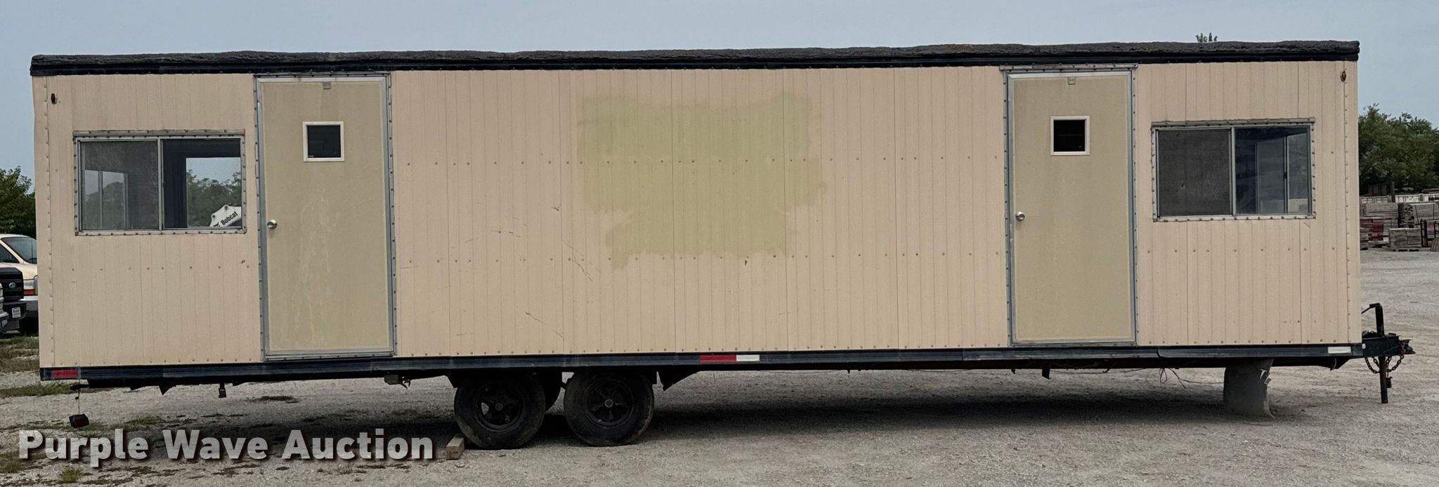 1983 Mark mobile office trailer. VIN: 16091. Features Overall dimensions 35' 6" L x 98" W, Body dimensions 32' 3" L x 98" W, Front room measurements 21' 7" L x 89" W x 84" H, Rear room measurements 9' 7" L x 89" W x 84" H, (2) AC units, Single landing gear, Brakes: Electric, Ball hitch: 2 5/16", Suspension: Spring, Axles: Dual. Tires Size: 8-14.5. Notes Front room wall damaged, hole. Kansas title. Title distribution may be delayed up to 14 days from verification of funds. Bottorff Construction. Atchison, KS 66002