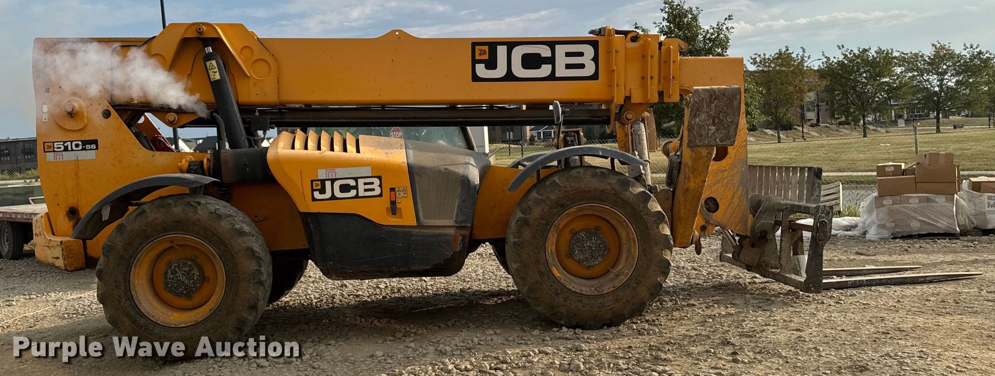 Purple Wave is selling a used Telehandler in Iowa. This item is a 2019 JCB 510-56 telehandler with the following: Hours: 5,880 on meter, Serial: JCB5CG7GVK2794234