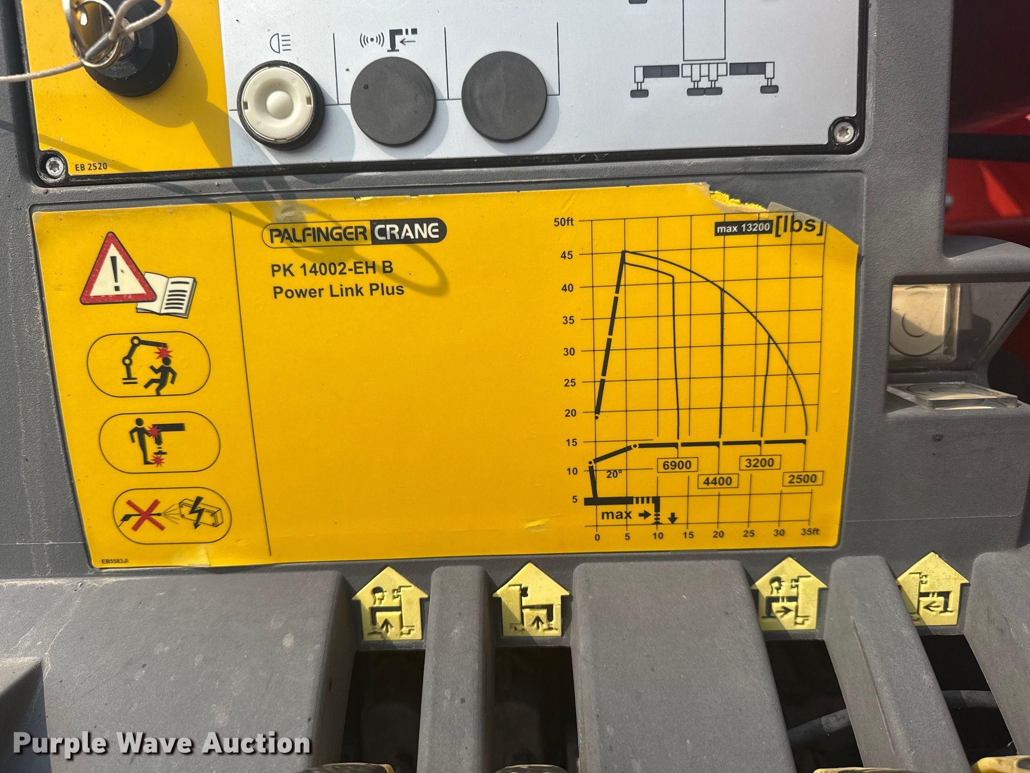 2012 Freightliner Business Class M2 crane truck. Miles: Unknown, VIN: 1FVHC7DV9CDBD4398. Engine Detroit Diesel DD13, Displacement: 12.8L, Cylinders: 6, Fuel type: Diesel, Engine brake. Transmission Eaton Filler 8LL, Manual, Speed: 8. Chassis Hi-rail system, Axles: Tandem, Differential lock: Full, Suspension: Air, Brakes: Hydraulic, PTO, GVWR: 58,000 lbs FAWR: 18,000 lbs, IAWR: 20,000 lbs, RAWR: 20,000 lbs. Interior AC, Heat, Heated mirrors, Cruise control, Brake controller. Features Bed Flatbed, Length: 15', Width: 96", Crane 2011 Palfinger PK14002-EH Serial: 100128704, Boom Telescopic, Knuckle, Maximum boom length: 45' Sections: 3, Maximum lift capacity: 6,900 lbs, Boom controls Ground, Remote control, Lift chart. Tires Front: 385/65R22.5, Rear: 11R22.5. Notes Dead battery, Non-operational unit. Oklahoma title. Mileage has not been verified. Exempt will be written in the odometer disclosure on the title. Seller is an Oklahoma licensed motor vehicle dealer. Buyers may be required to provide identification to the licensed dealer to comply with state laws. Title will be assigned and distributed by the dealer. Please contact the seller for distribution questions. Title distribution may be delayed up to 30 days from verification of funds. Collinsville, OK 74021