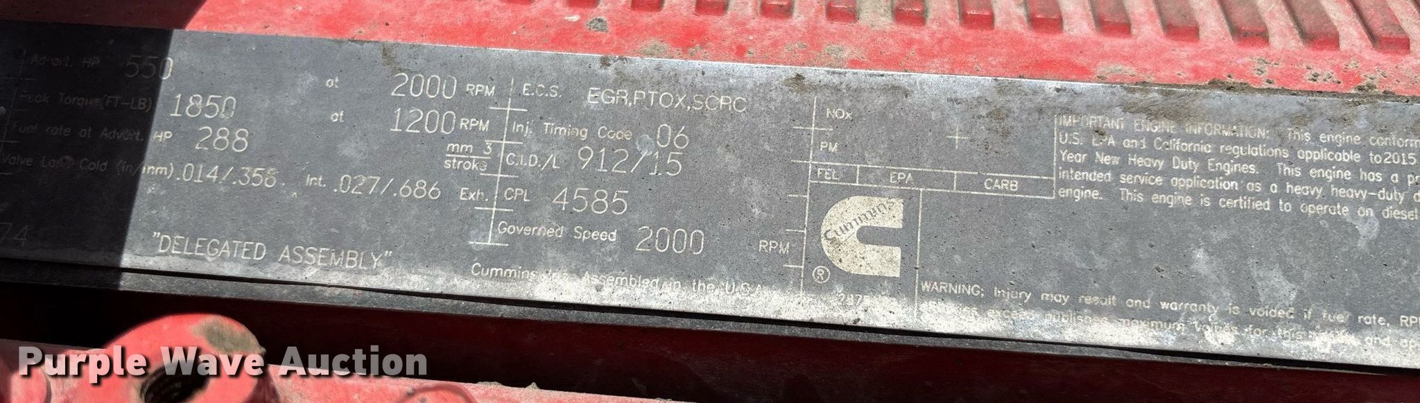 2016 Peterbilt 367 dump truck. Miles: 475,670 on odometer, Hours: 15,542 on meter, VIN: 2XPTP4EX8GM320765, Unit #: 52749605. Engine Cummins ISX15, Displacement: 15.0L, Cylinders: 6, Fuel type: Diesel, Engine brake. Transmission Eaton Fuller, Manual, Speed: 18. Chassis Double frame, Axles: Triple, Pusher axle, Differential lock: Full, Suspension: Air, Brakes: Air, PTO. Interior AC, Heat, Heated mirrors, Power windows, Cruise control. Features Dump bed 16' x 101" W, Side height: 62", Bed type: Steel, Roll tarp, End gate: Air operated. Tires Front: 425/65R22.5, Rear: 11R24.5, Lift axle: 295/75R22.5. Notes Altered VIN. Insurance recovery, stored at a secured facility. Please review REQUIRED REMOVAL INSTRUCTIONS. Titles will be distributed after confirmation of payment and removal. Florida salvage theft title. Title distribution may be delayed up to 30 days from verification of funds. Insurance Recovery. Mulberry, FL 33860