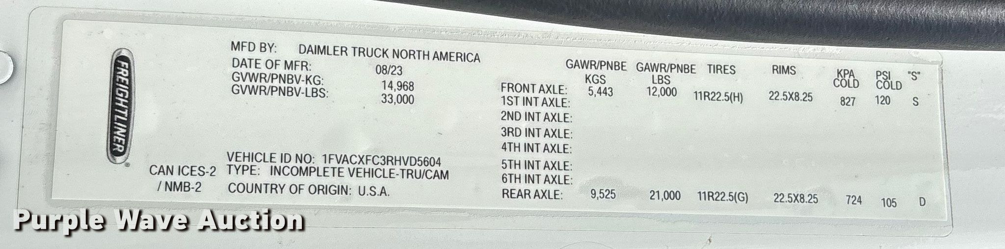 Purple Wave is selling a used Street Sweeper Truck in North Carolina. This item is a 2024 Freightliner Business Class M2 street sweeper truck with the following: Miles: 28,196 on odometer, Hours: 1,446 on meter, VIN: 1FVACXFC3RHVD5604, Unit #: 70212395