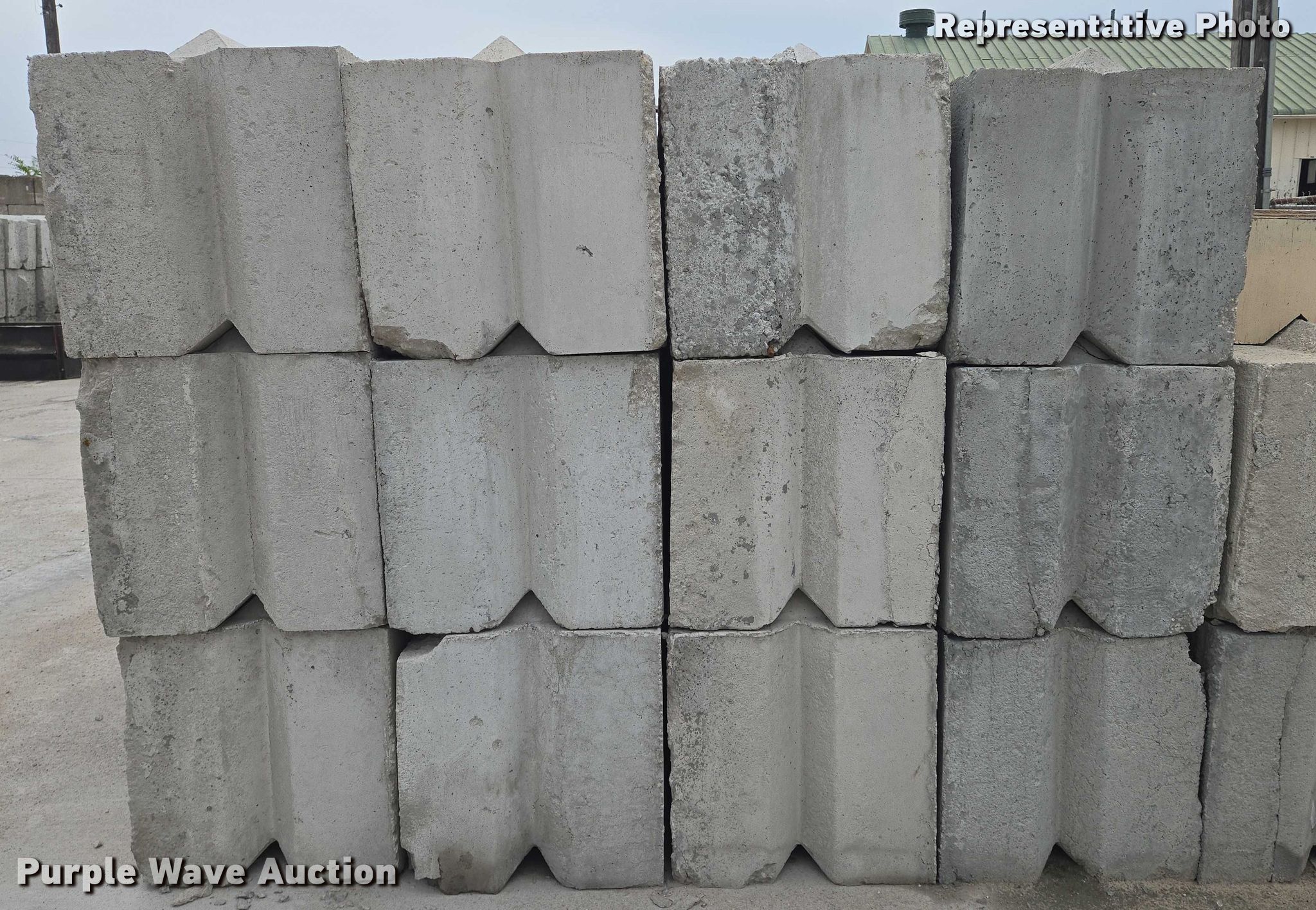 Purple Wave is selling a used Building Materials in Kansas. This item is a (24) concrete edge bunker blocks with the following: 2' x 2' x 4', Approx. 2,100 lbs per block, Finish and condition may vary