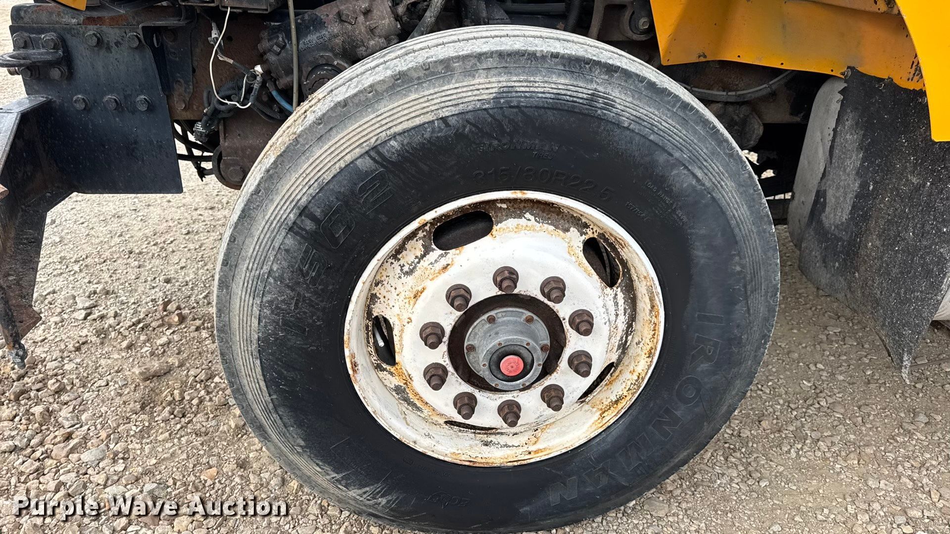 2006 International 7400 dump truck. Miles: 195,853 on odometer, Hours: 11,677 on meter, VIN: 1HTWHAZT26J324725, Unit #: 7701. Engine International DT466, Displacement: 9.3L, Cylinders: 6, Fuel type: Diesel. Transmission Allison, Automatic. Chassis Double frame, Axles: Tandem, Suspension: Spring over walking beam, Brakes: Air, PTO, GVWR: 56,000 lbs FAWR: 16,000 lbs, IAWR: 20,000 lbs, RAWR: 20,000 lbs. Interior AC, Heat, Heated mirrors, Power windows, Cruise control. Features Bed Dump bed, Length: 13', Width: 96", Side height: 36", Bed type: Steel, Roll tarp, Ram: Single, End gate: Air operated. Tires Front: 315/80R22.5, Rear: 11R22.5. Notes Dash warning indicator: ABS, Windshield chipped or cracked, Bed rust damage. Missouri title. Title distribution may be delayed up to 14 days from verification of funds. Missouri Department of Transportation. New Bloomfield, MO 65080